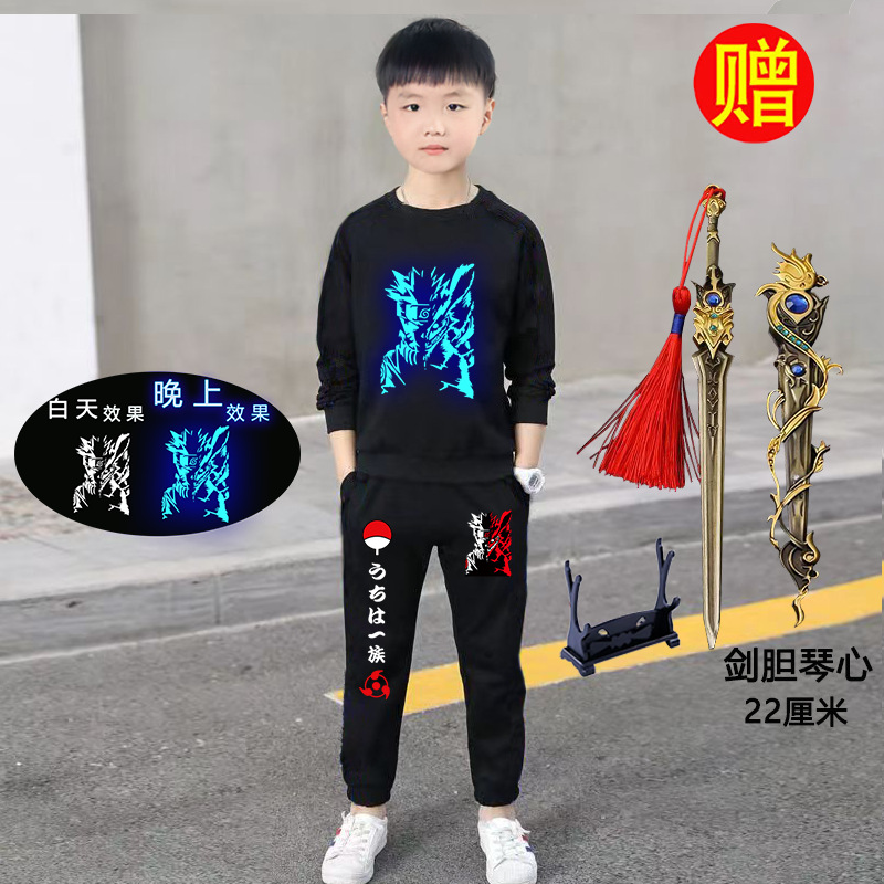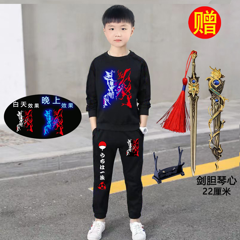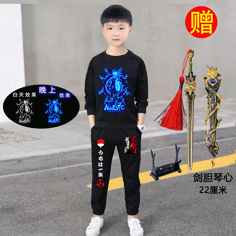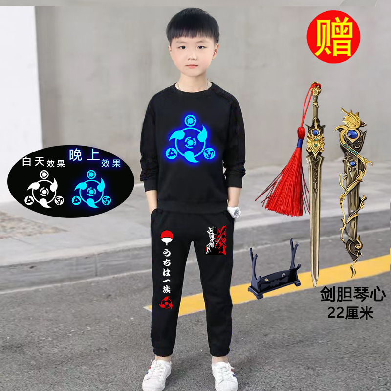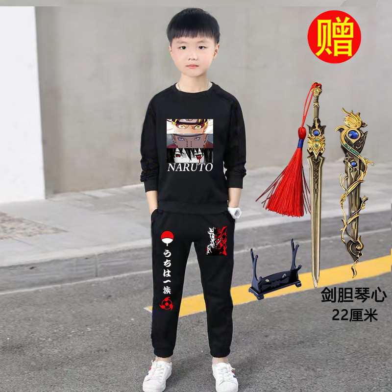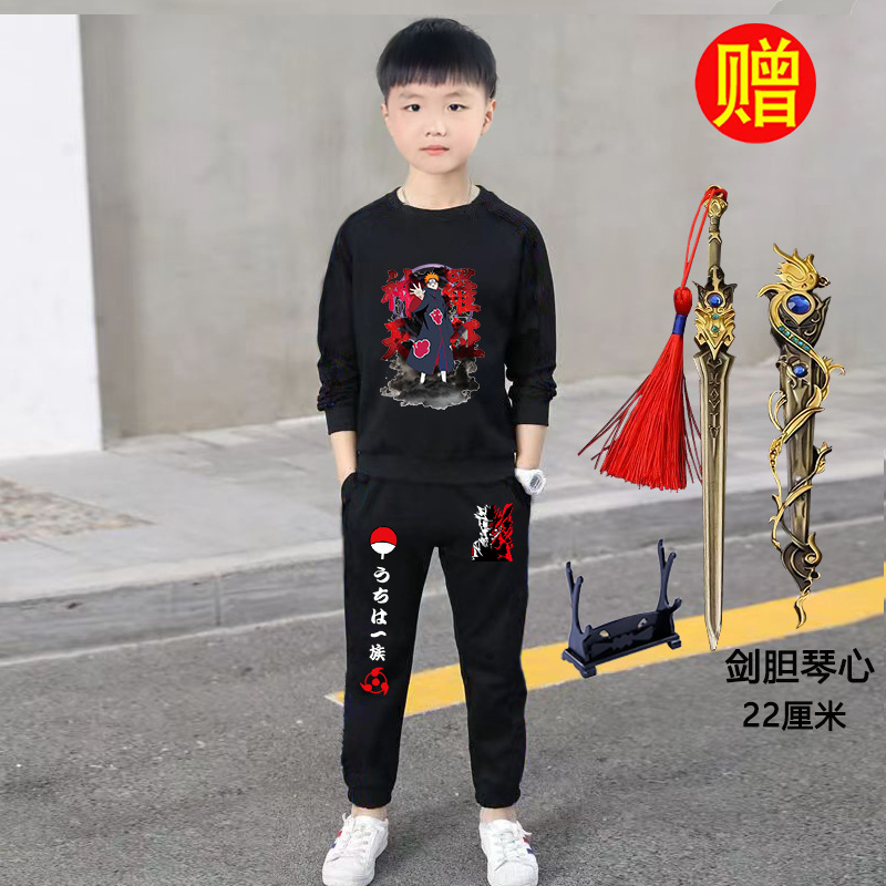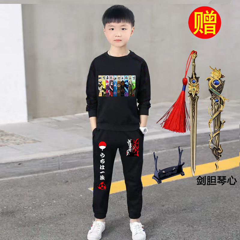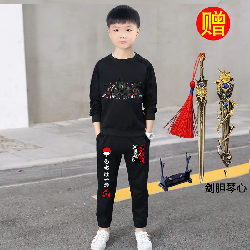 나루토 합동 크루 넥 스웨트 셔츠 소년 기모 우치하 사스케 스컹크 나루토 학생 세트 애니메이션 옷