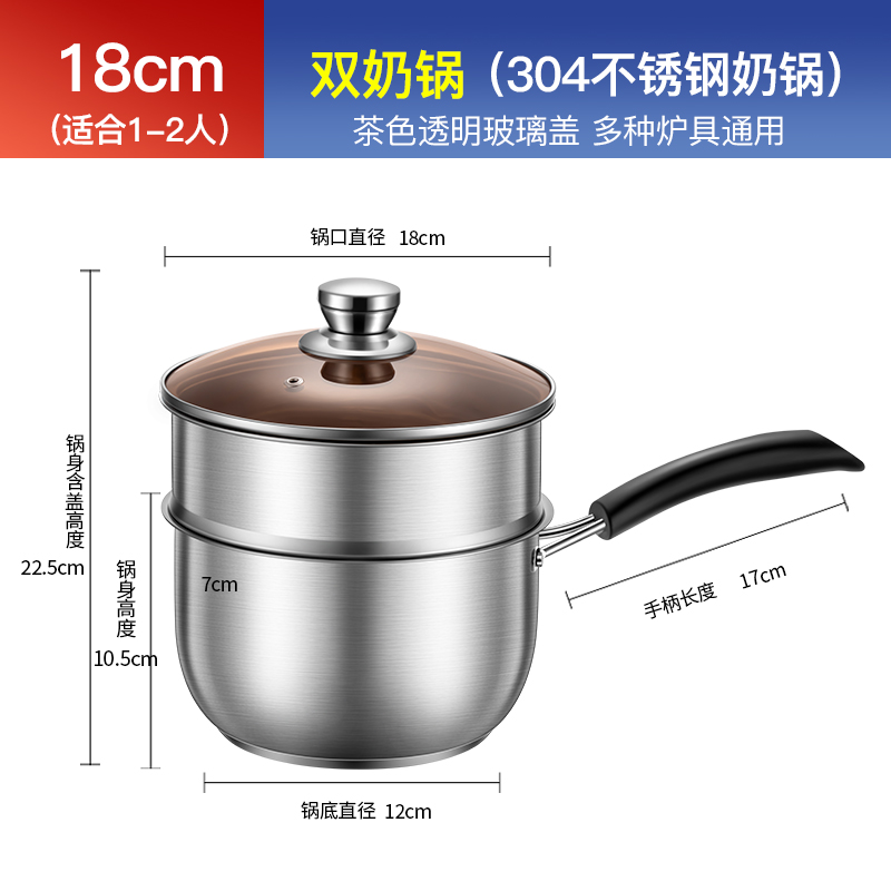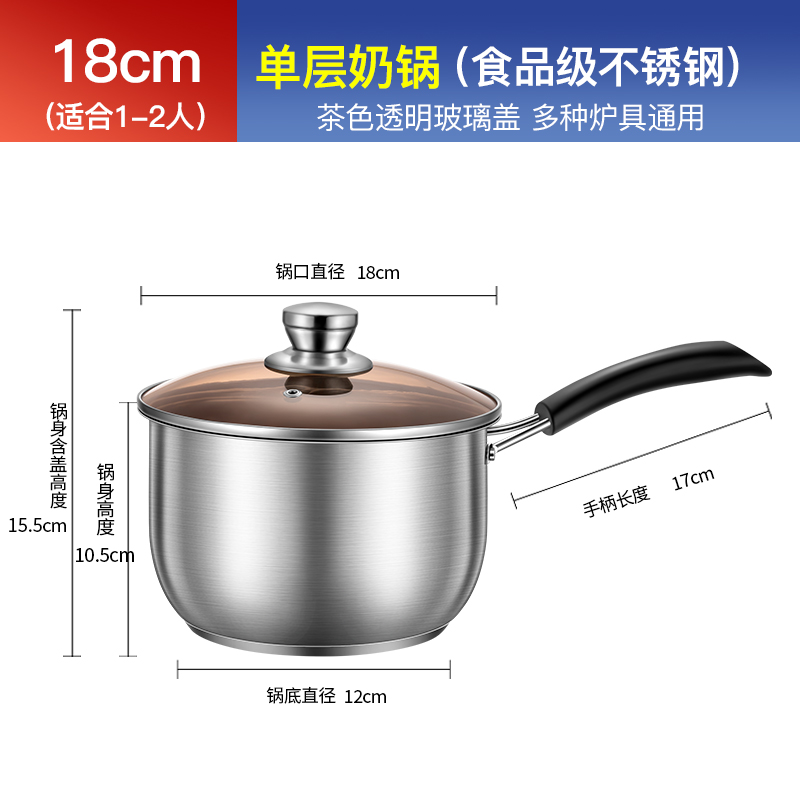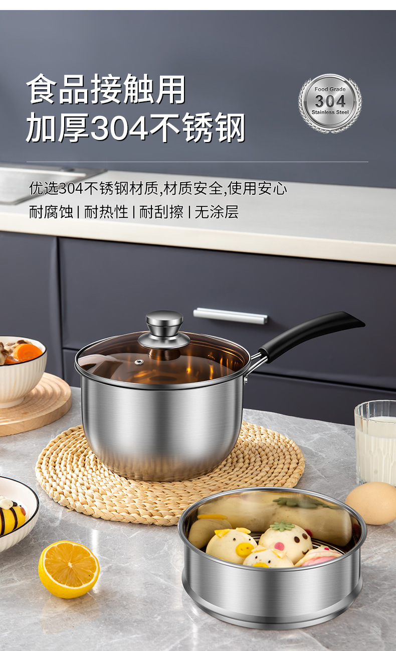 304 스테인레스 스틸 우유 냄비 기선 수프 냄비 두꺼운 국수 작은 우유 냄비 미니 작은 냄비 국수 유아식 보충 냄비