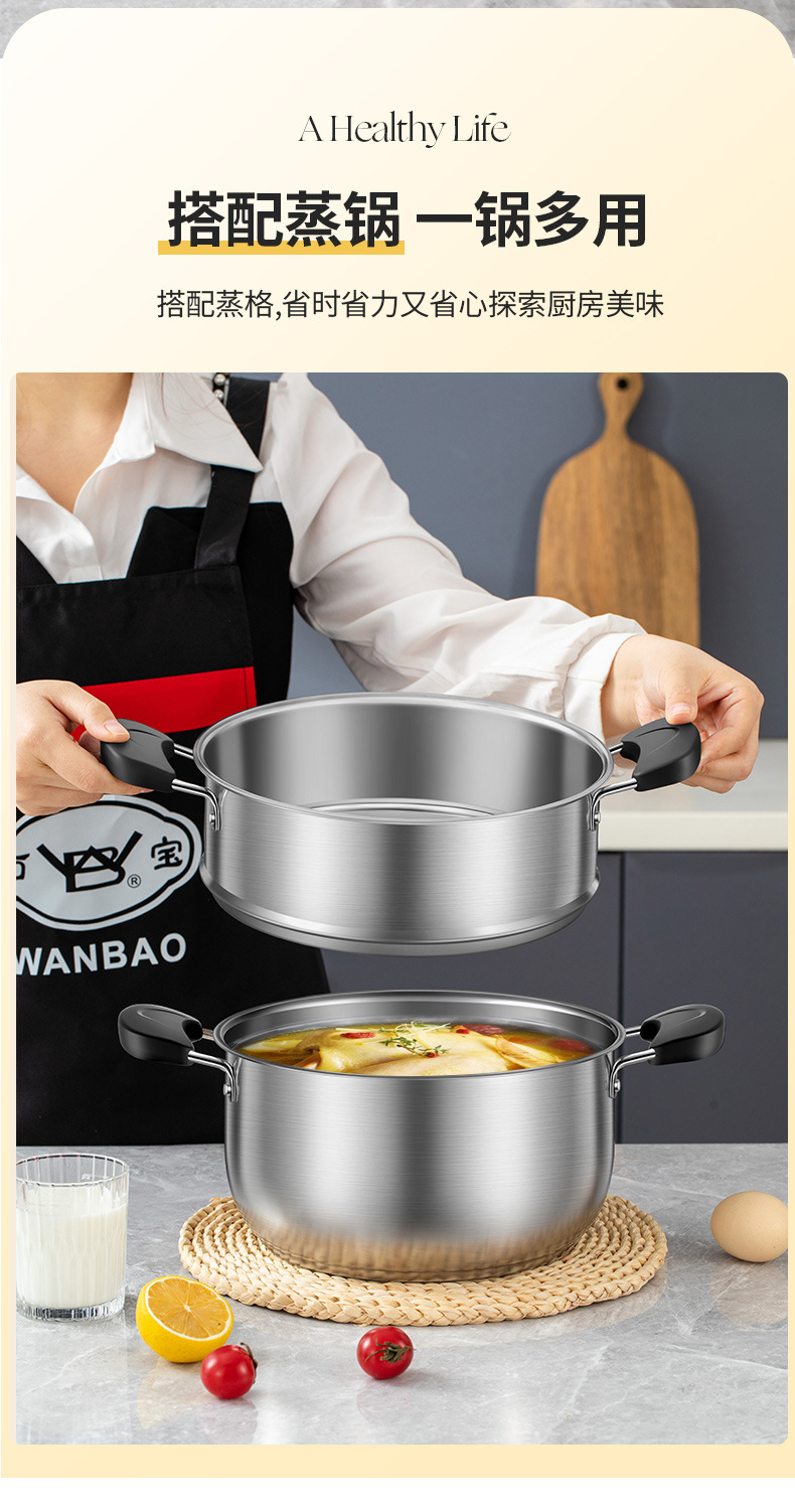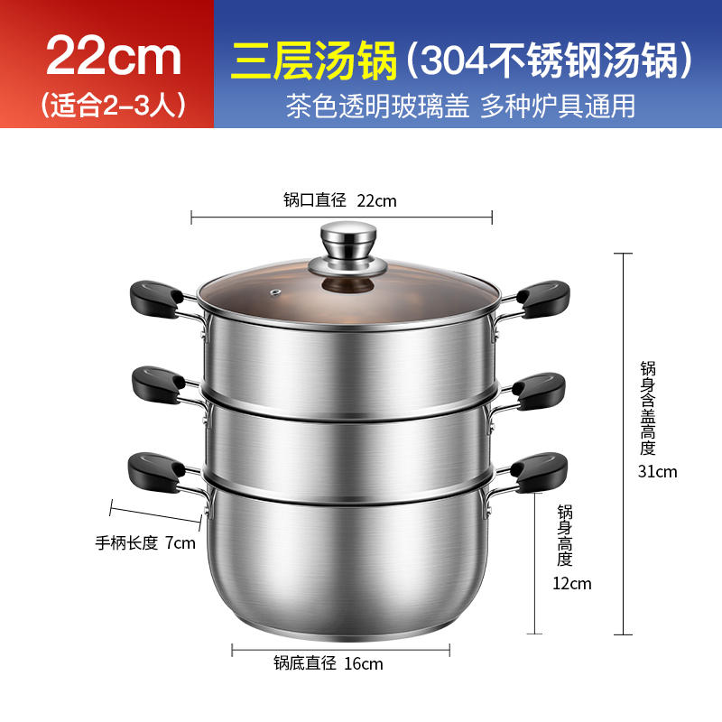 • 22cm 3단 수프 냄비(304두꺼운 이중 바닥)