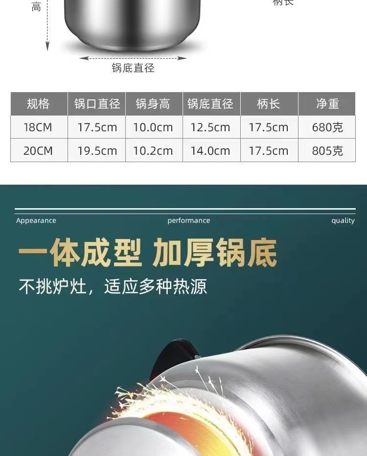 • 18CM 우유 포트 (304 두꺼운 이중 바닥)