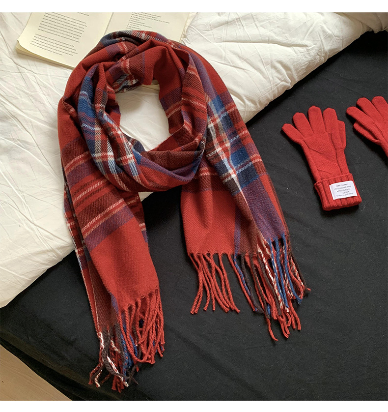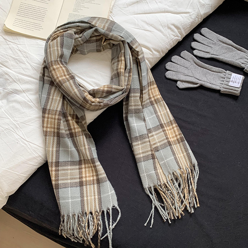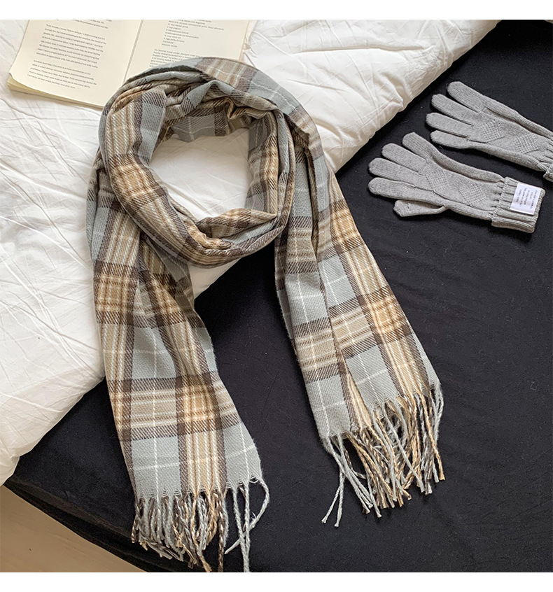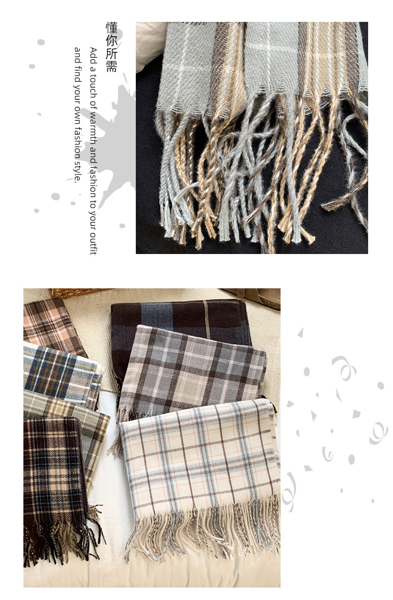 가을과 겨울 스카프 여성의 2024 새로운 올 매치 학생 틈새 캐시미어 체크 스카프 커플 스카프 목도리 도매스토어 가기