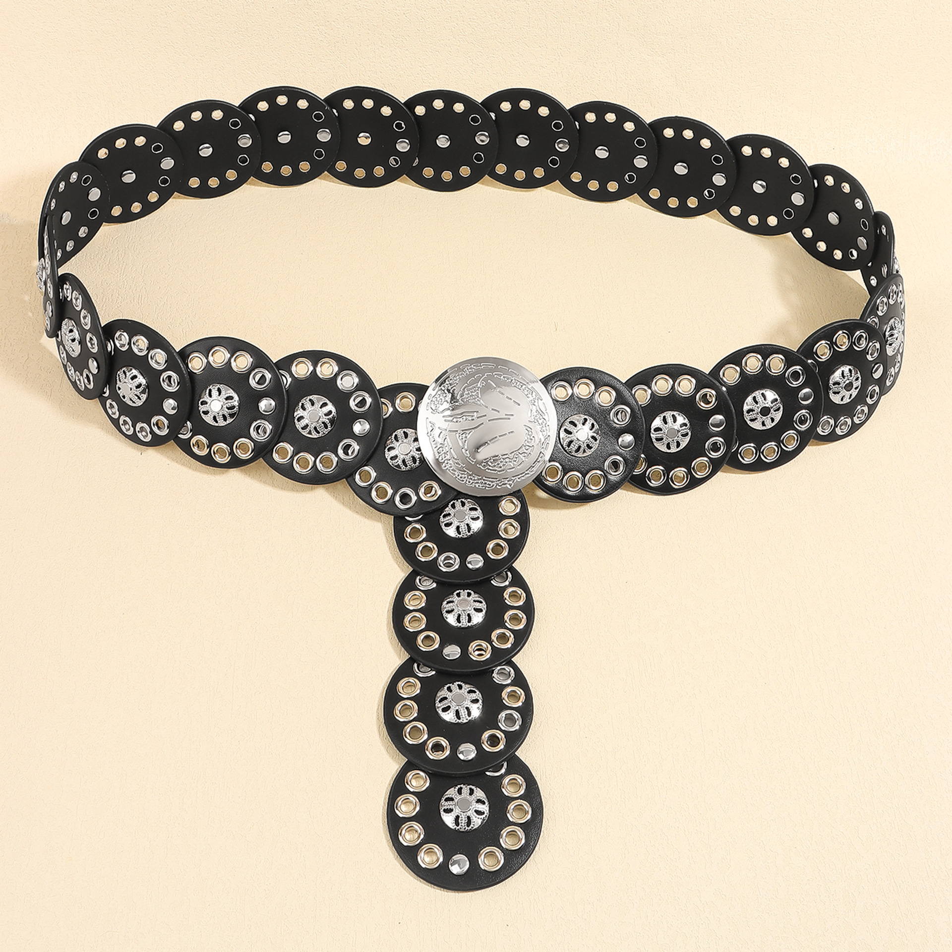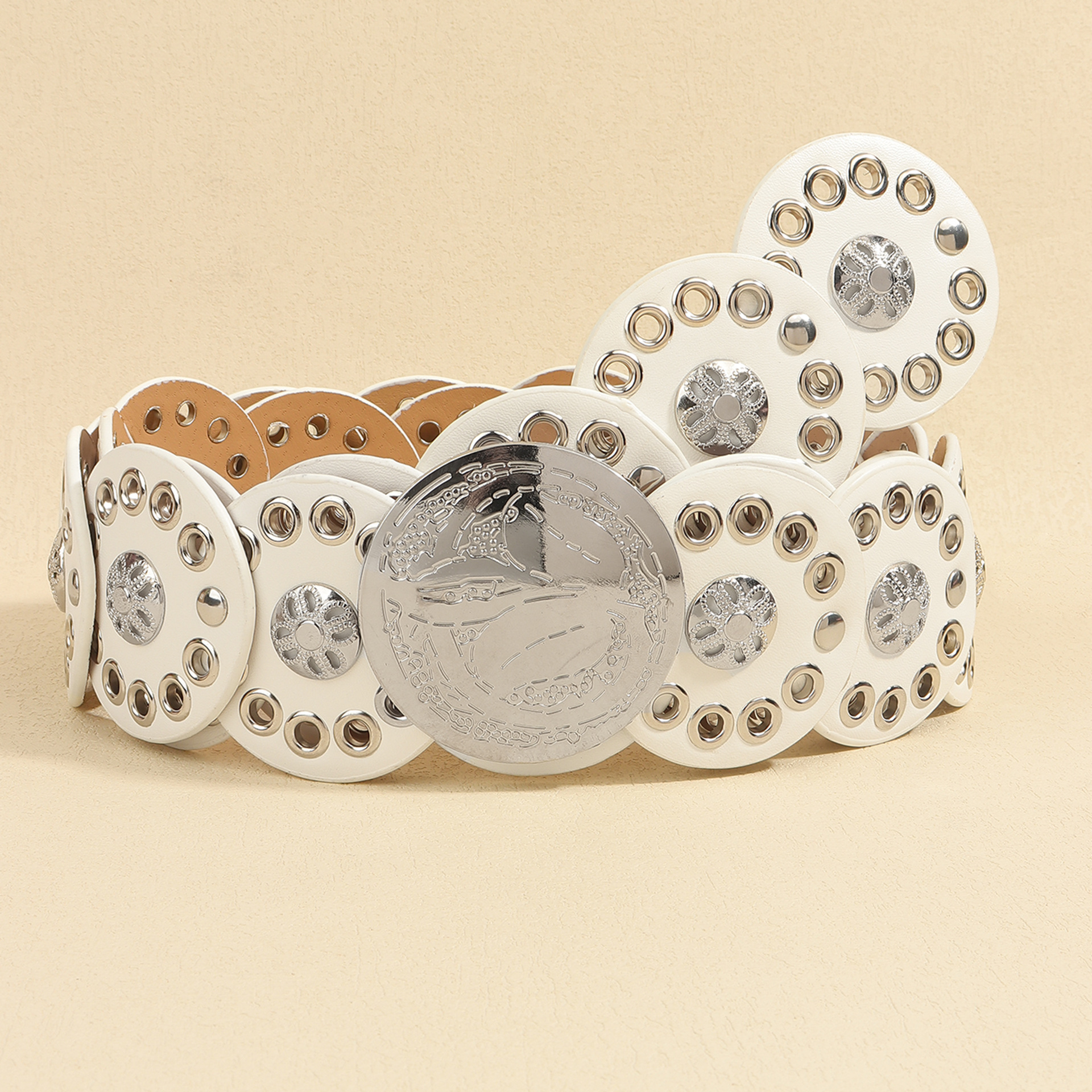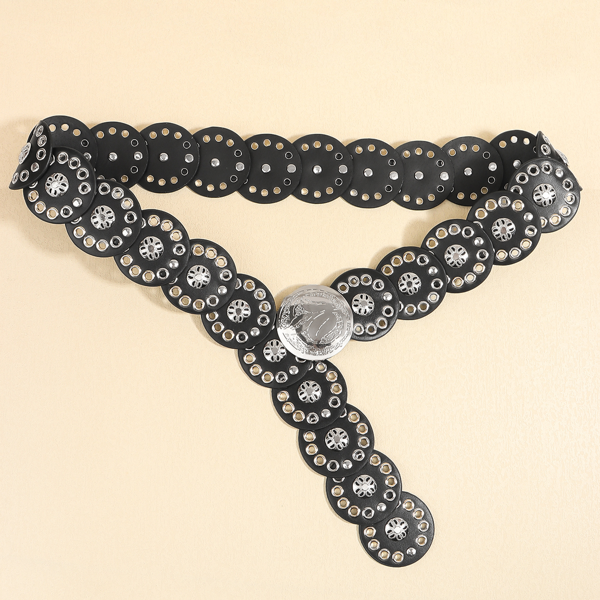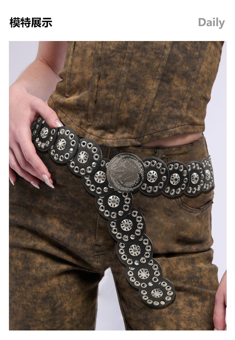 유럽과 미국의 국경 간 소형 라운드 레트로 벨트 리벳 에어 아이 펑크 서양식 벨트 여성 콜로 로케이션 데님 스커트스토어 가기
