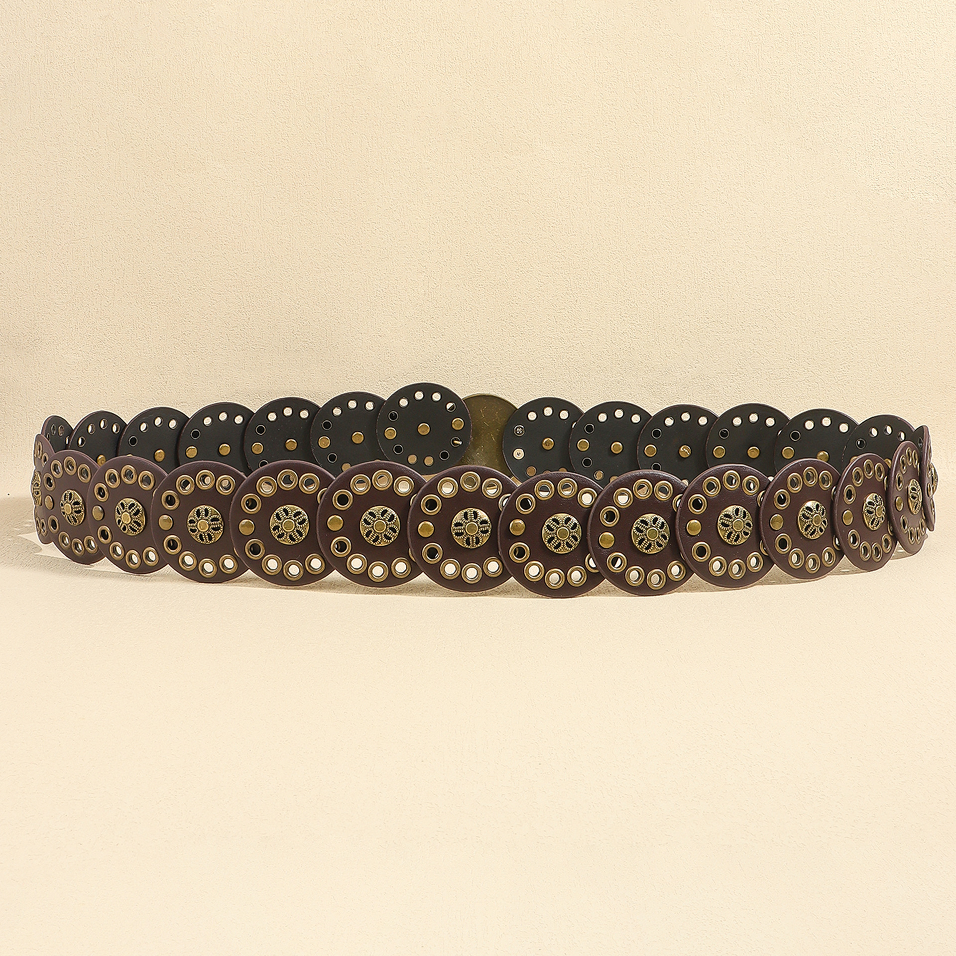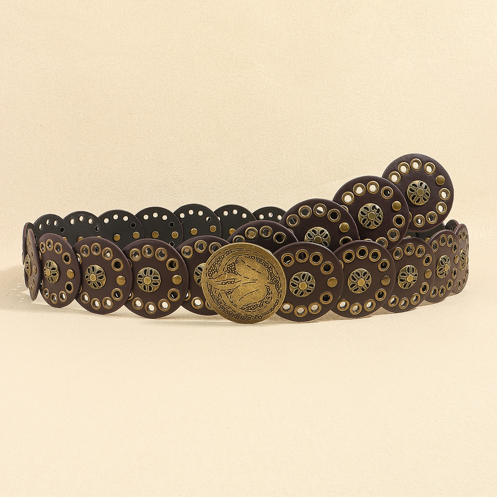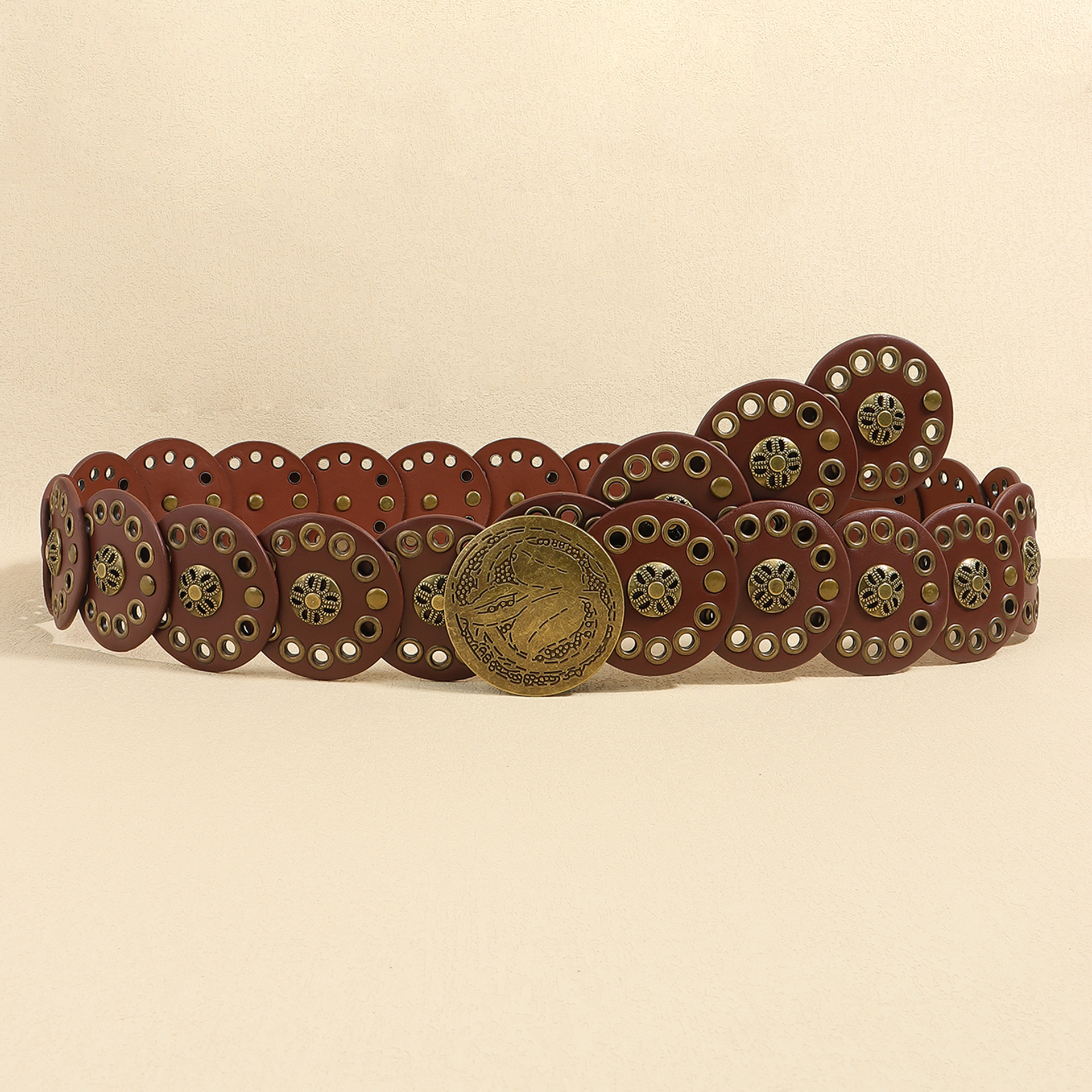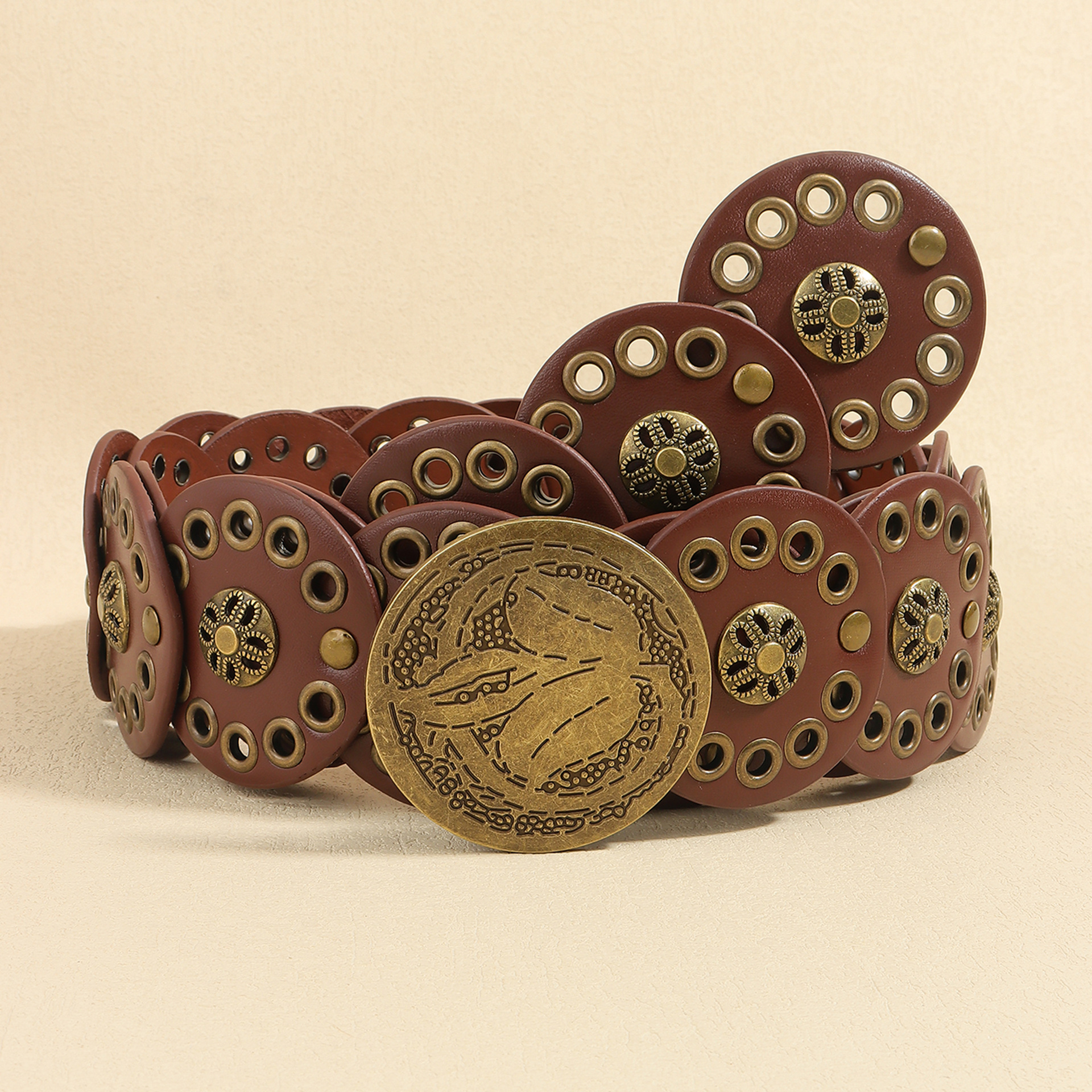 유럽과 미국의 국경 간 소형 라운드 레트로 벨트 리벳 에어 아이 펑크 서양식 벨트 여성 콜로 로케이션 데님 스커트스토어 가기