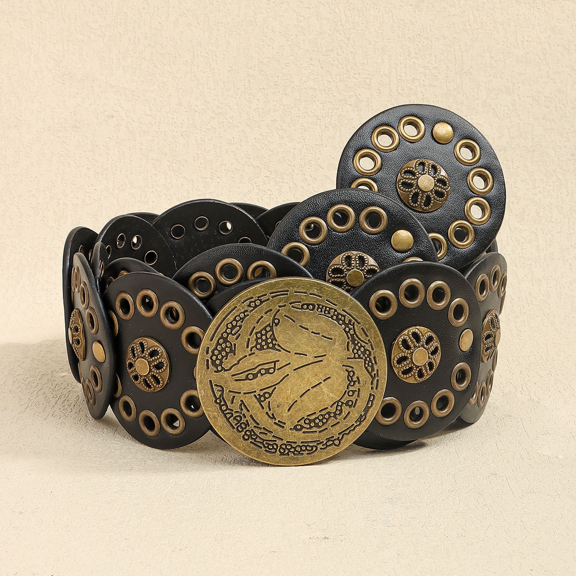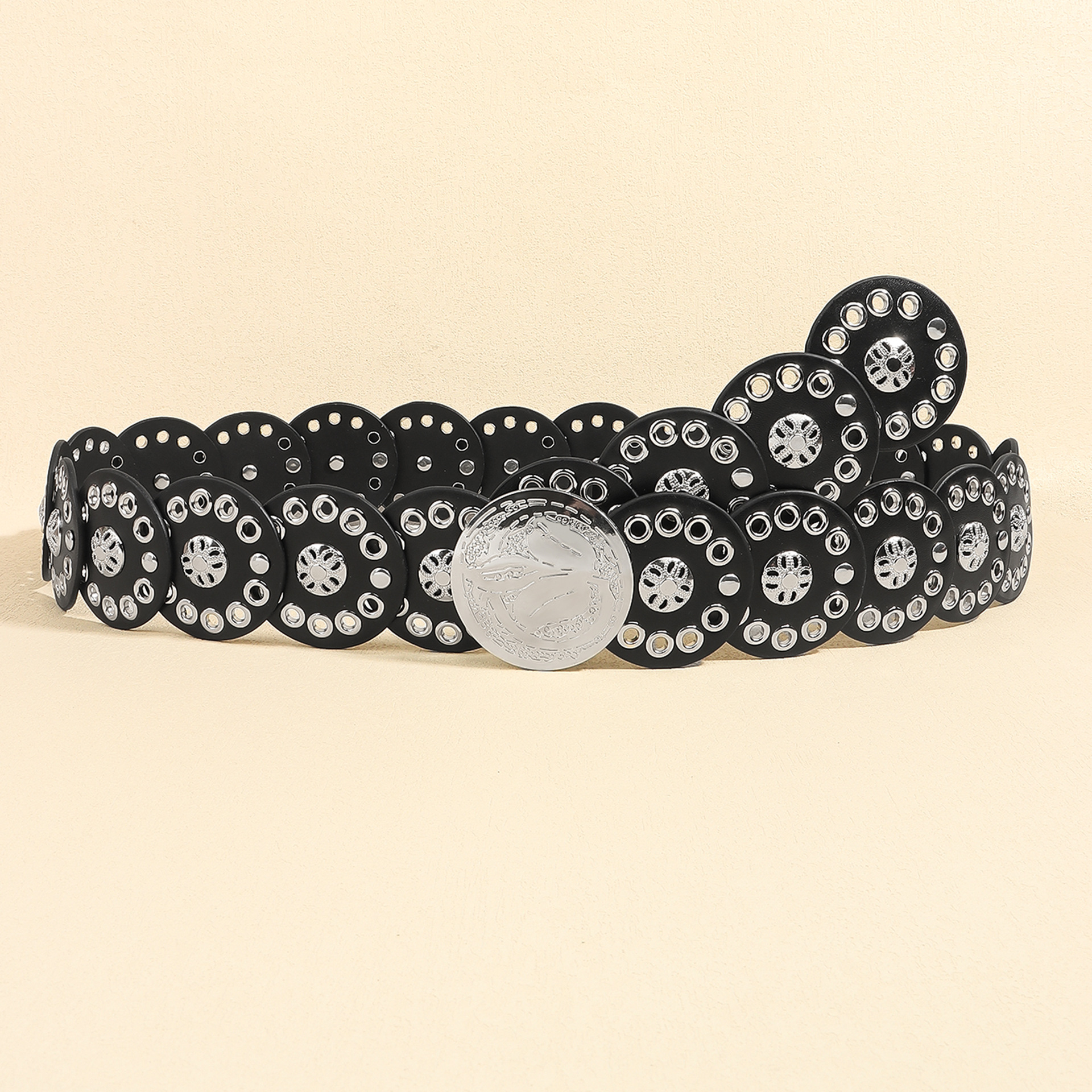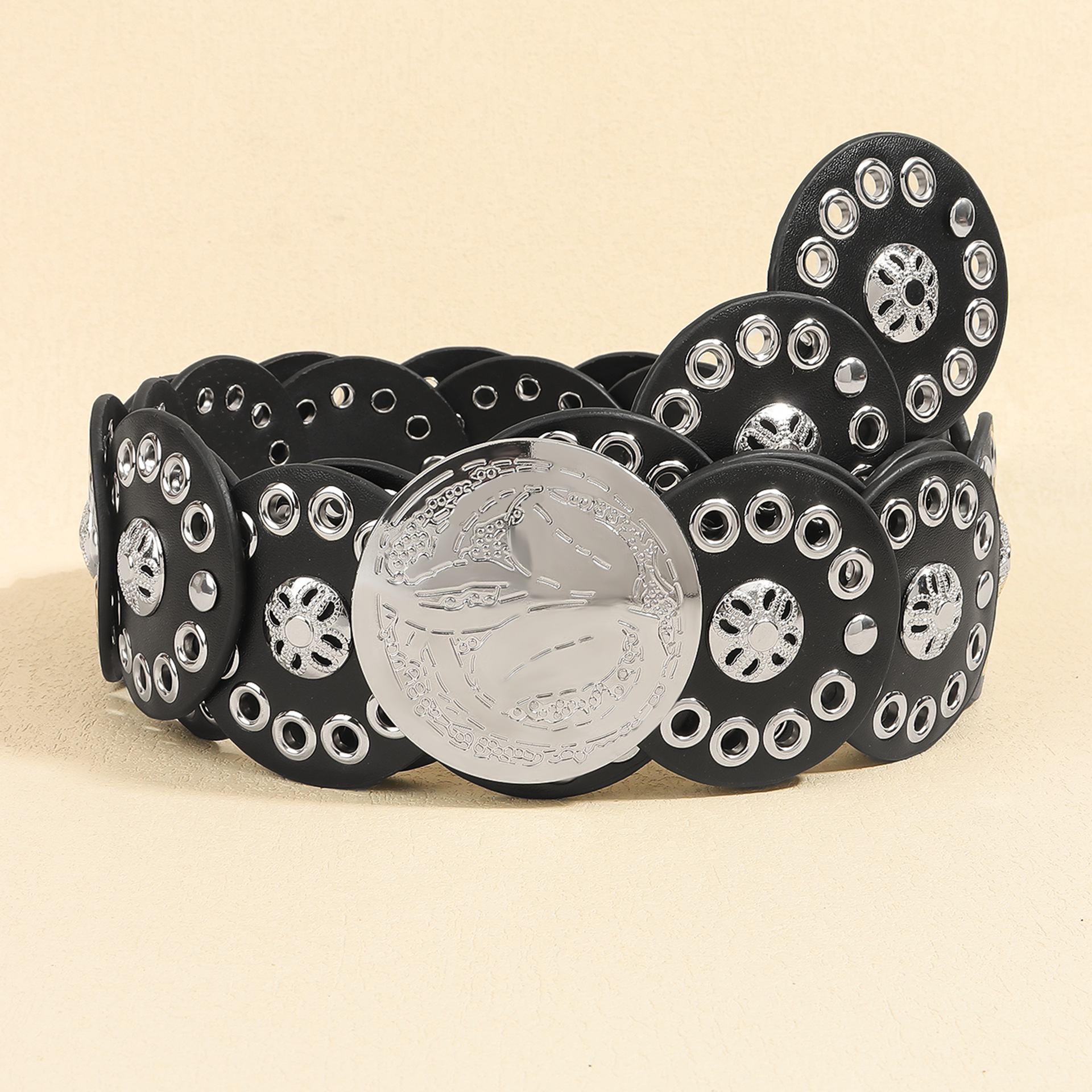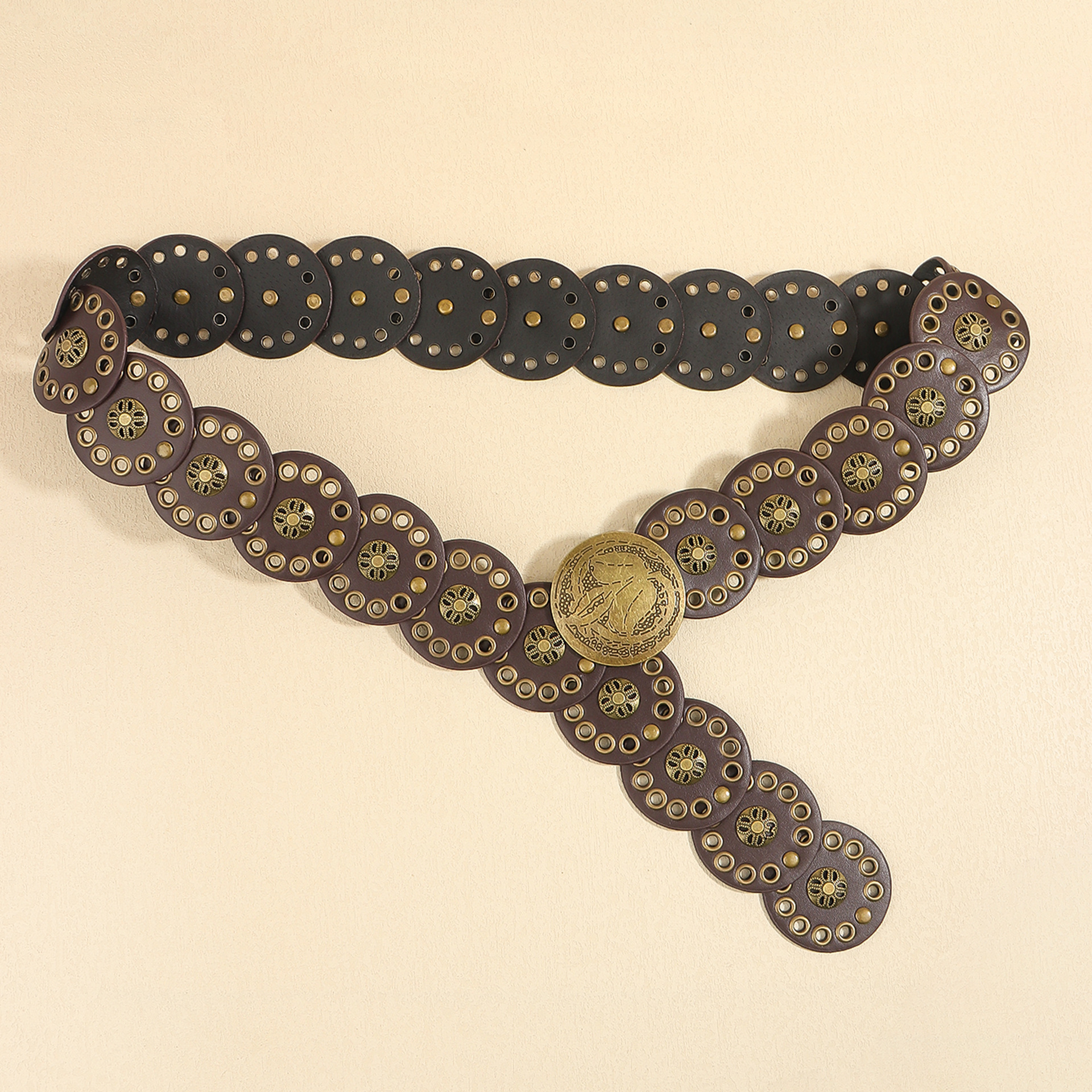 유럽과 미국의 국경 간 소형 라운드 레트로 벨트 리벳 에어 아이 펑크 서양식 벨트 여성 콜로 로케이션 데님 스커트스토어 가기