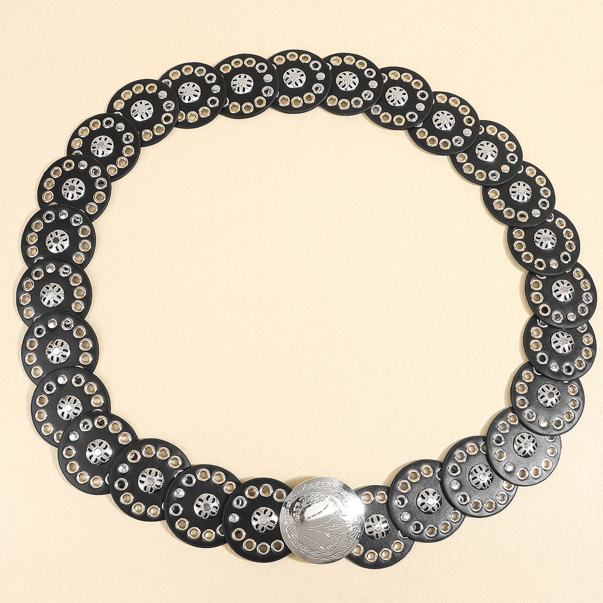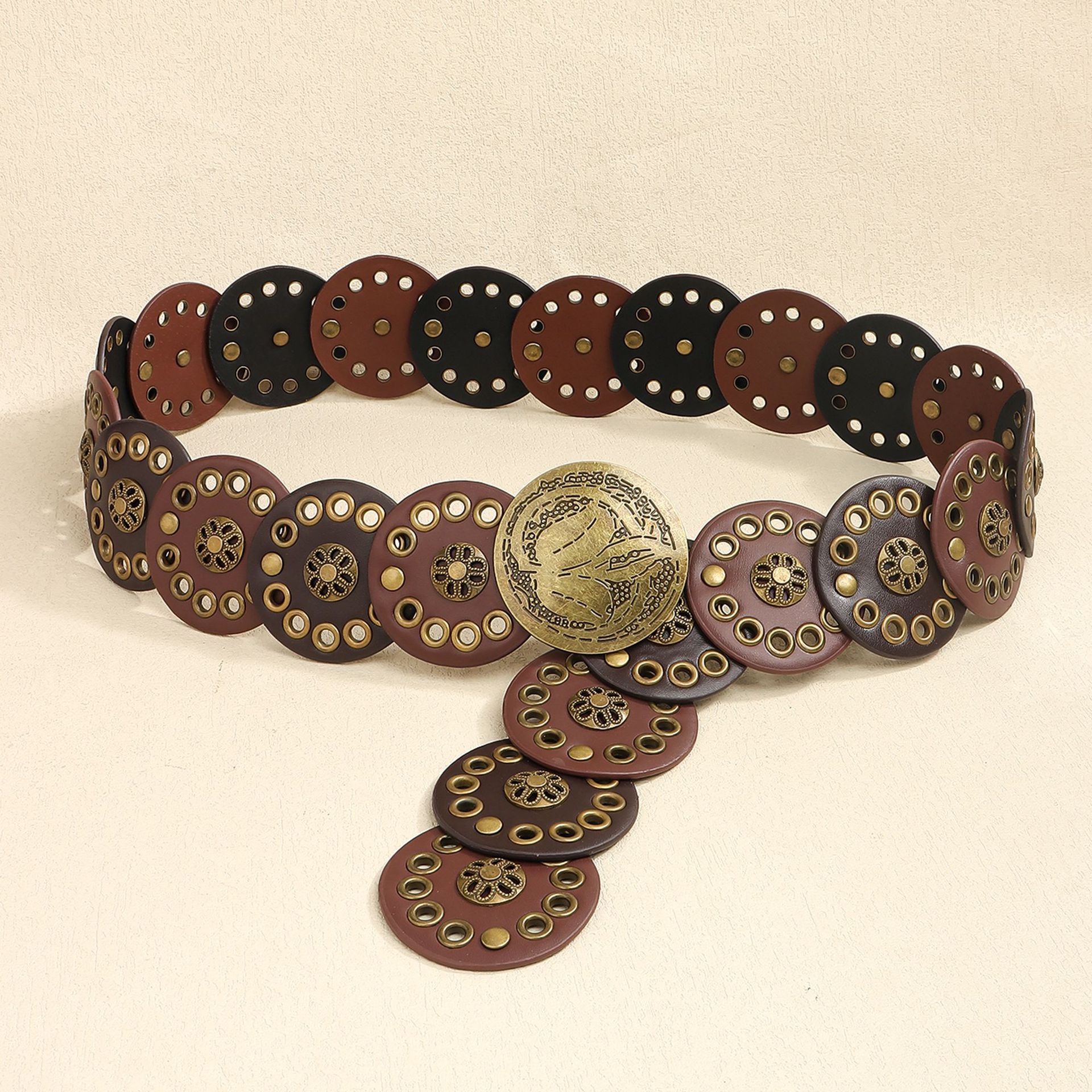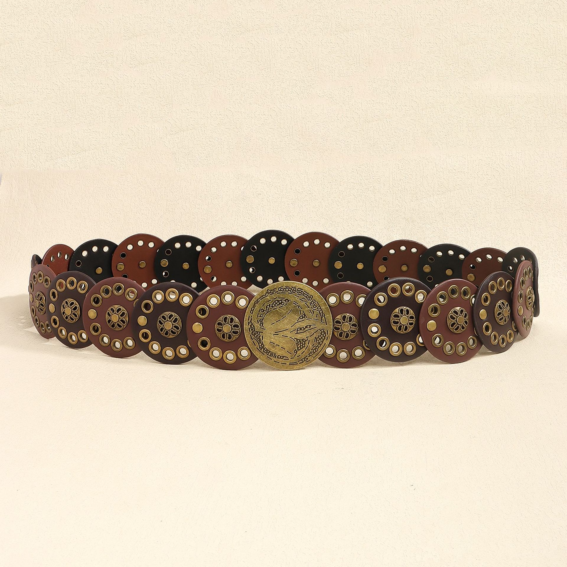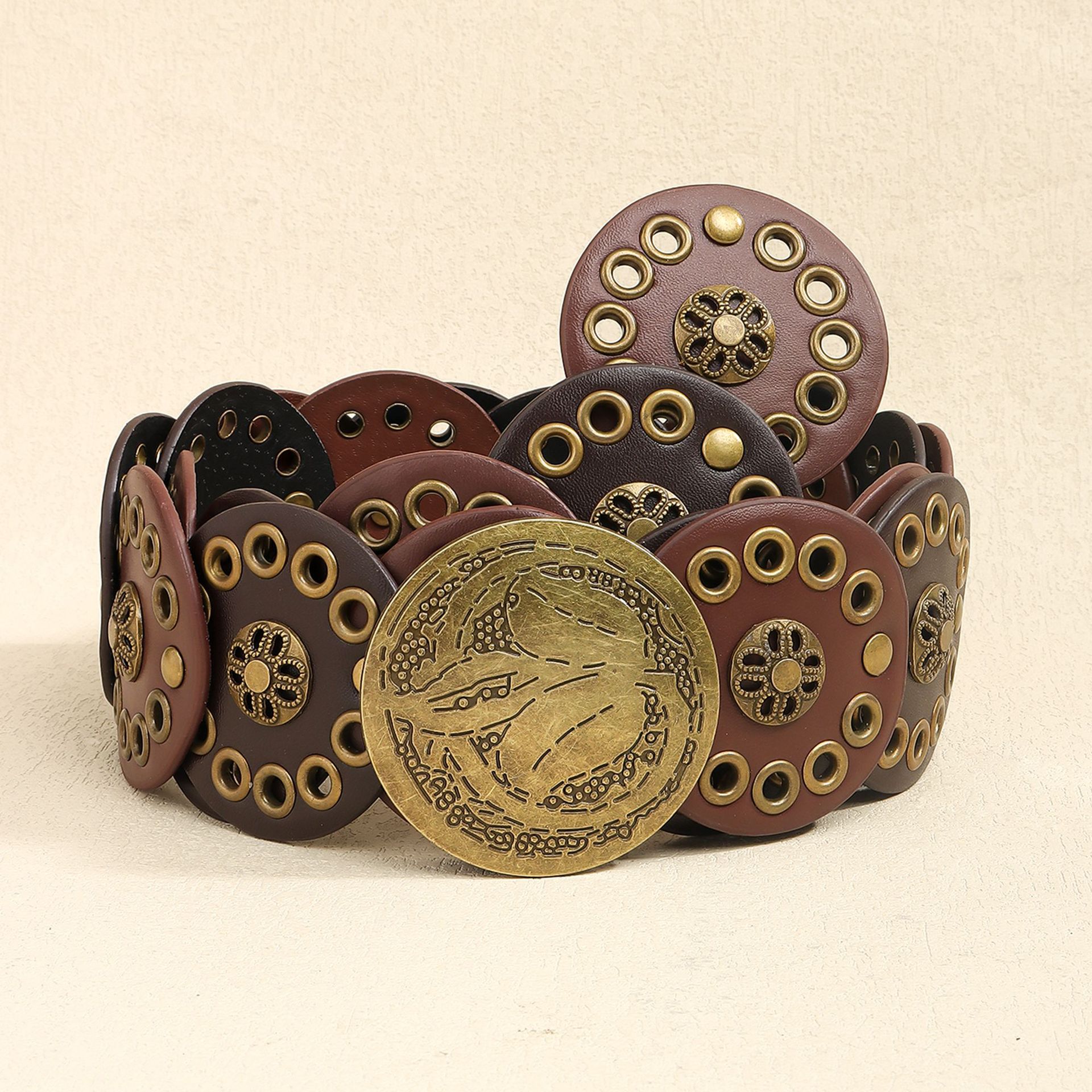 유럽과 미국의 국경 간 소형 라운드 레트로 벨트 리벳 에어 아이 펑크 서양식 벨트 여성 콜로 로케이션 데님 스커트스토어 가기