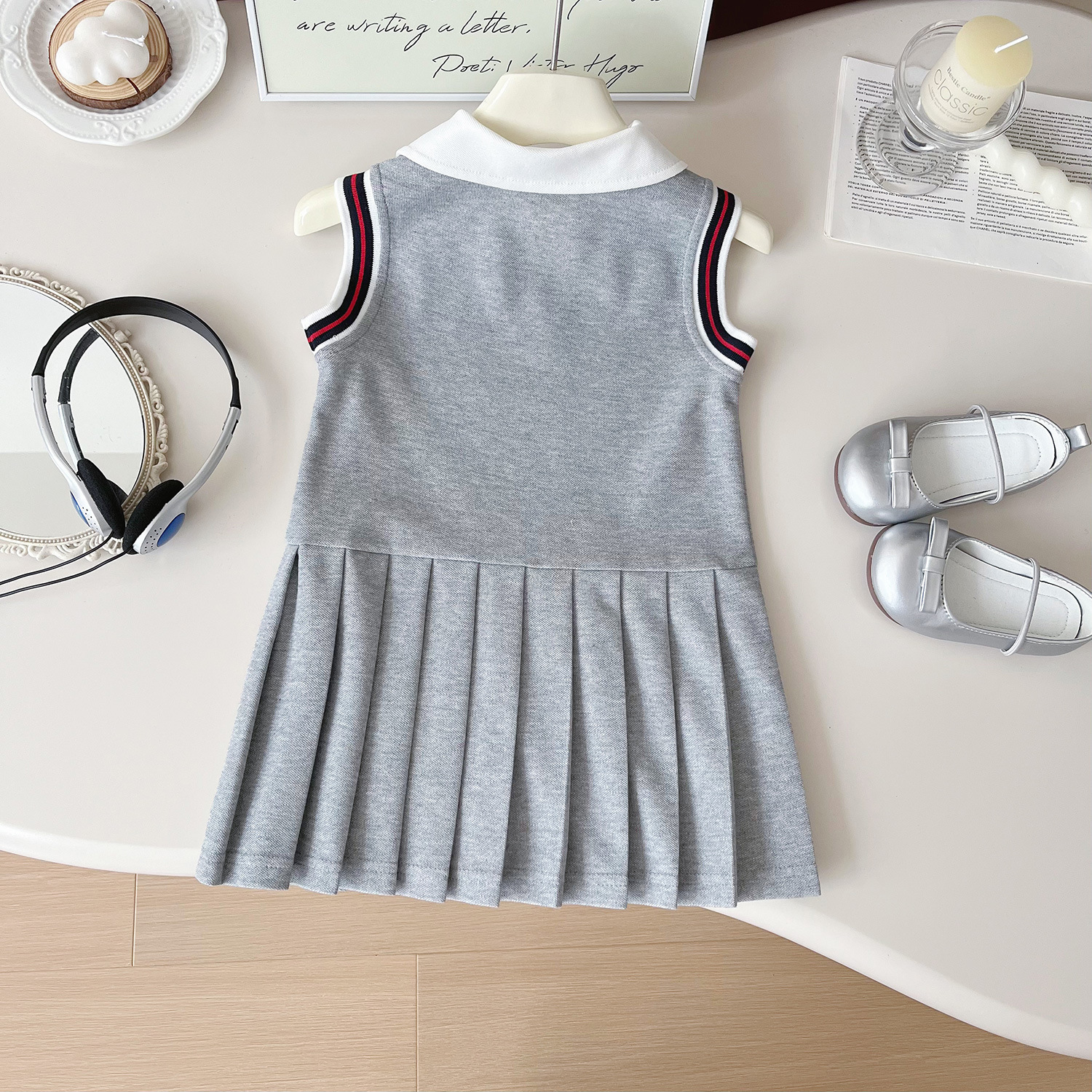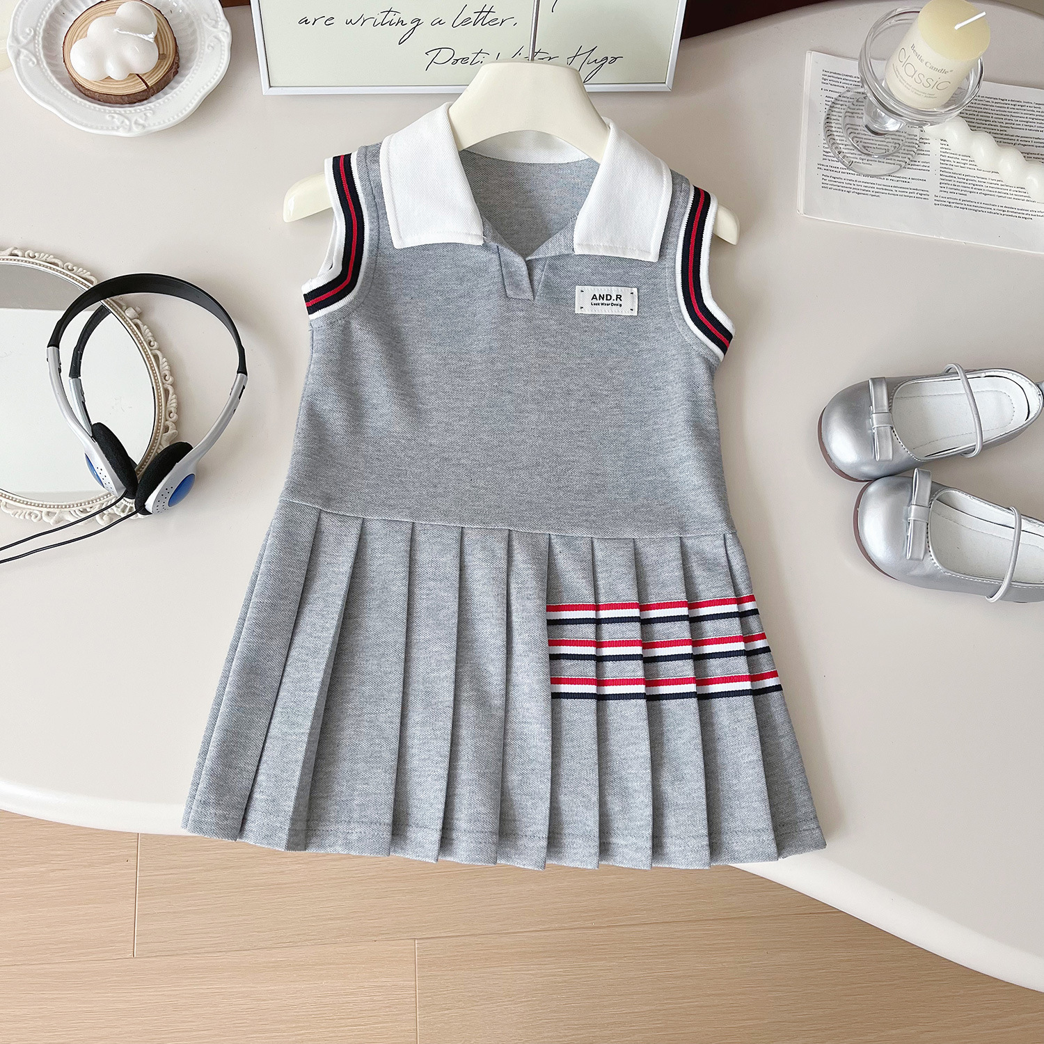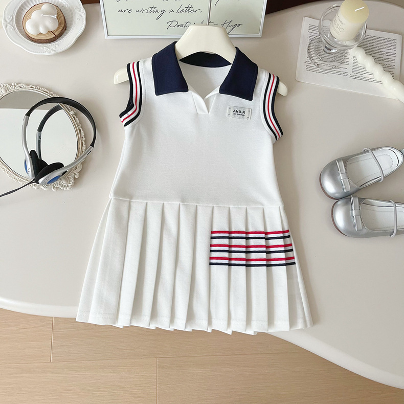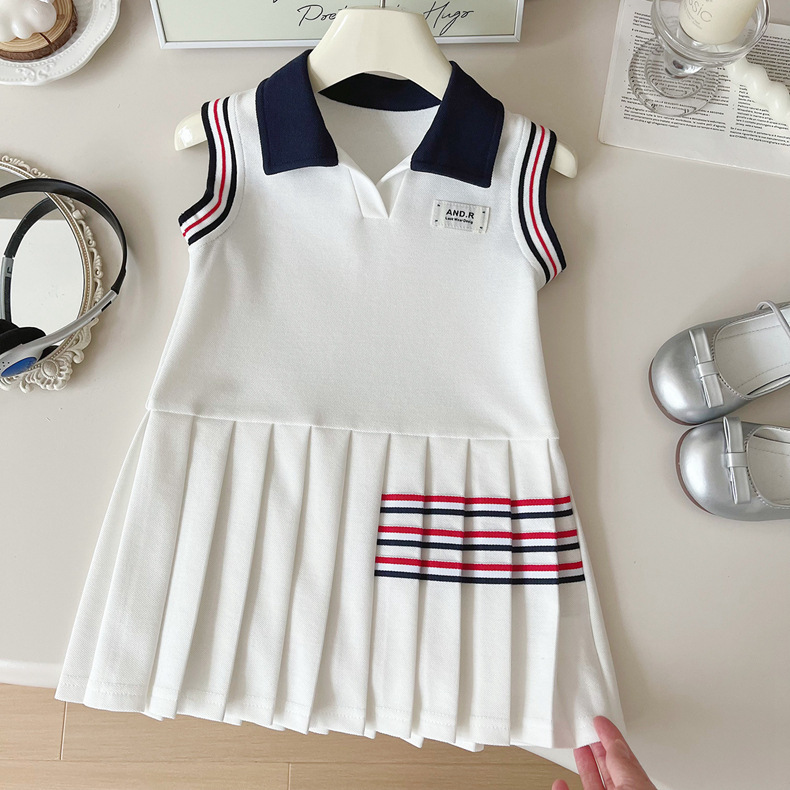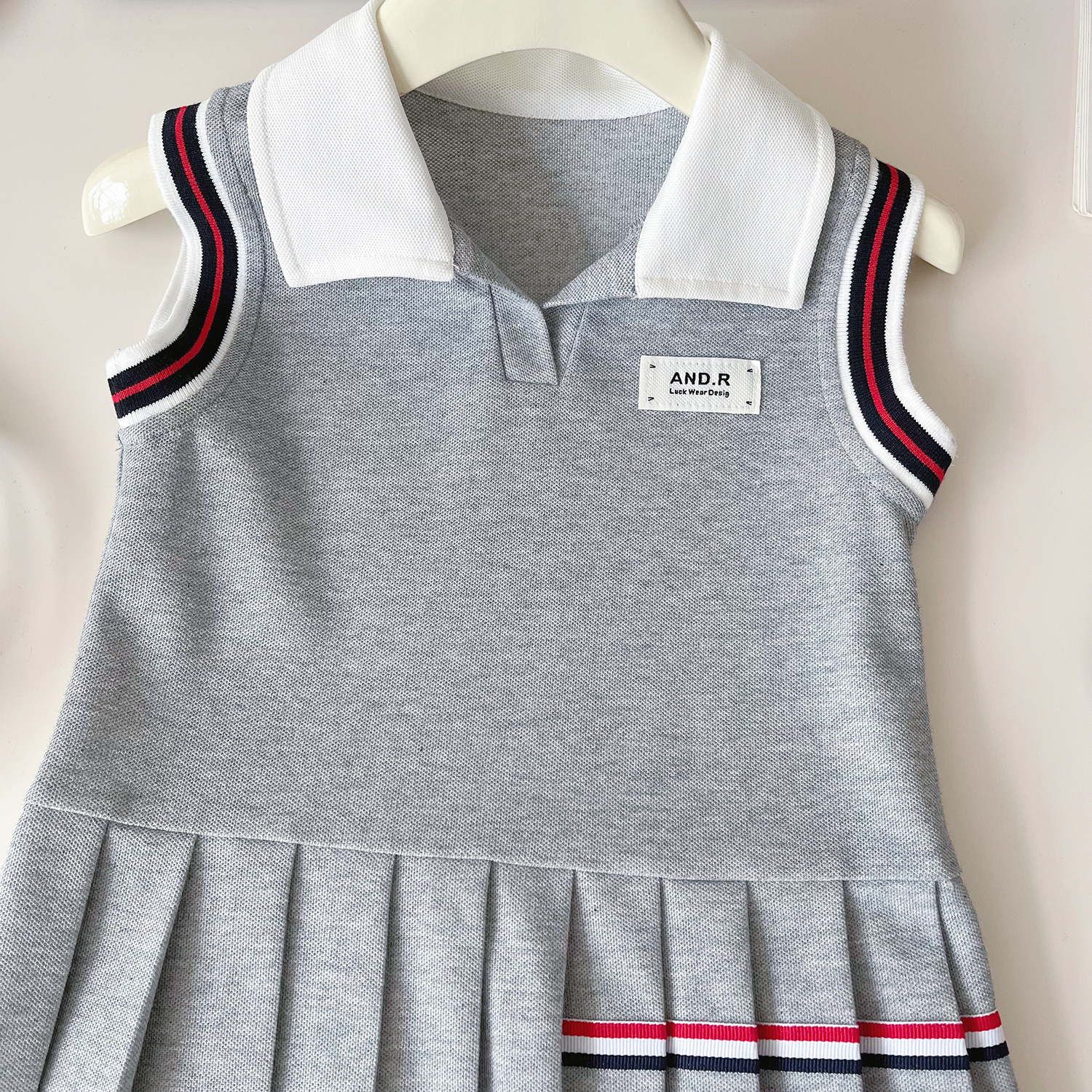 소녀 아기 원피스 여름 2025 새로운 스타일 조끼 치마 폴로 칼라 칼리지 스타일 민소매 주름 치마
