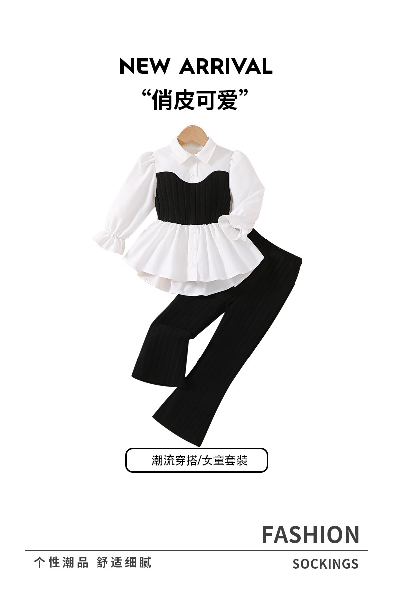 대외 무역 여아 정장, 레이스 니트 조끼, 패치워크 셔츠, 작은 향기 스타일 긴팔 상의, 니트 팬츠, 아동용 투피스 세트