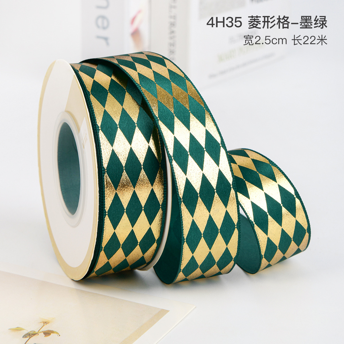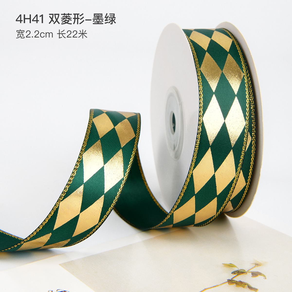• 이중 마름모, 짙은 녹색, 금색 가장자리, 폭 2.2cm, 길이 25야드