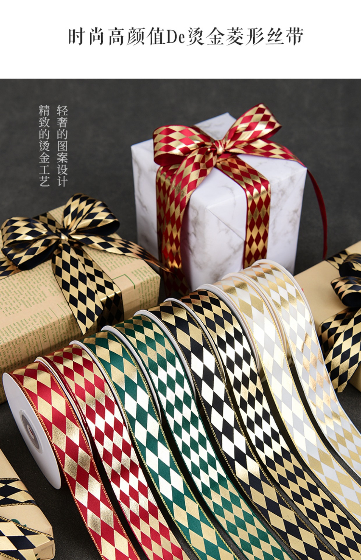 P66D 새해 다이아몬드 houndstooth 리본 선물 선물 상자 선물 리본 케이크 포장