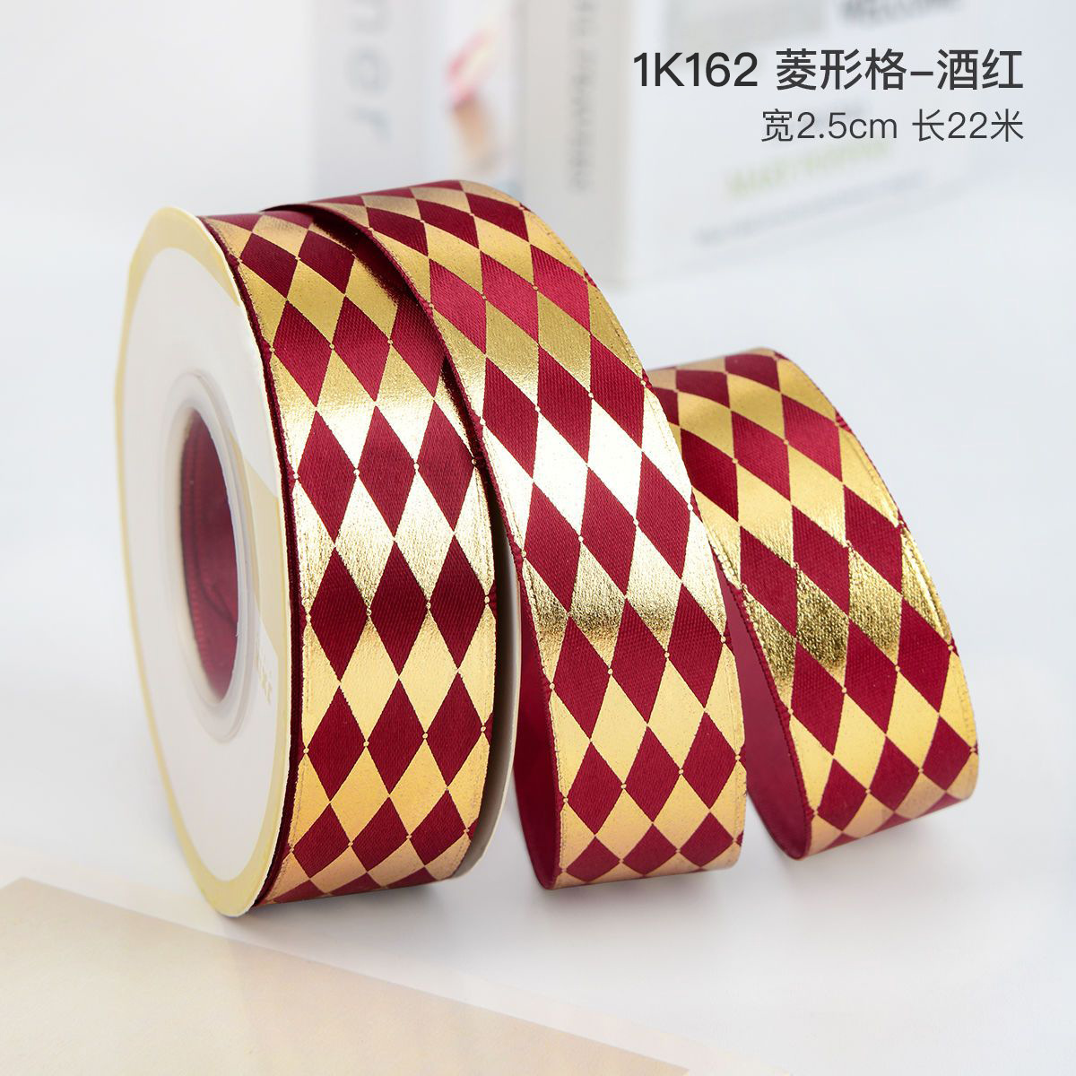 • 버건디 다이아몬드 그리드, 폭 2.5cm, 길이 25야드
