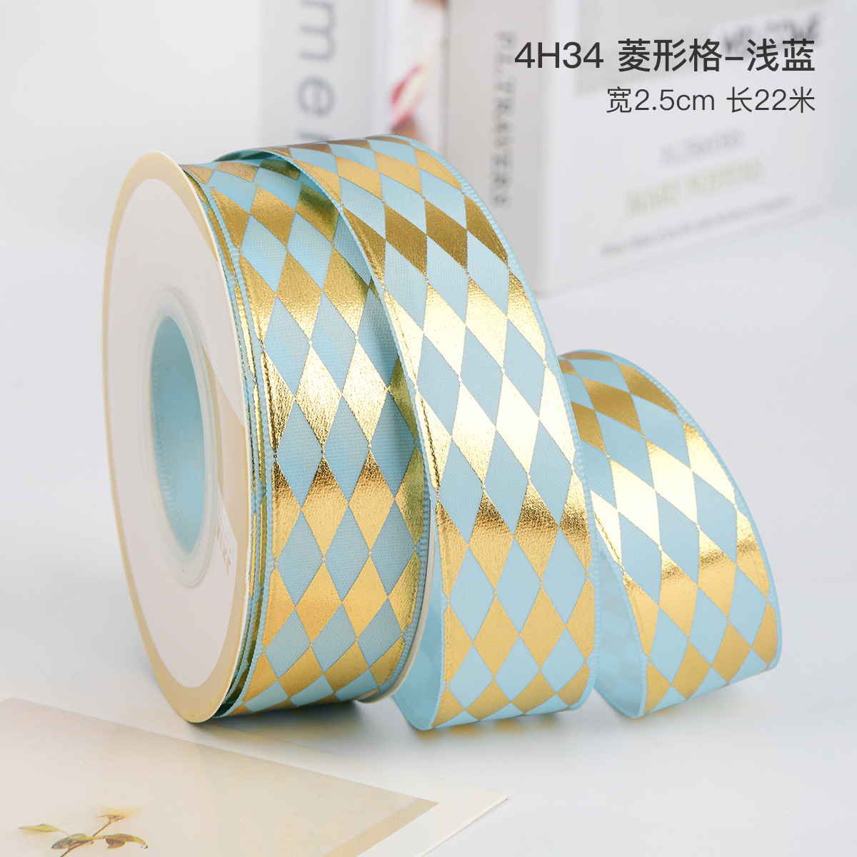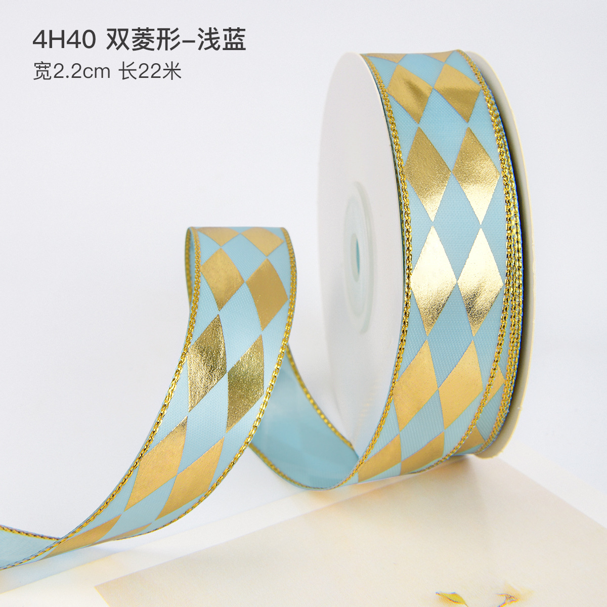 • 이중 마름모, 하늘색, 금색 가장자리, 폭 2.2cm, 길이 25야드