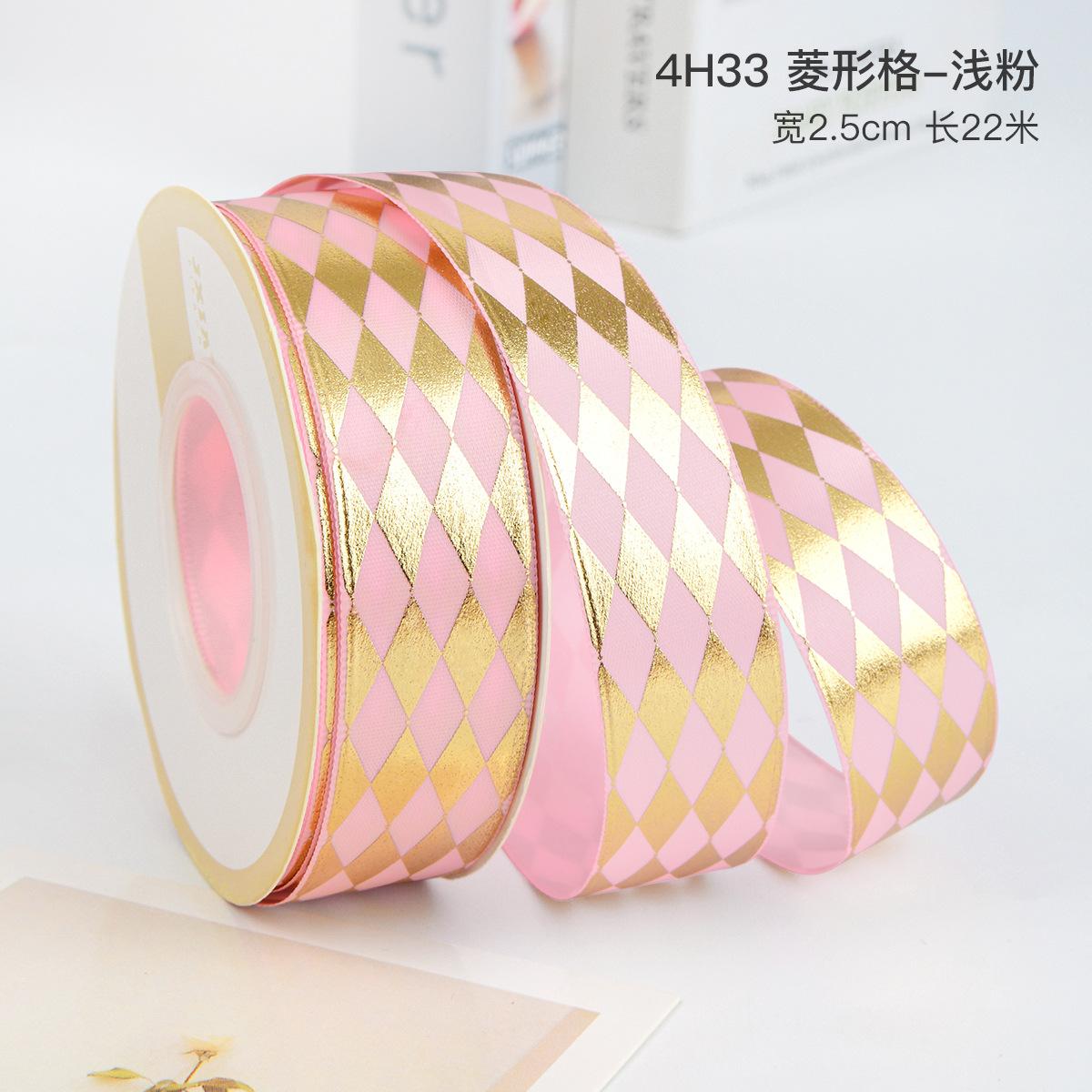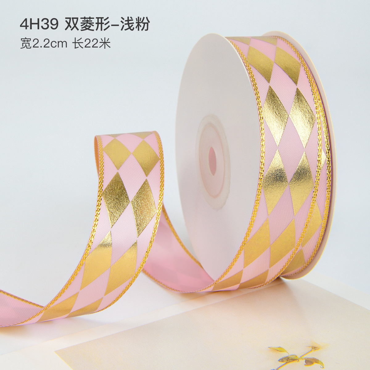 • 더블 다이아몬드, 라이트 핑크, 골드 엣지, 폭 2.2cm, 길이 25야드