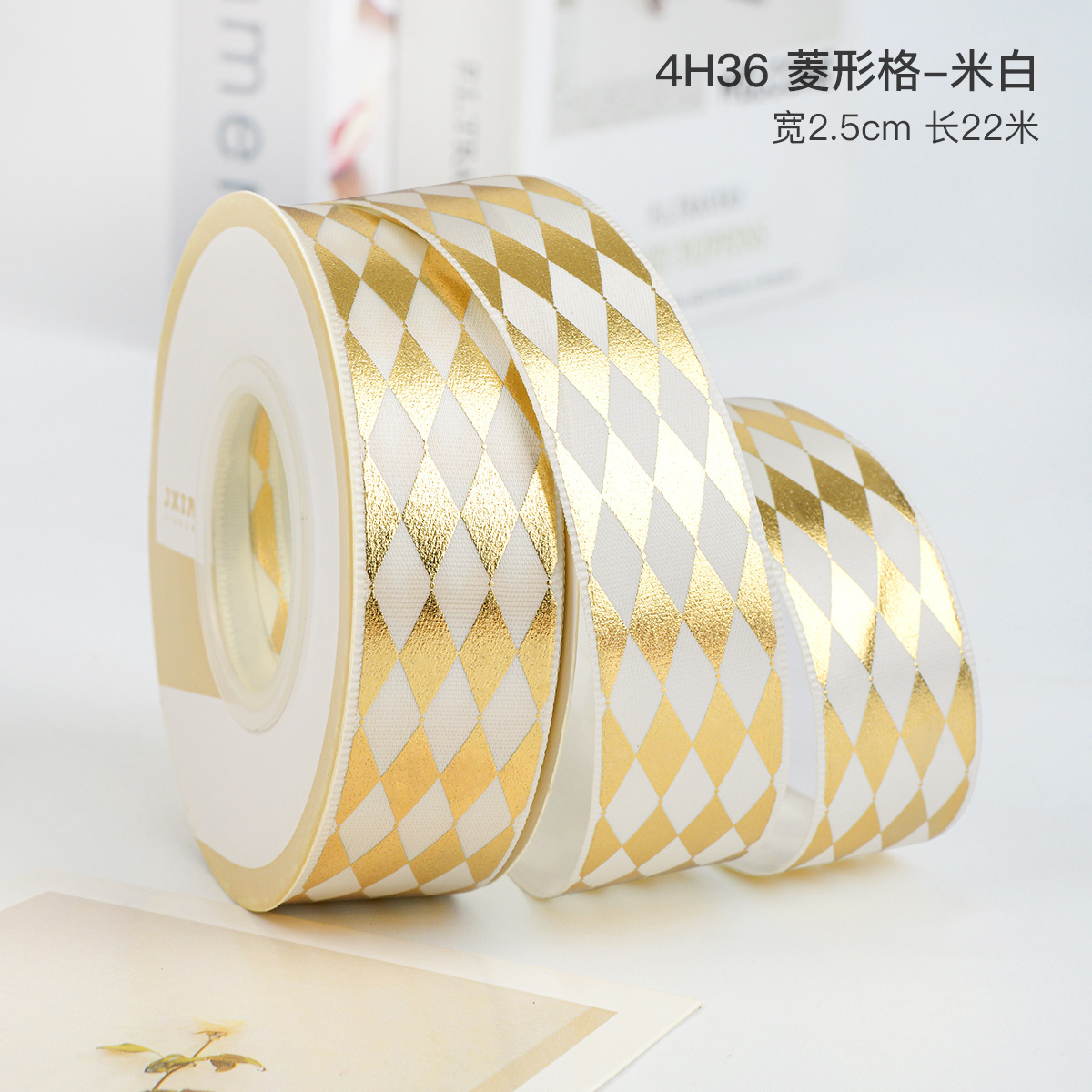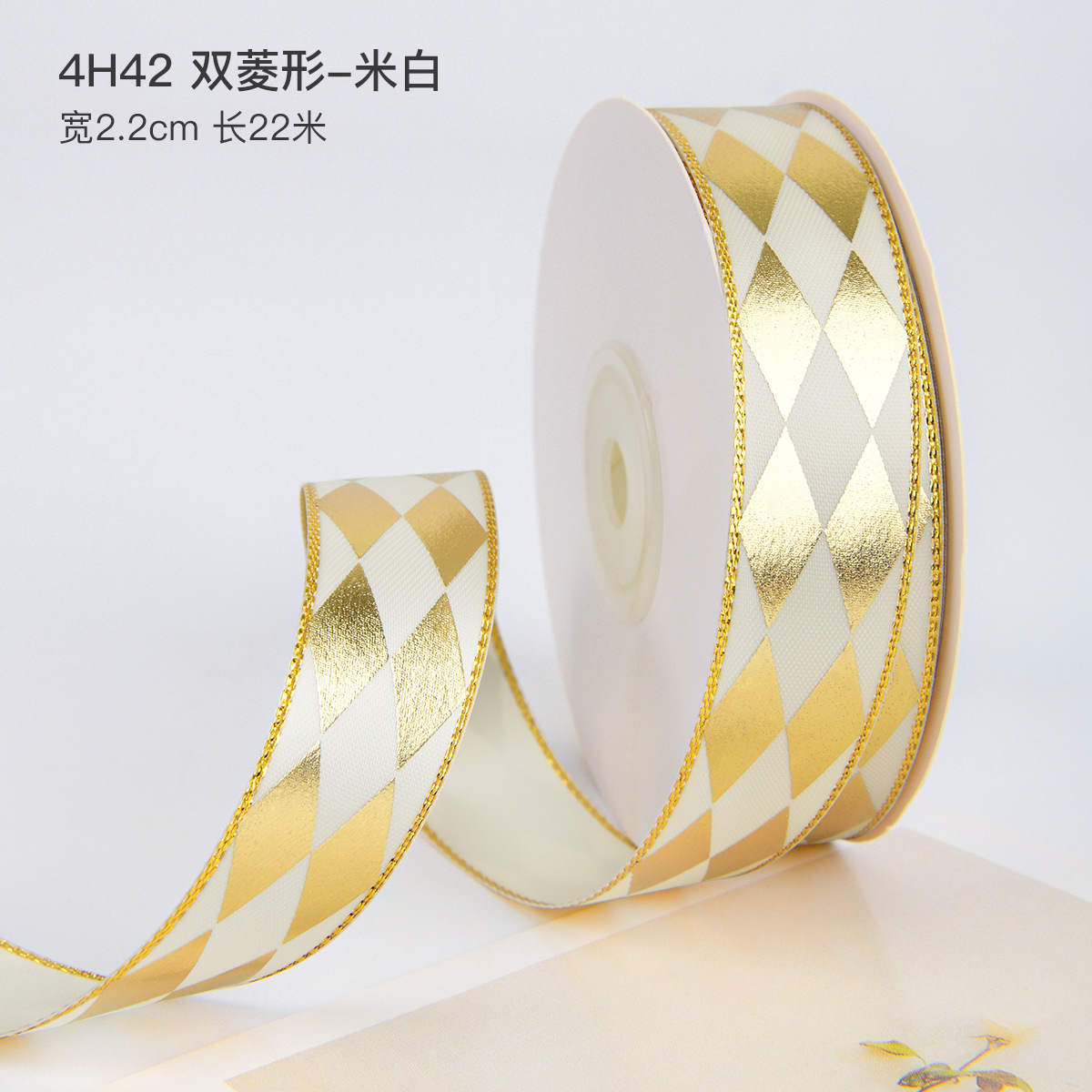 • 더블 다이아몬드, 오프화이트, 골드 엣지, 폭 2.2cm, 길이 25야드