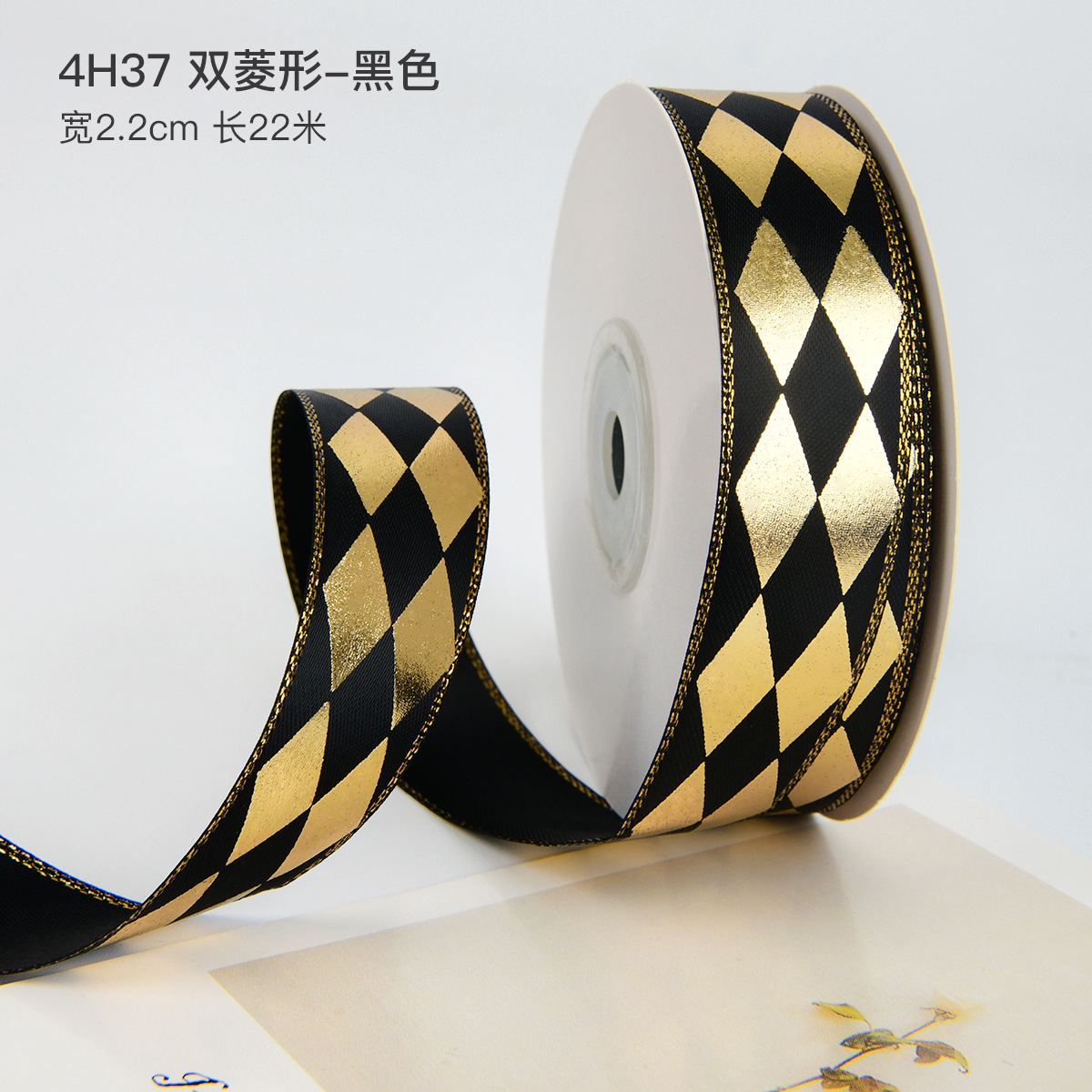 • 더블 다이아몬드 모양, 블랙 골드 가장자리, 폭 2.2cm, 길이 25야드