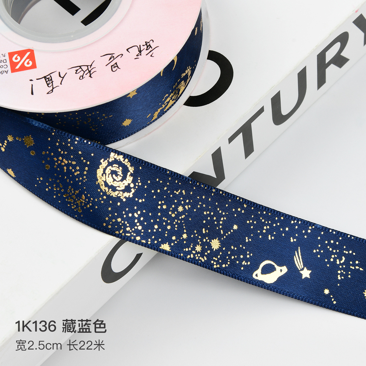 • 별이 빛나는 하늘 리본, 네이비 블루, 폭 2.5cm, 길이 25야드