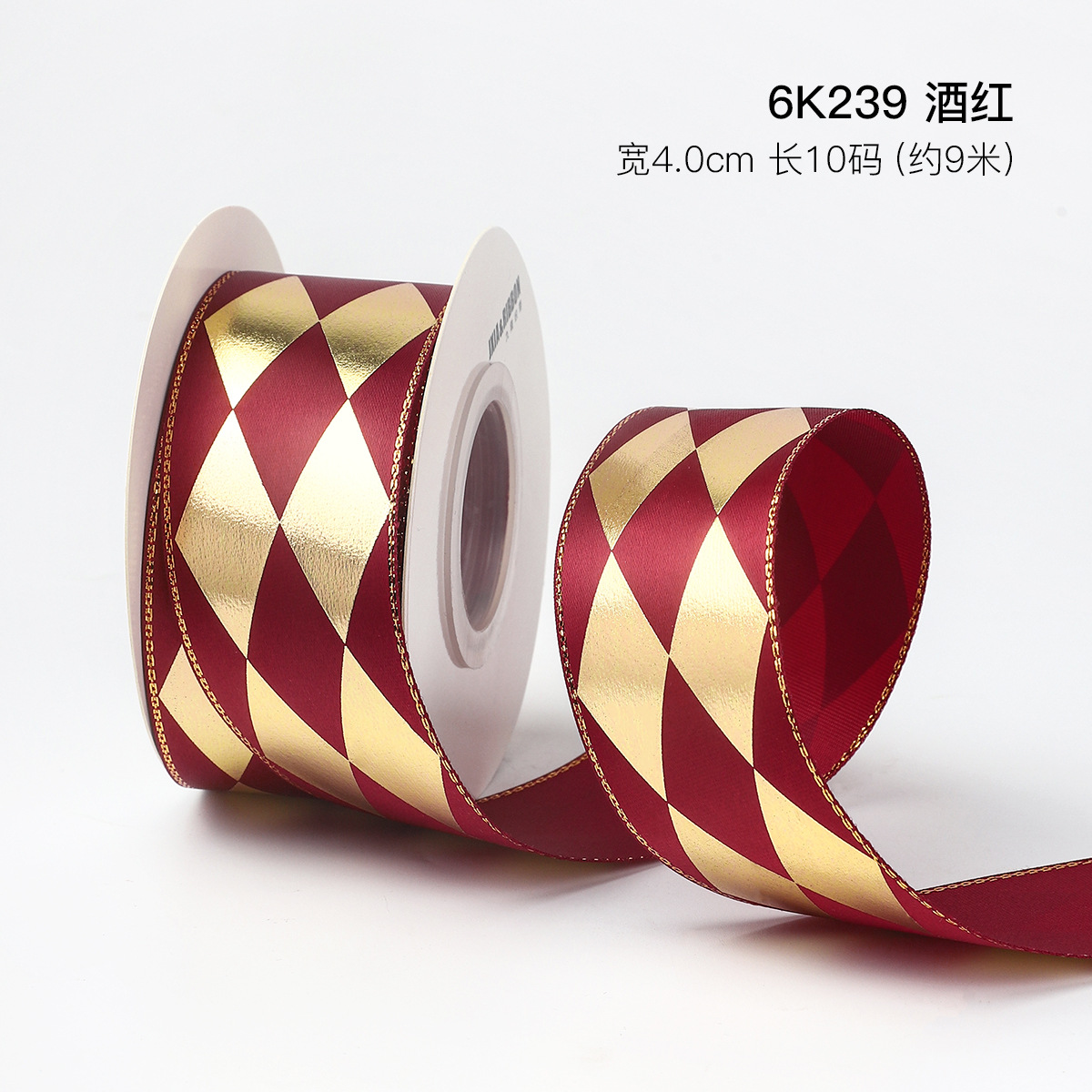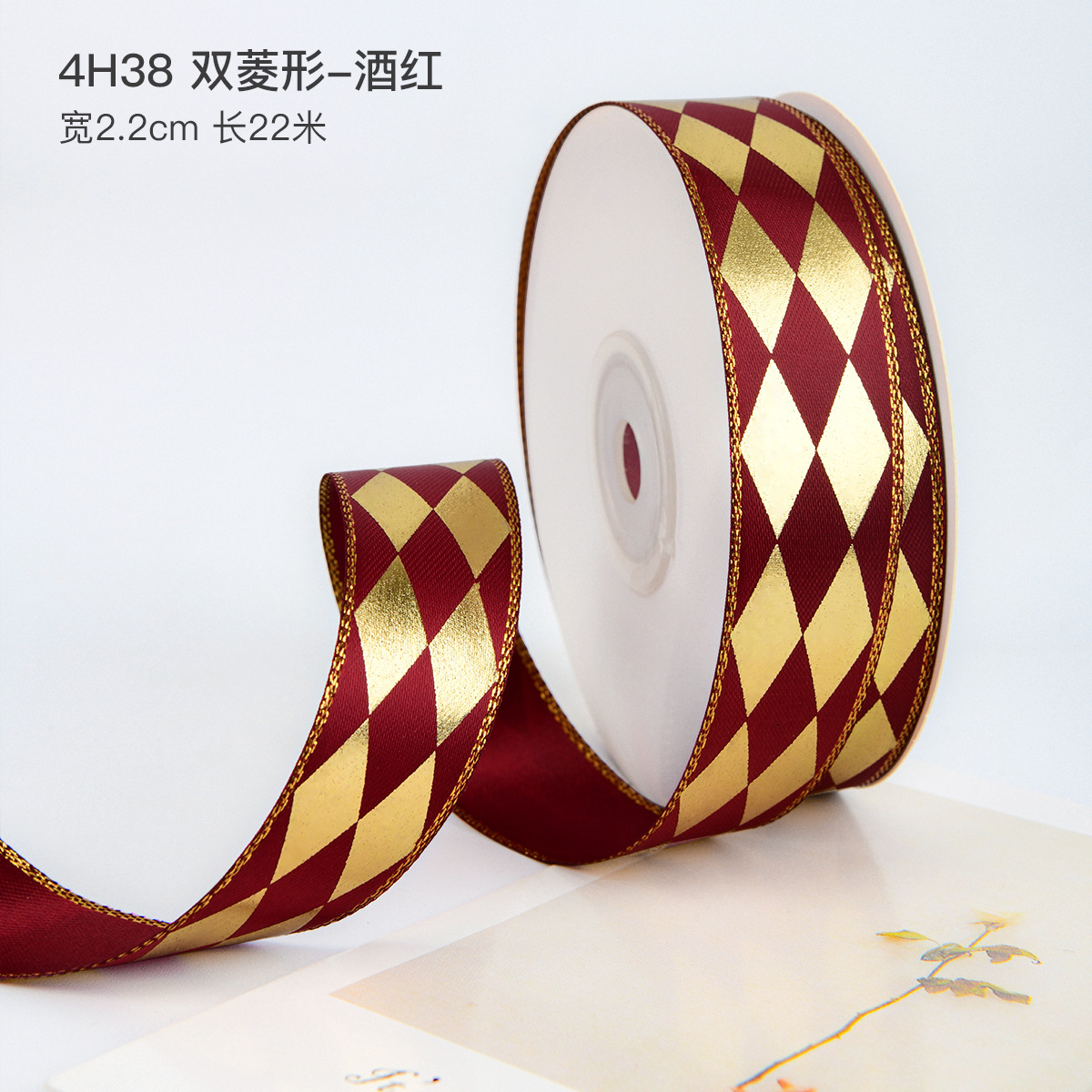 • 더블 다이아몬드, 버건디, 골드 엣지, 폭 2.2cm, 길이 25야드