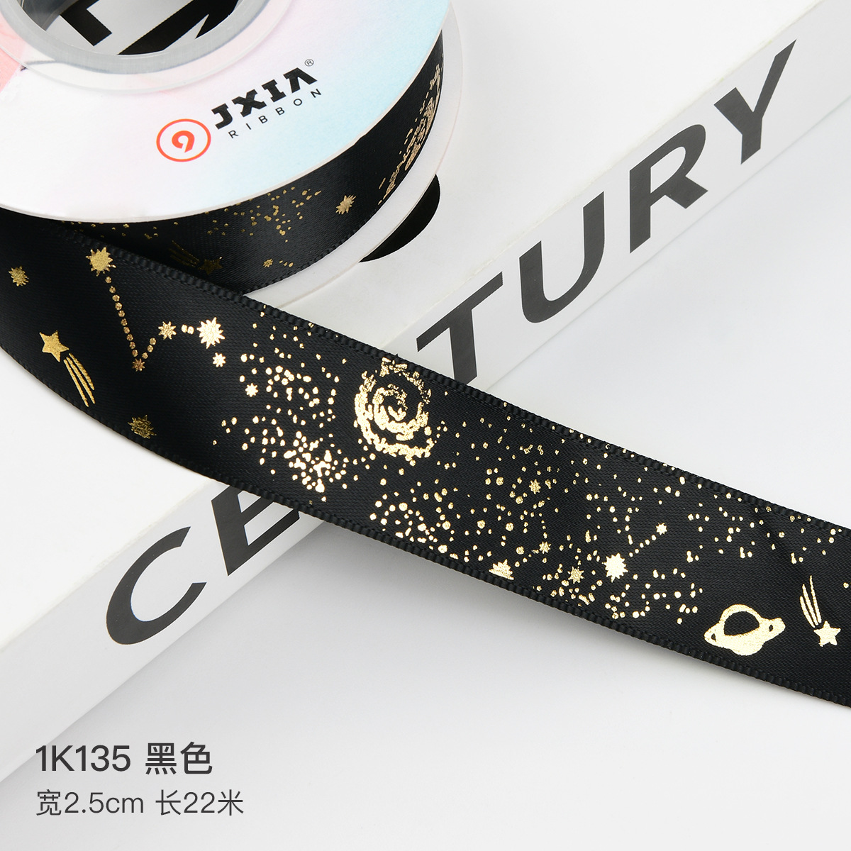 • 별이 빛나는 하늘 리본, 대형 검정색, 폭 2.5cm, 길이 25야드