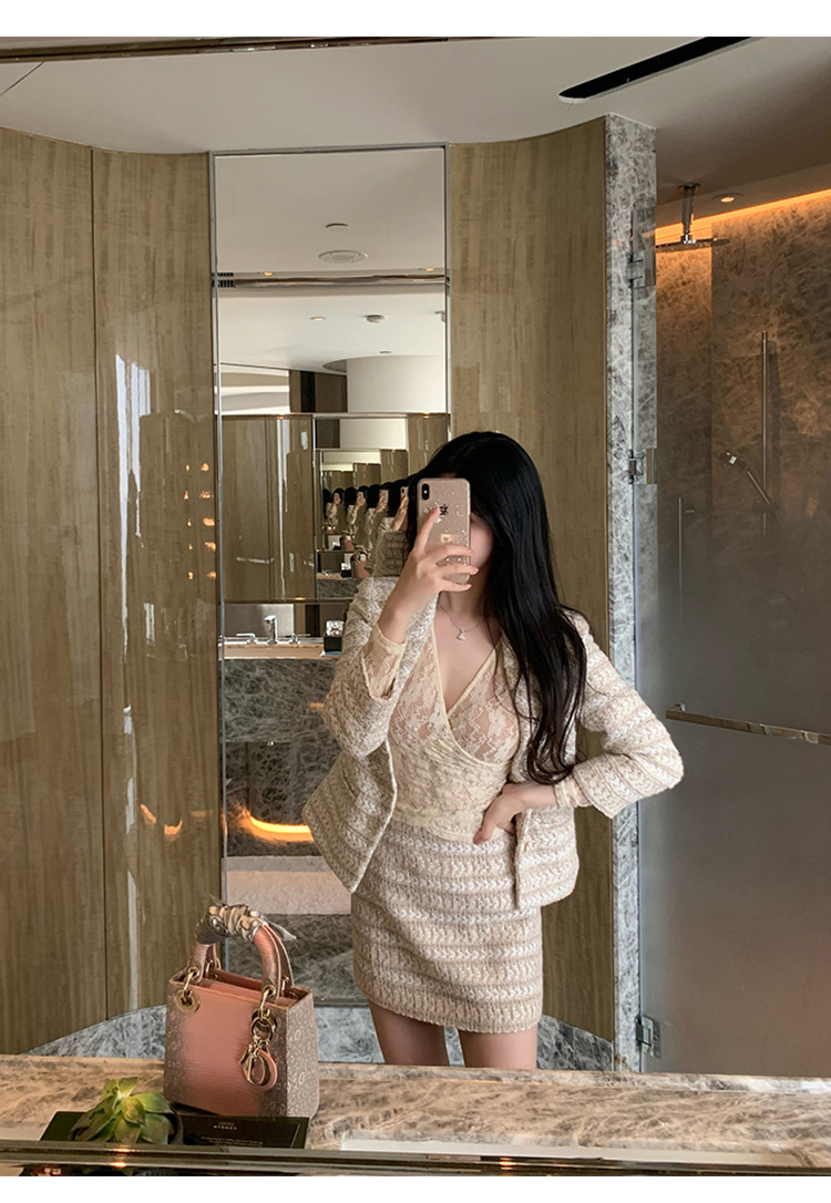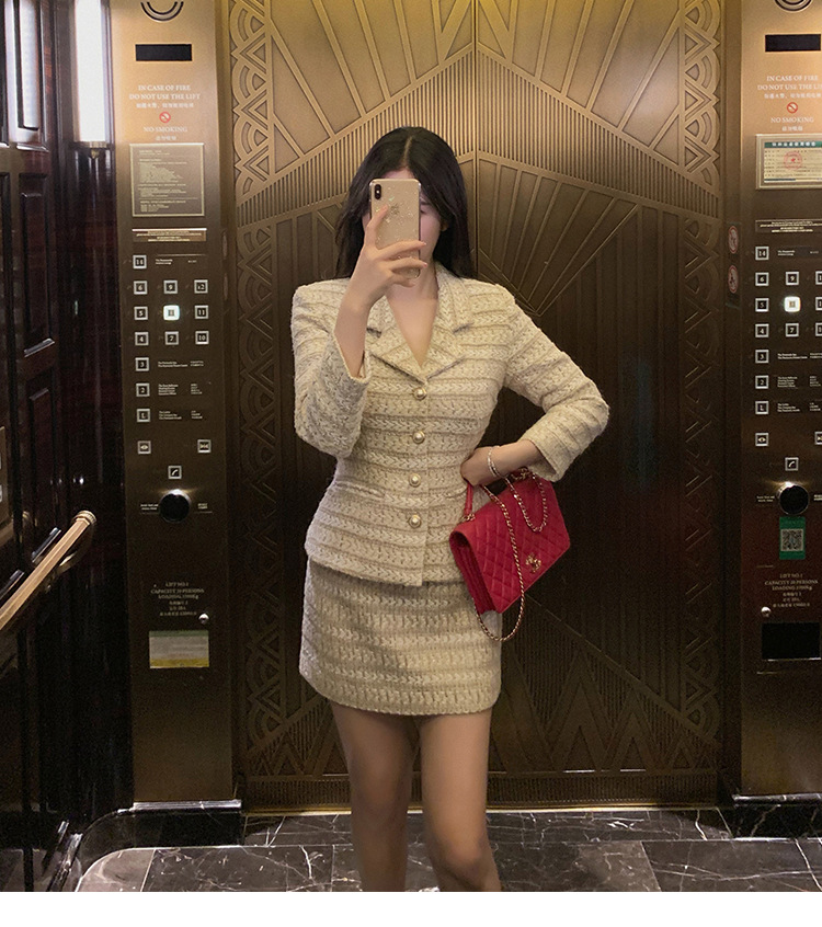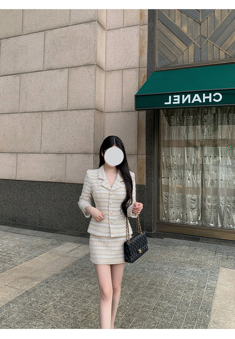 새로운 틈새 디자인 센스 프랑스 사교계 샤넬 스타일 우아한 짧은 코트 여자 올 매치 힙합 스커트 짧은 치마