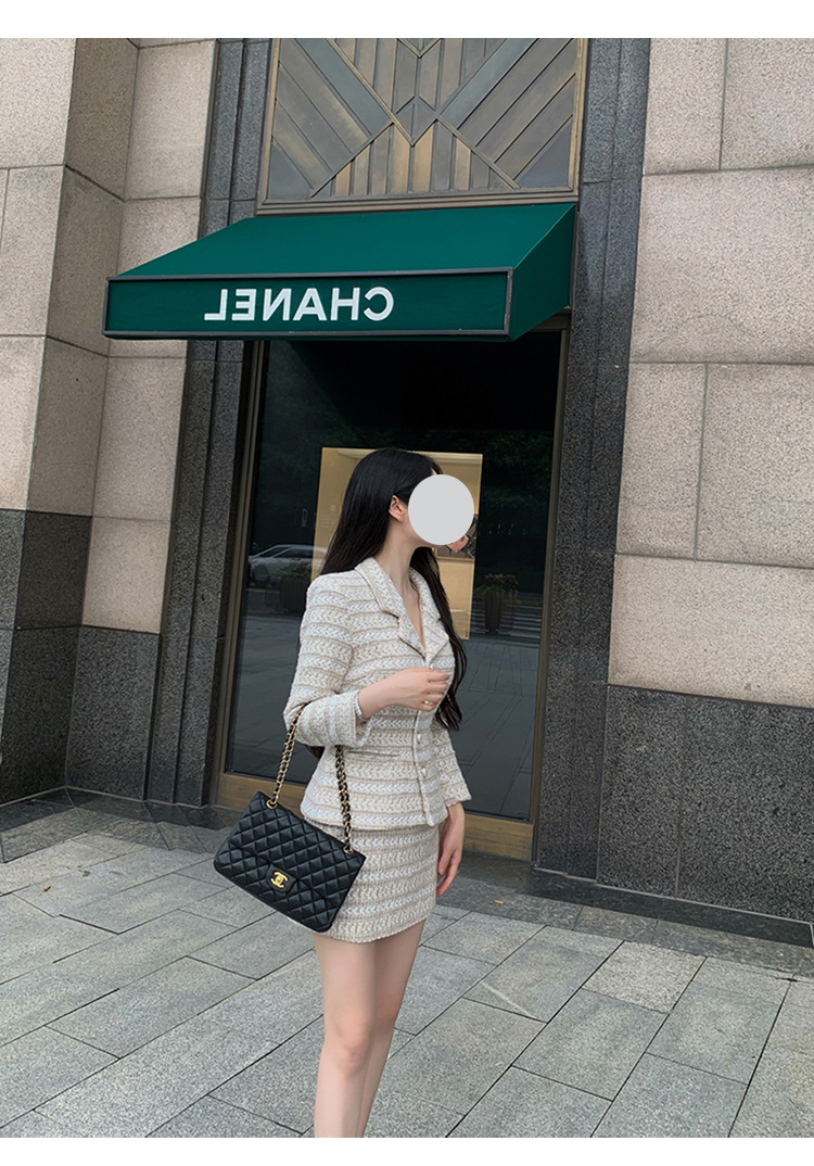 새로운 틈새 디자인 센스 프랑스 사교계 샤넬 스타일 우아한 짧은 코트 여자 올 매치 힙합 스커트 짧은 치마스토어 가기