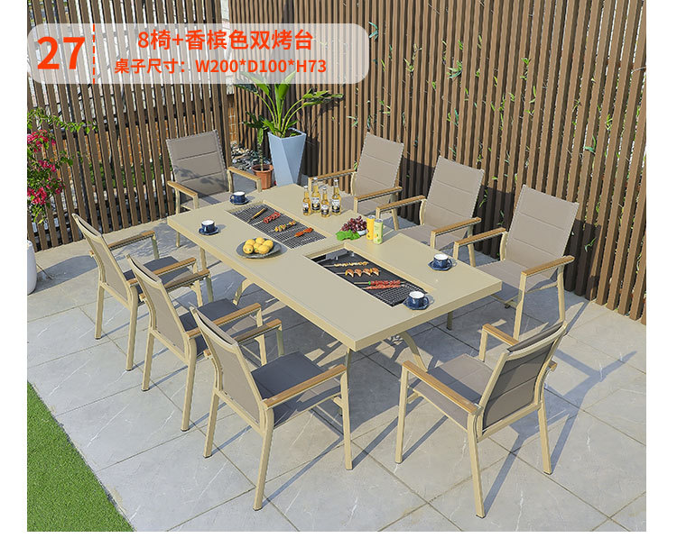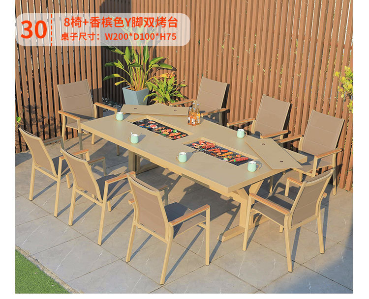 • 조합 30: 의자 8개 + 188*100*H73 샴페인 컬러 T-풋 더블 그릴