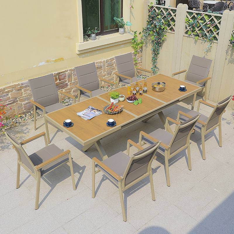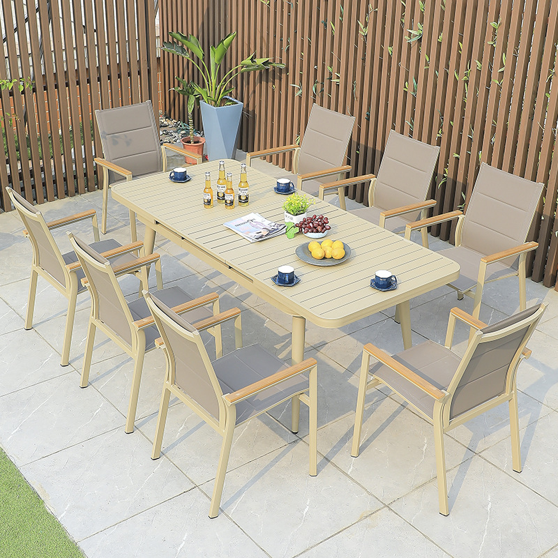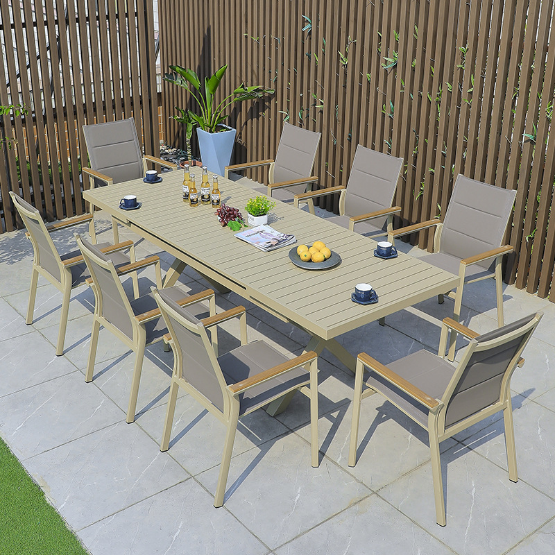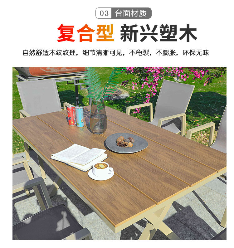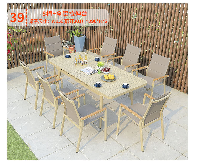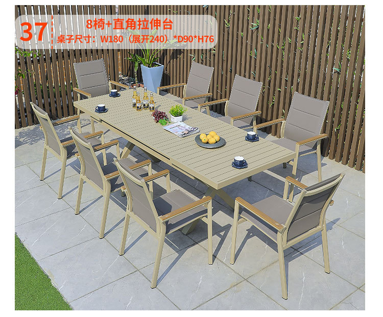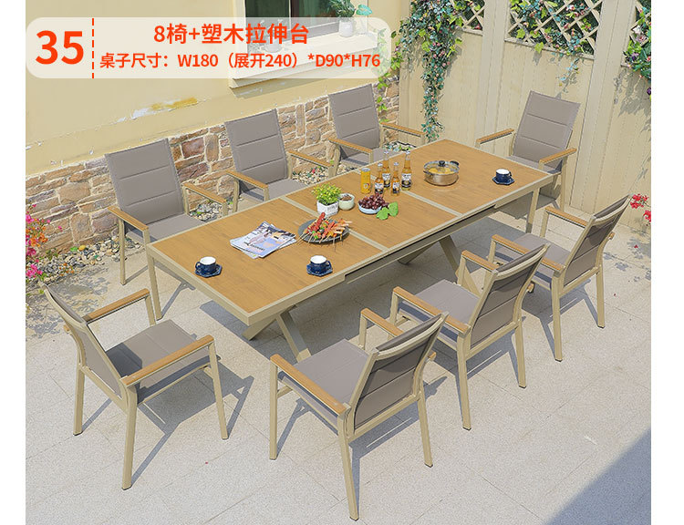 • 조합 35: 의자 8개 + 180(확장 240) *90*H76 스트레치 플라스틱 목재 벤치