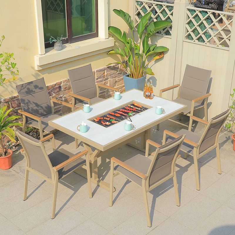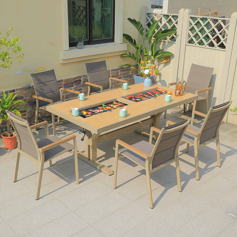• 조합 23: 의자 6개 + 150*90*H75 Y 다리 숯불 그릴