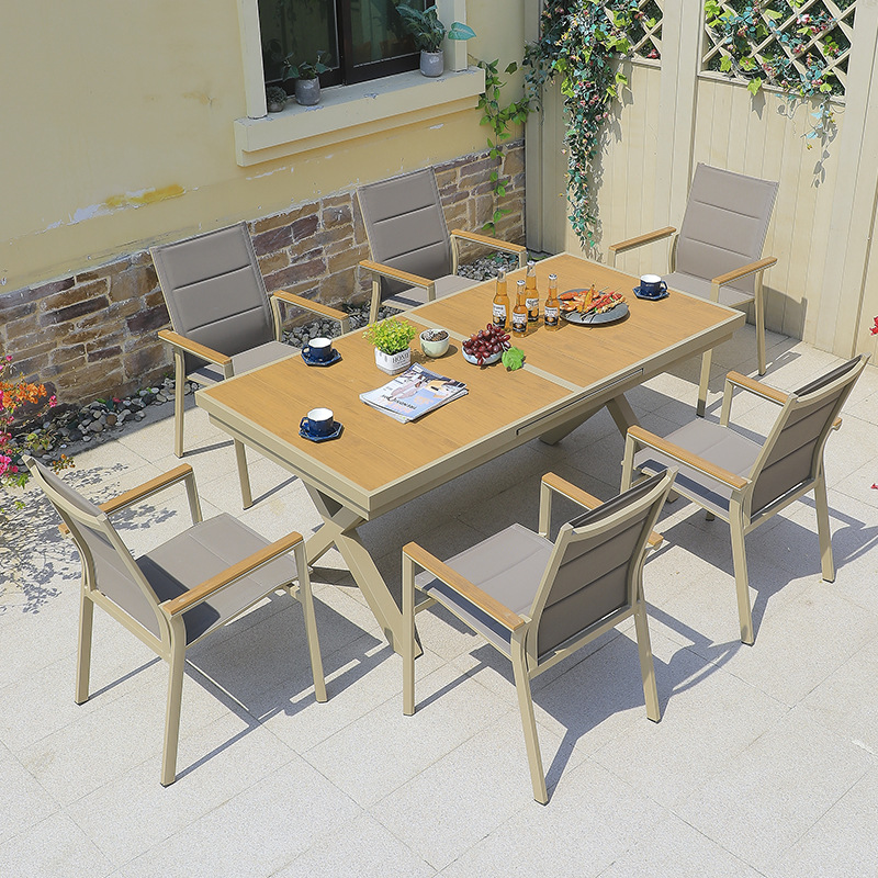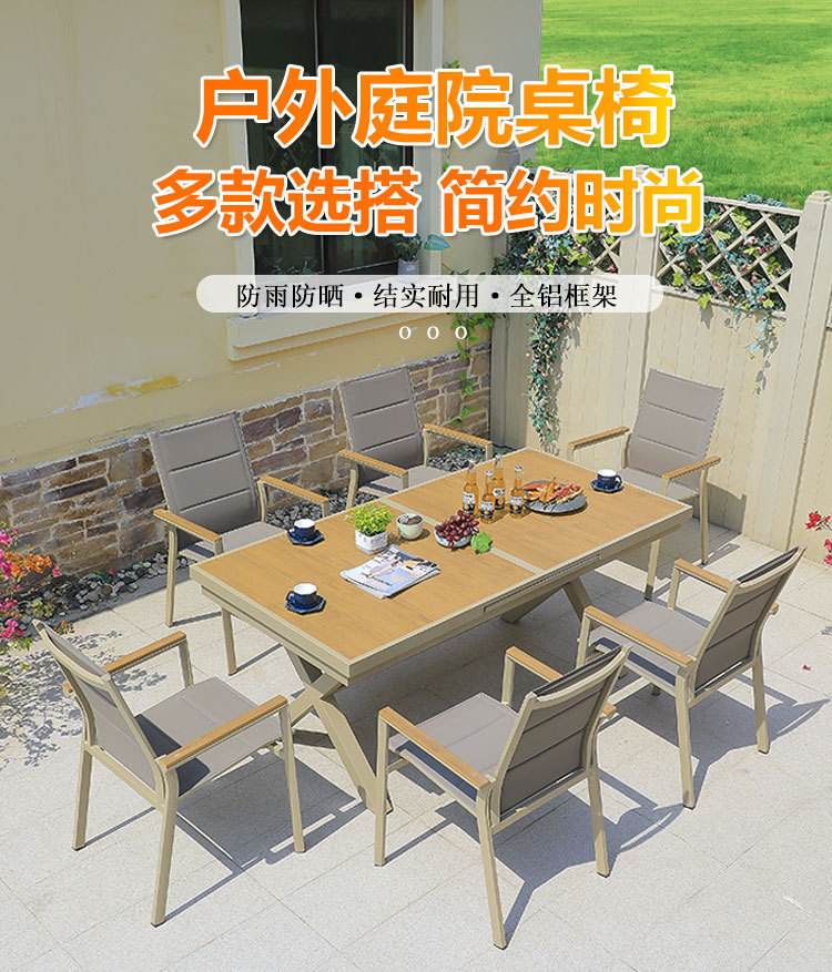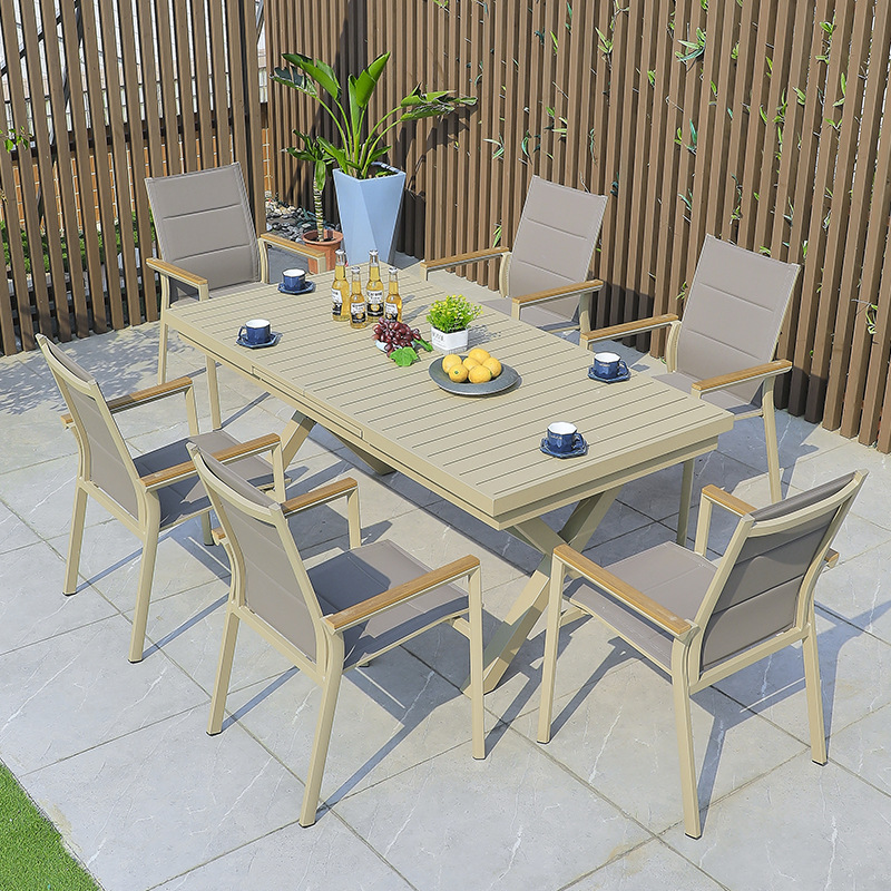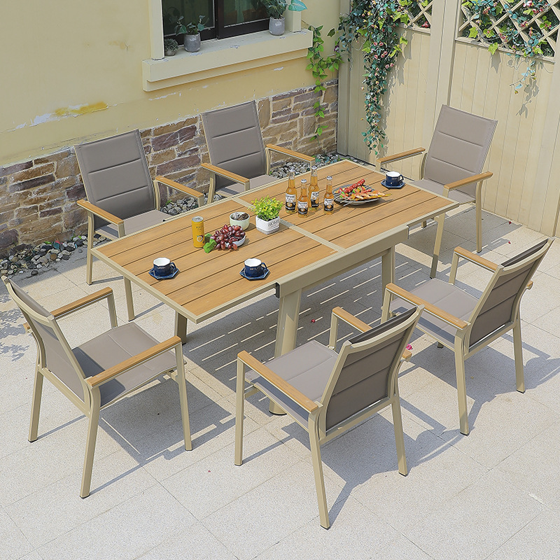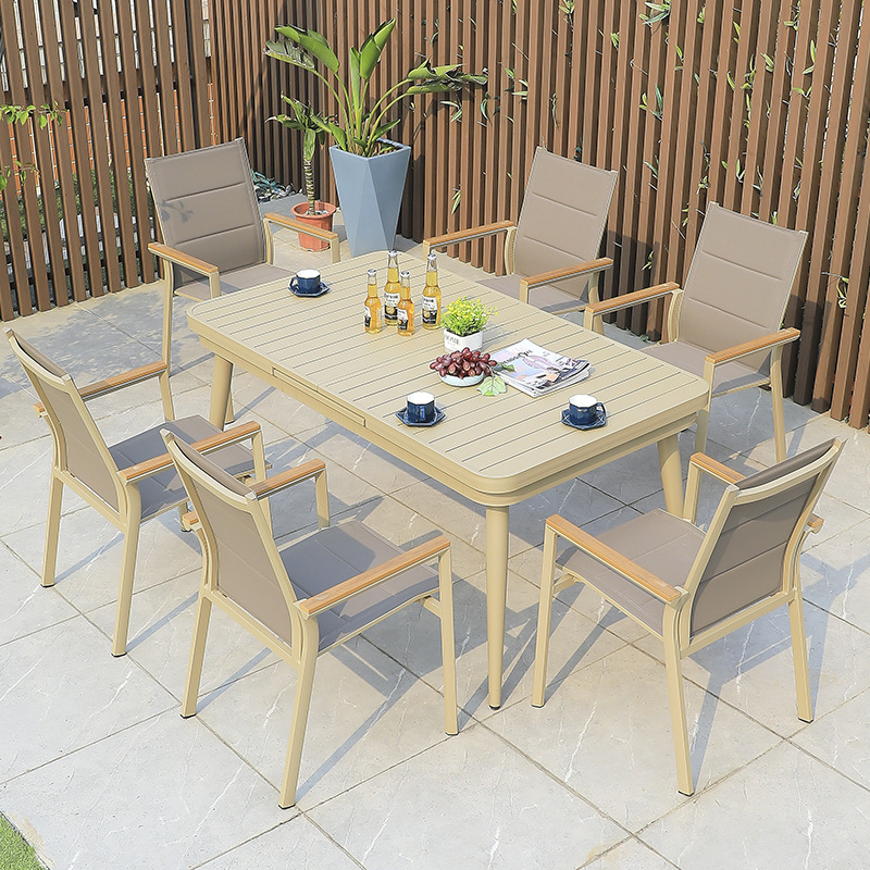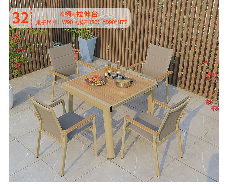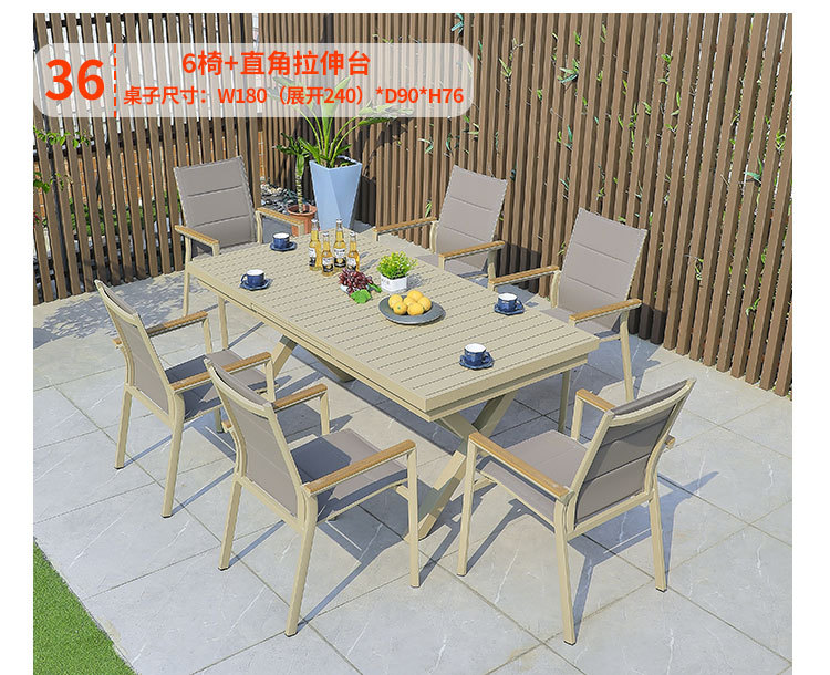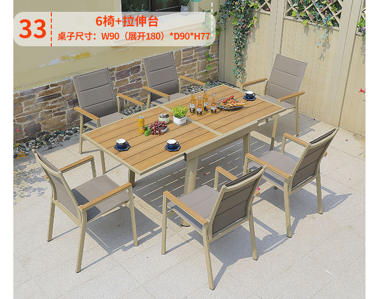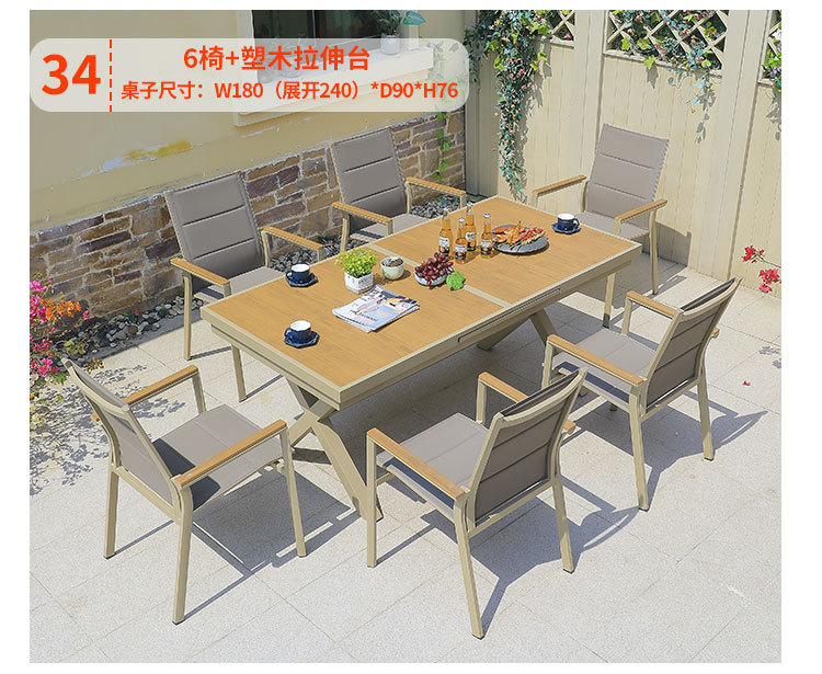 • 조합 34: 의자 6개 + 180(확장 240) *90*H76 스트레치 플라스틱 목재 벤치