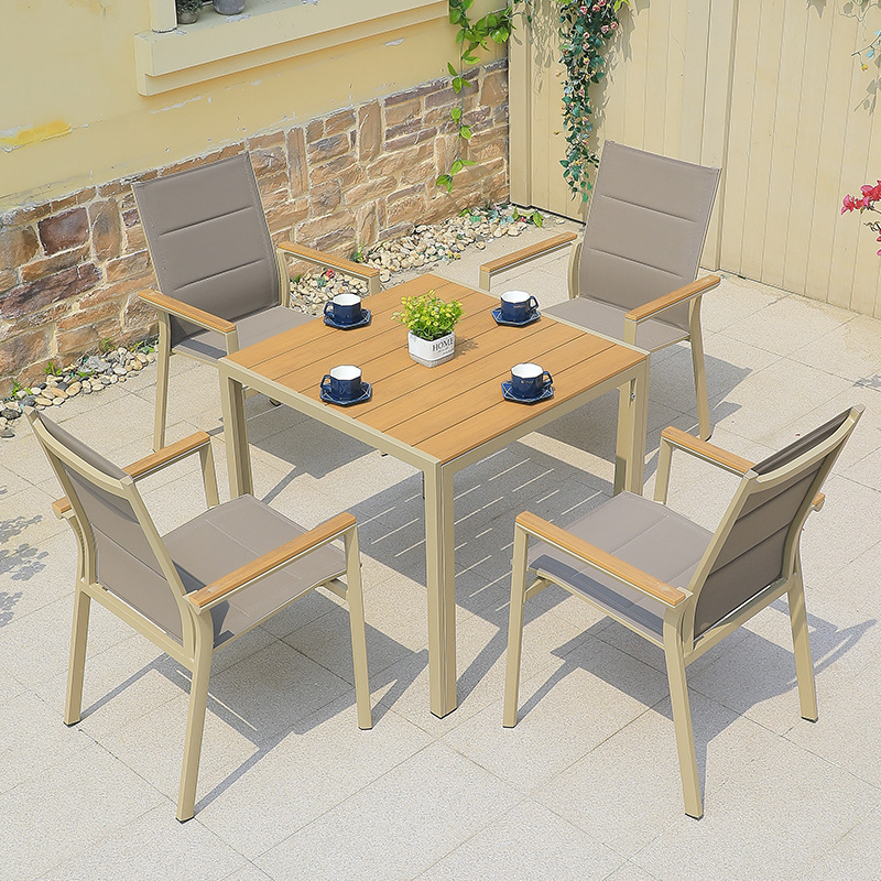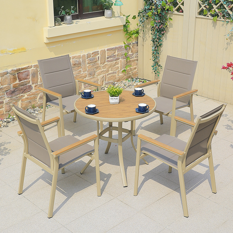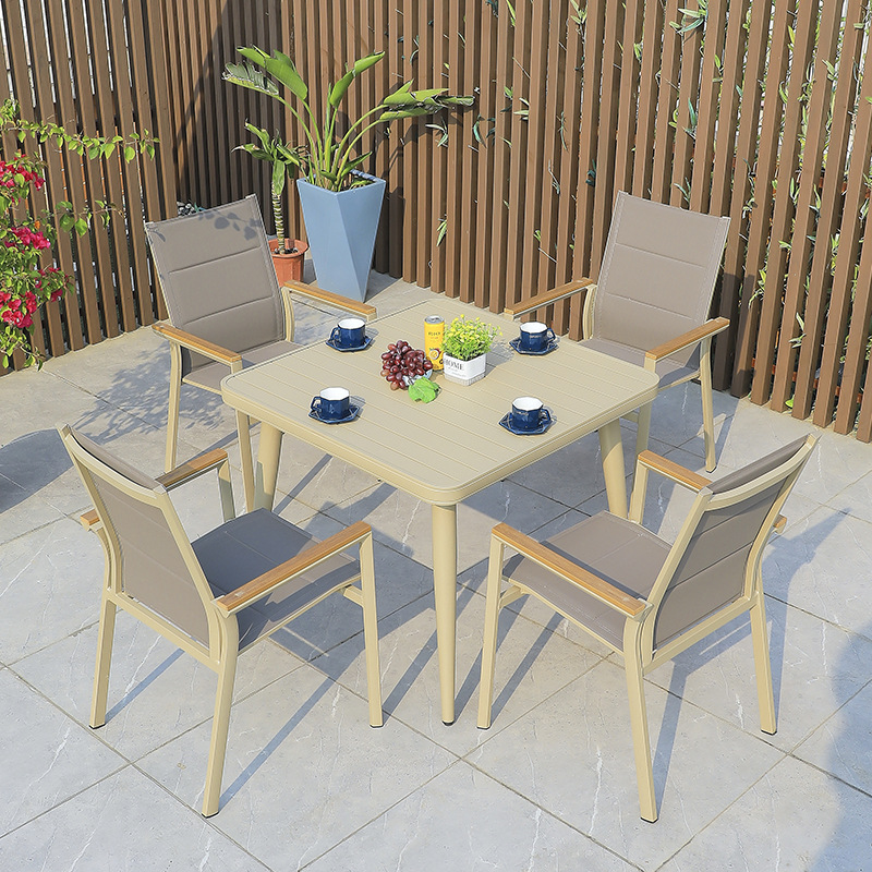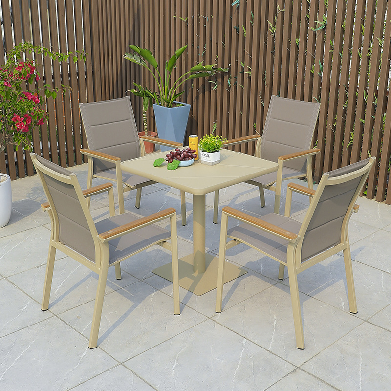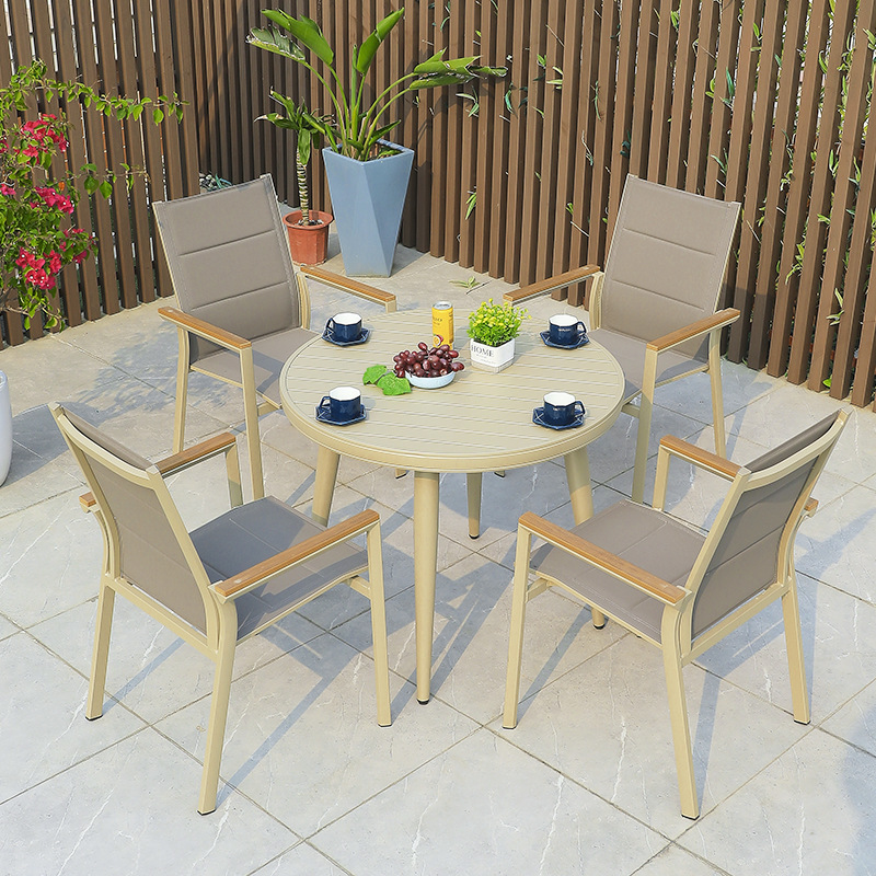 야외 레저 테이블과 의자 조합 식탁 안뜰 정원 야외 테라스 야외 간단한 테슬린 메쉬 테이블과 의자