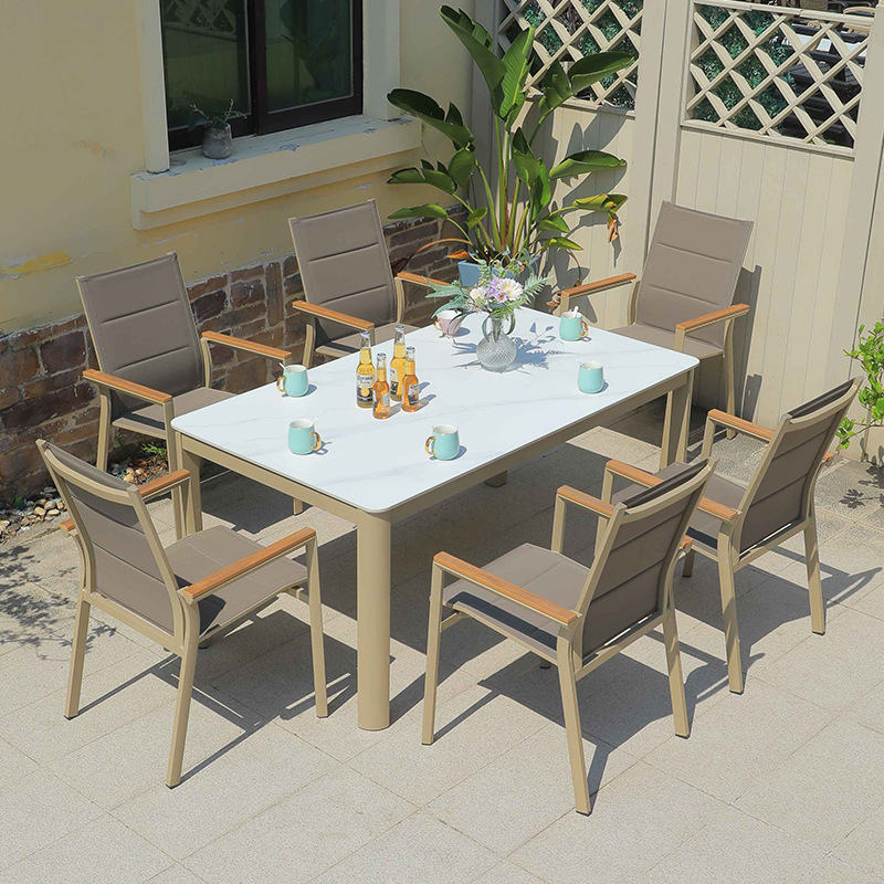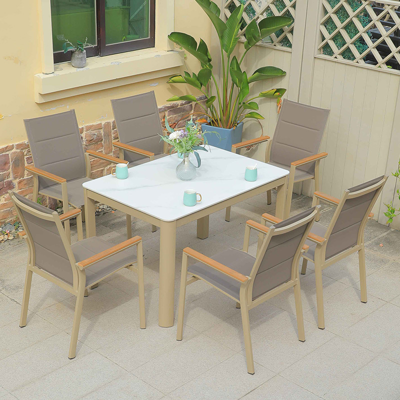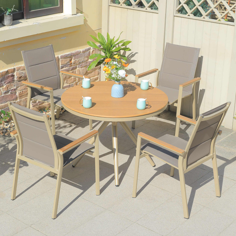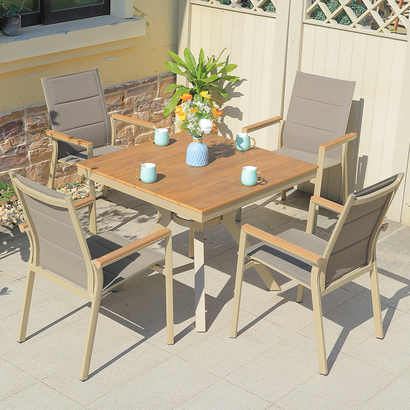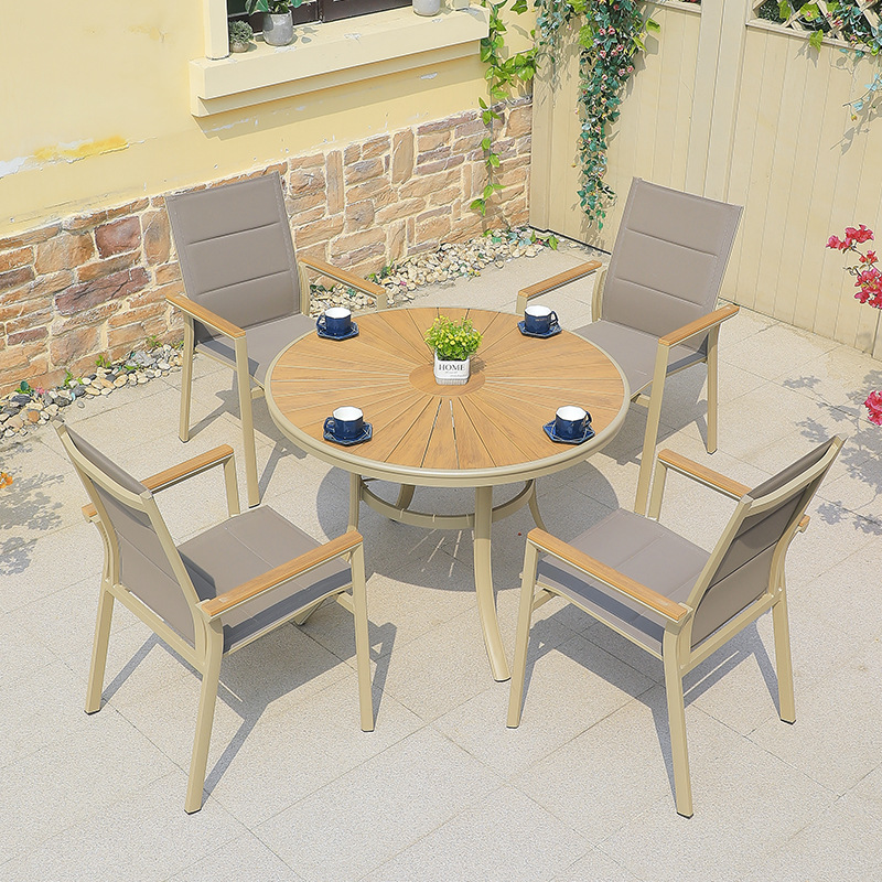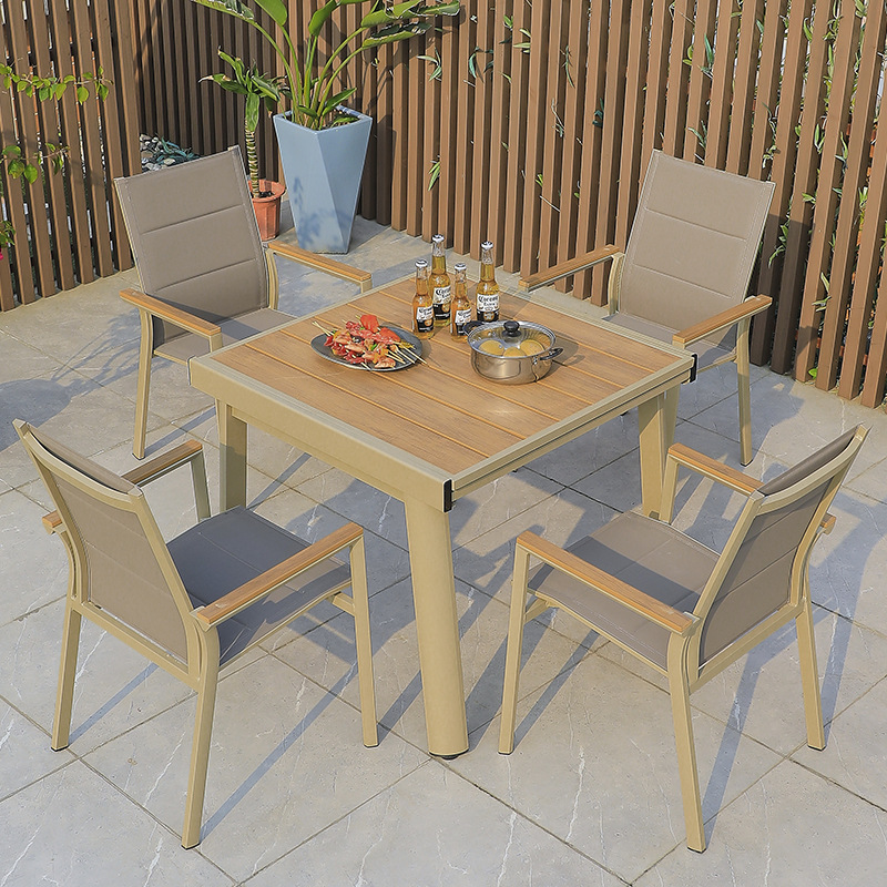 야외 레저 테이블과 의자 조합 식탁 안뜰 정원 야외 테라스 야외 간단한 테슬린 메쉬 테이블과 의자
