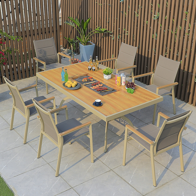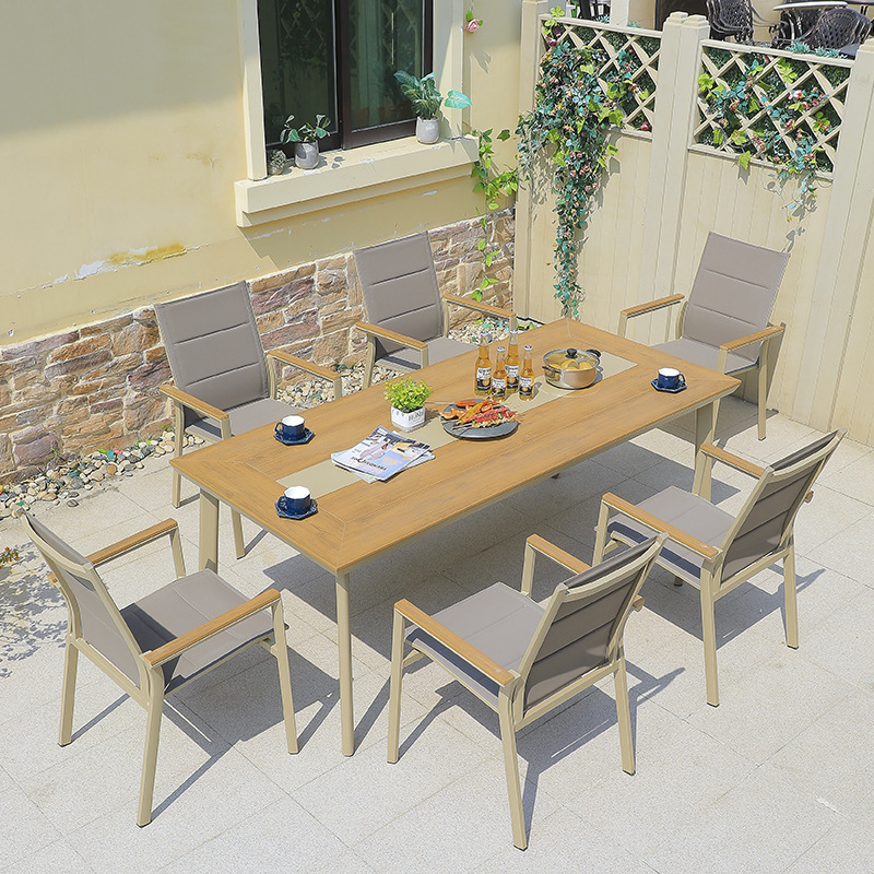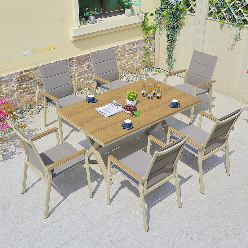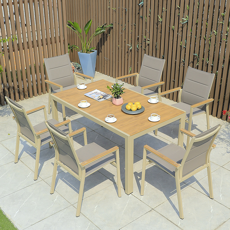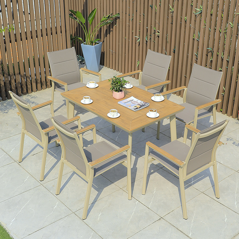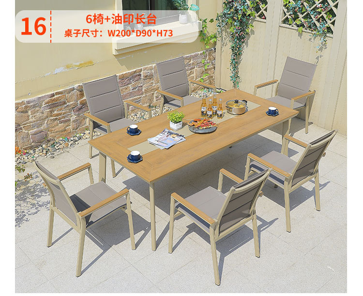 • 조합 16: 의자 6개 + 200*90*H73 잉크젯 플라스틱 목재 벤치