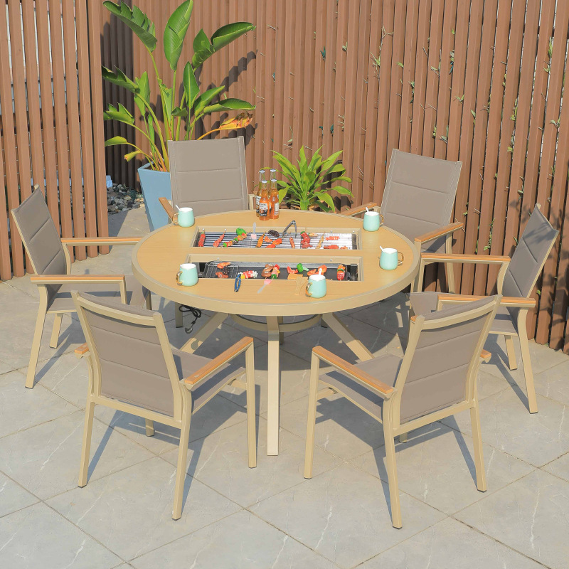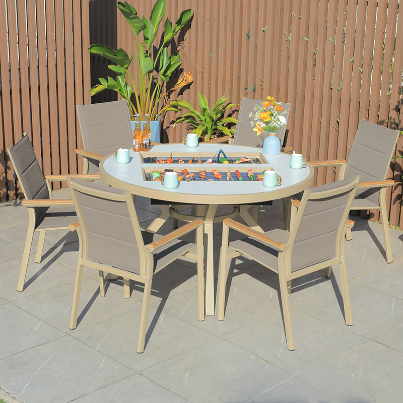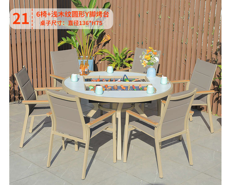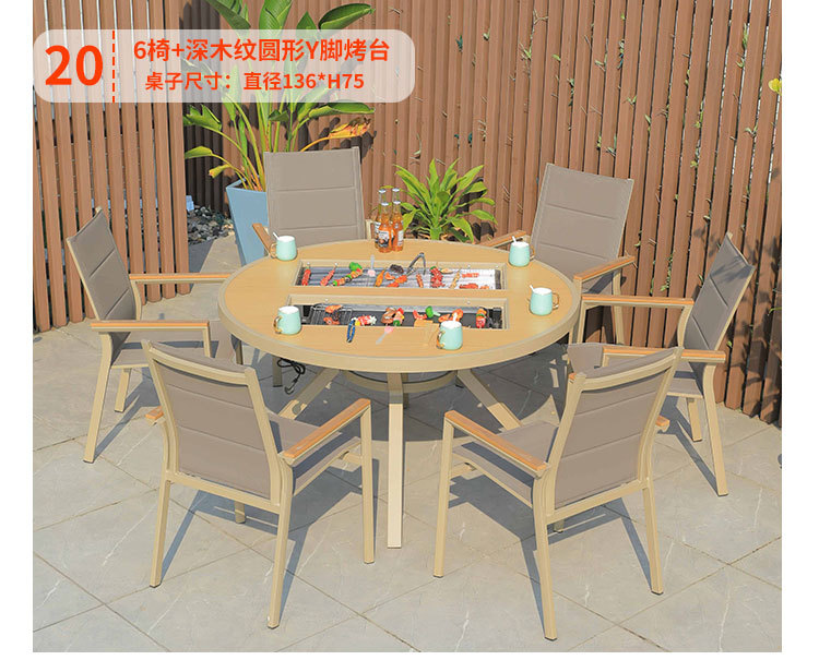 • 조합 20: 의자 6개 + 직경 136*H75 원형 이중 그릴 테이블
