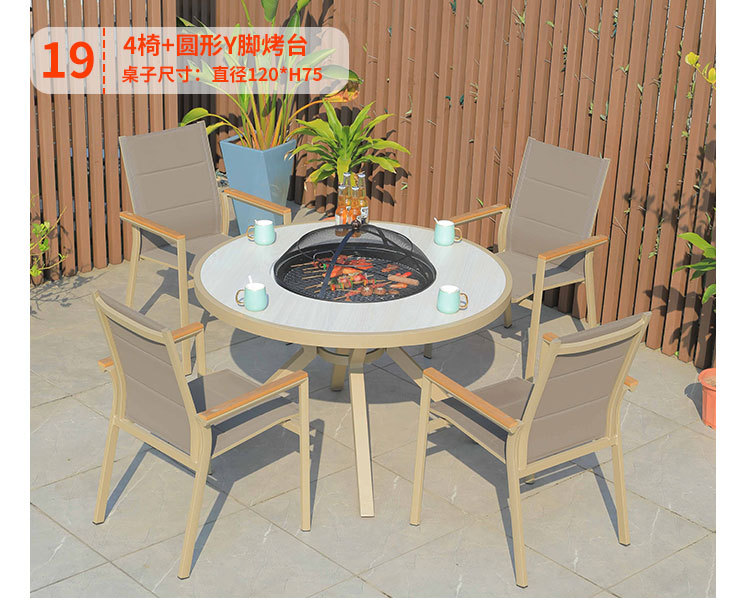 • 조합 19: 의자 4개 + 직경 120*H75 원형 숯불 그릴 테이블