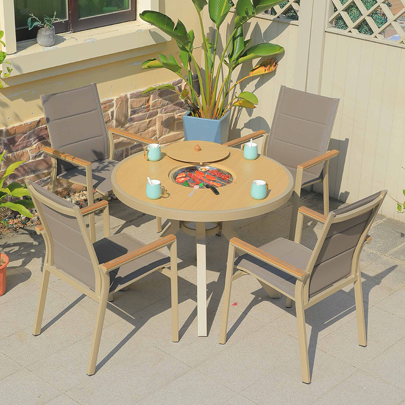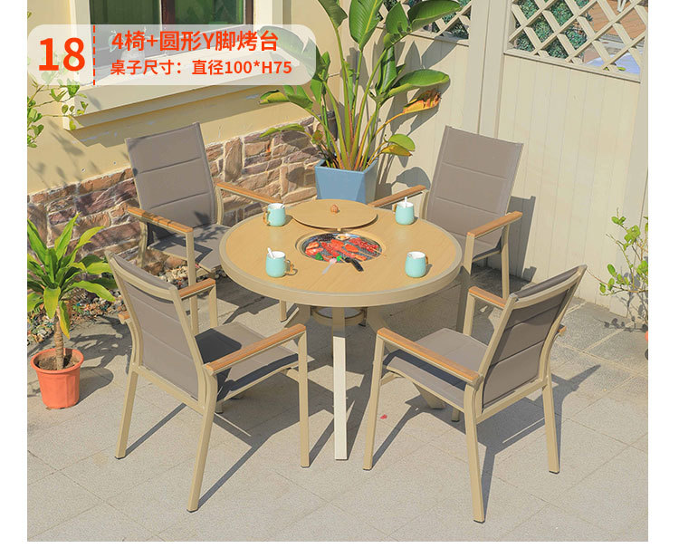 • 조합 18:4 의자 + 직경 100*H75 원형 숯불 그릴 테이블