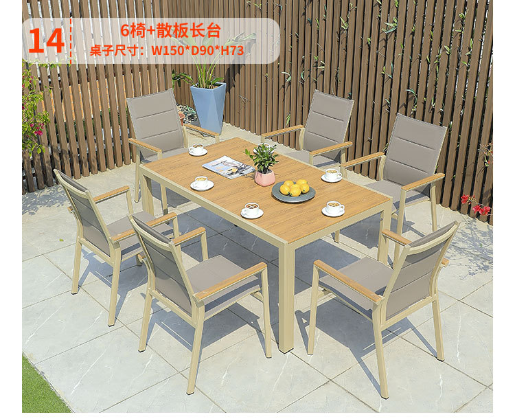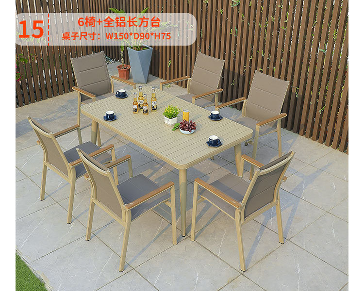 • 조합 15: 의자 6개 + 150*90*H75 전체 알루미늄 판 긴 테이블