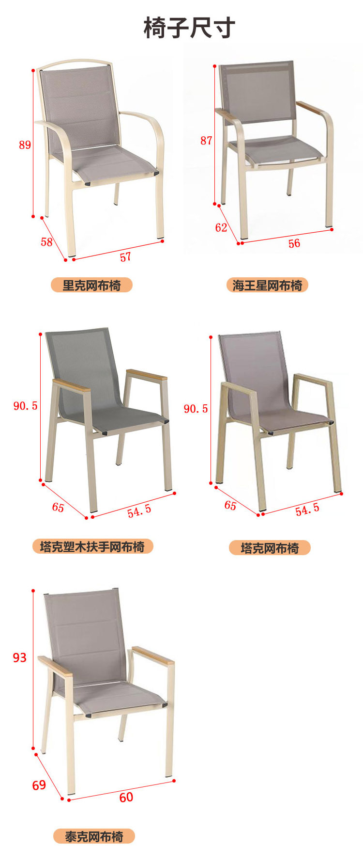 • 조합 1: 의자 4개 + 직경 90*H72 전체 알루미늄 원형 테이블