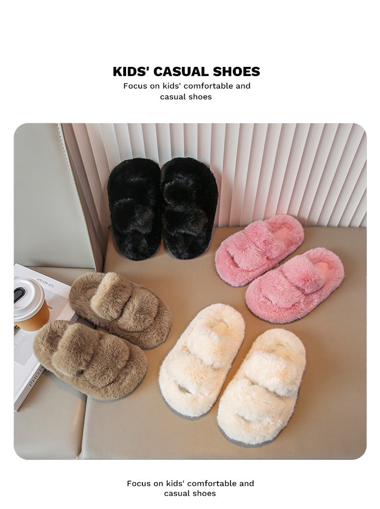 2024 가을과 겨울 새로운 한국 스타일 어린이 봉제 슬리퍼 외부 홈 미끄럼 방지 두꺼운 바닥 따뜻한 여성용 아기 면 슬리퍼