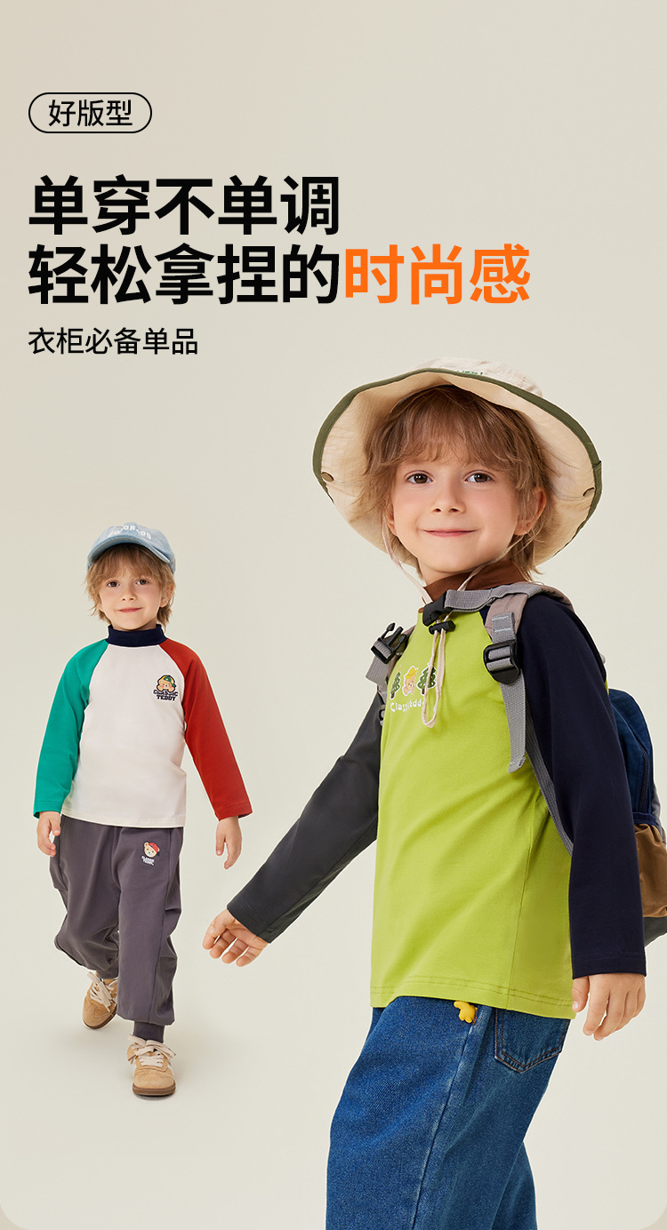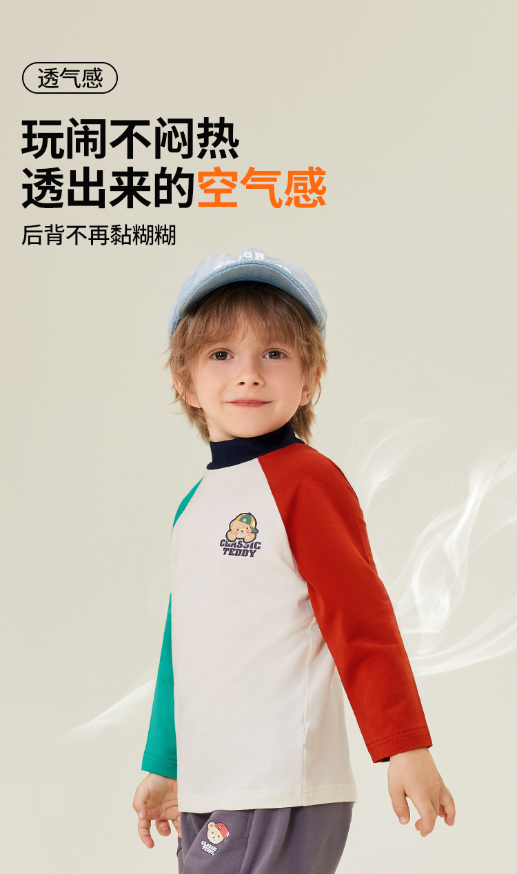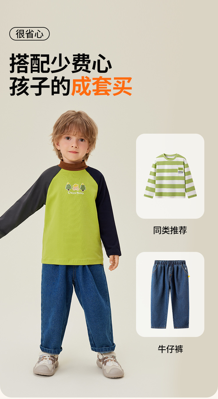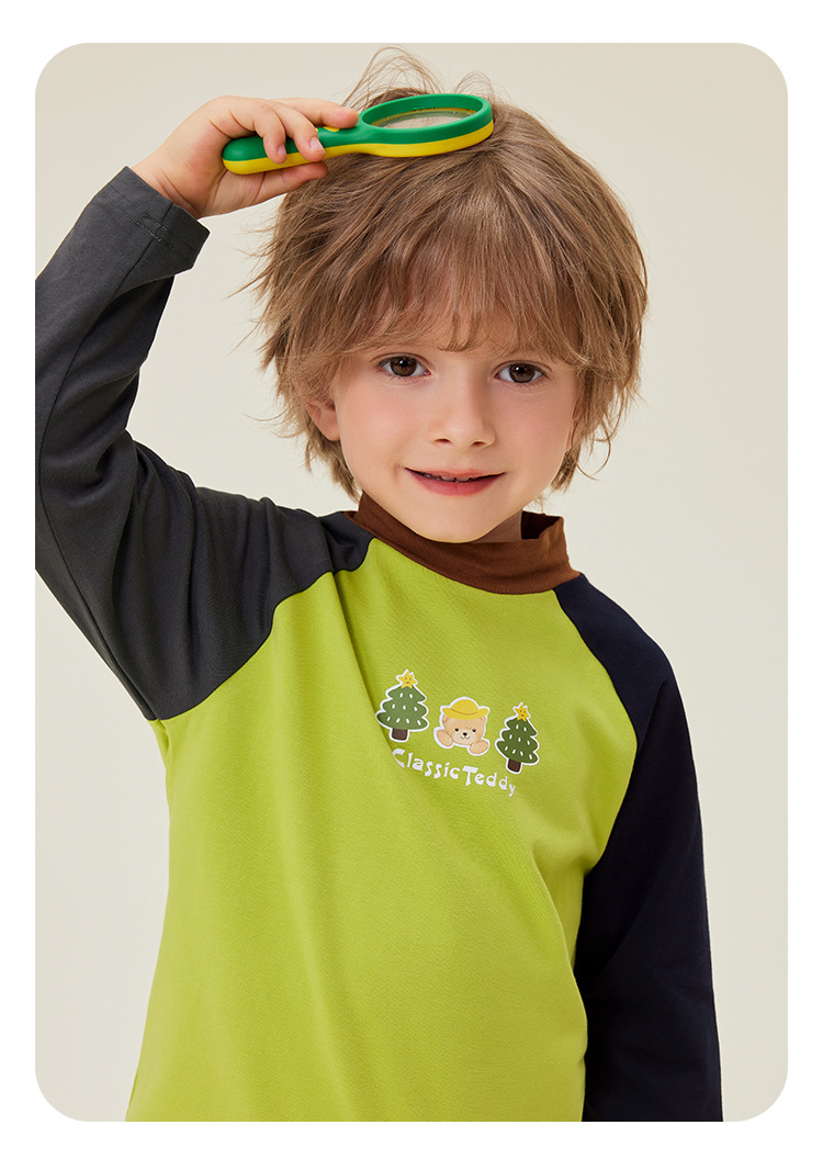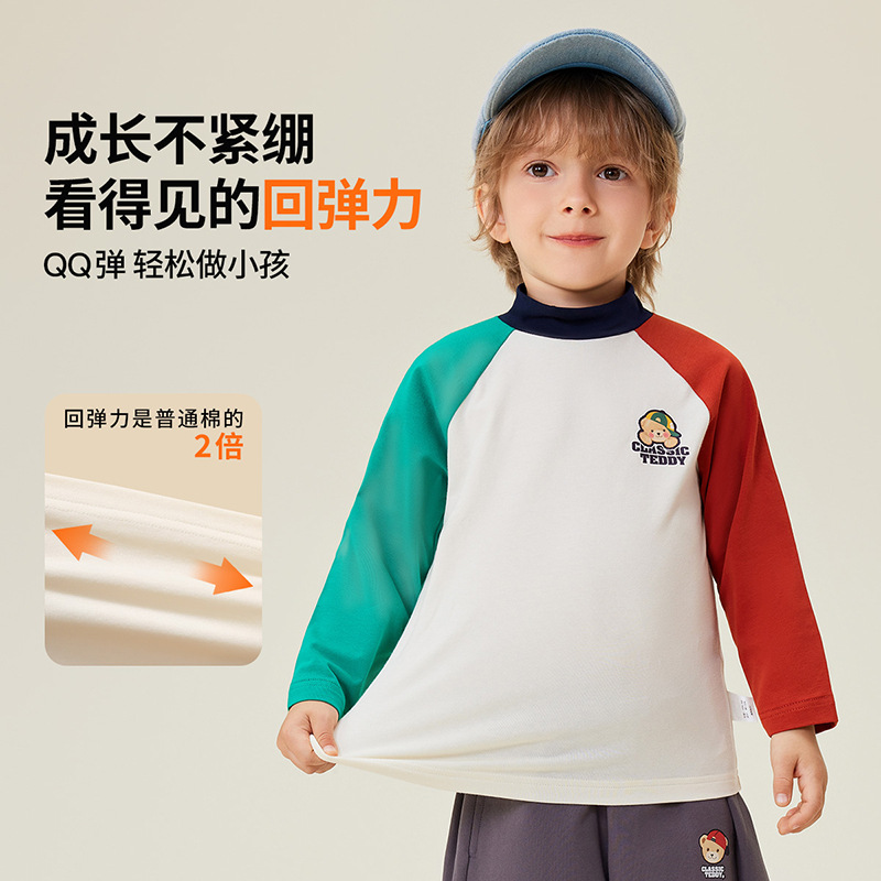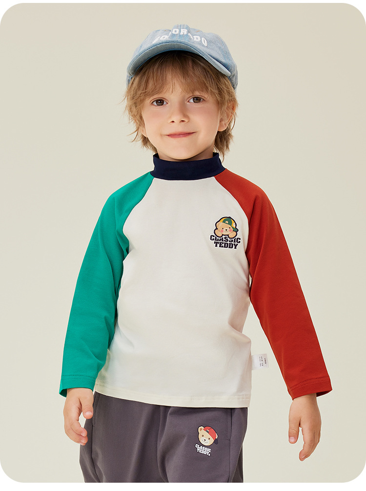 클래식 테디 윈터 뉴 보이즈 긴팔 티셔츠 어린이 크루 넥 탑 대비 슬리브 하프 하이 칼라베이스 셔츠스토어 가기