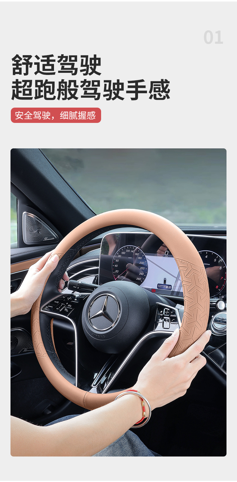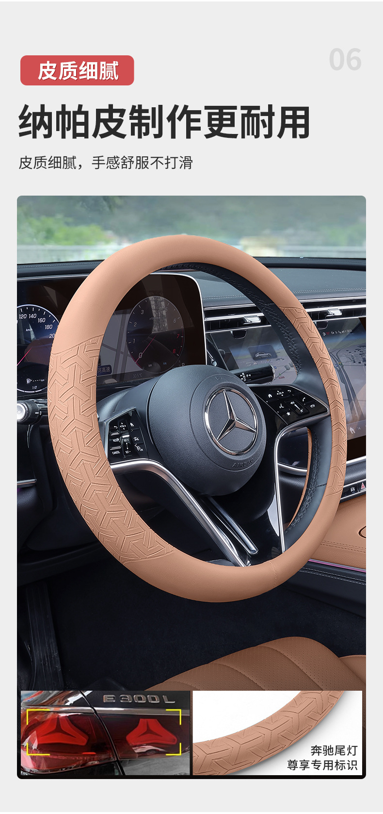 메르세데스-벤츠 새로운 E-클래스 E300 스티어링 휠 커버 C-클래스 GLC300L/C260L/C200 자동차 인테리어 용품 핸들 커버 수정
