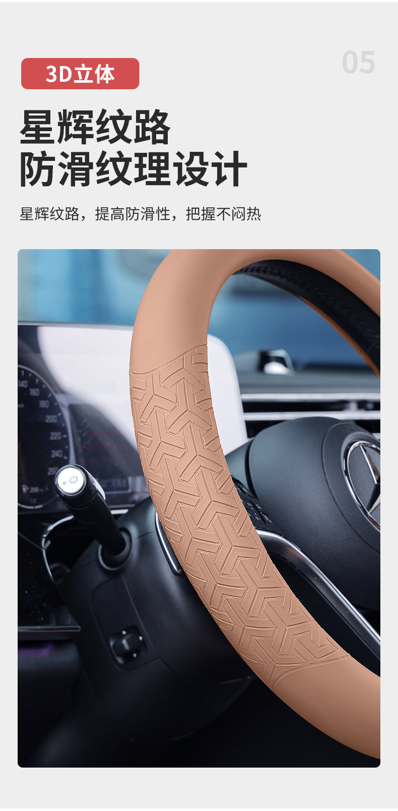 • 메르세데스-벤츠-3D 별빛 패턴 [라운드-스톤 브라운] 그립