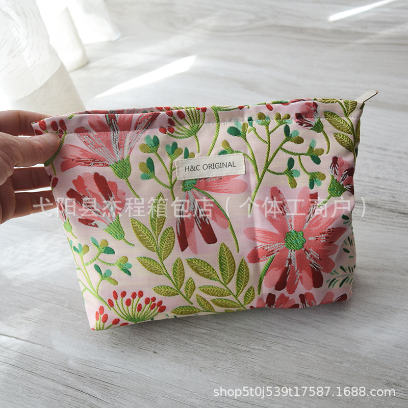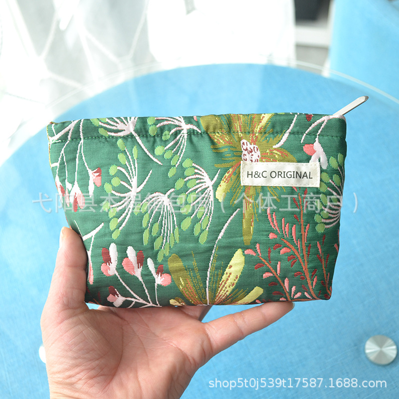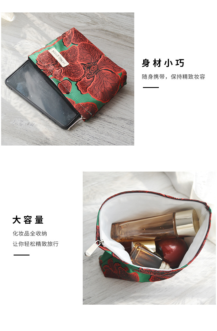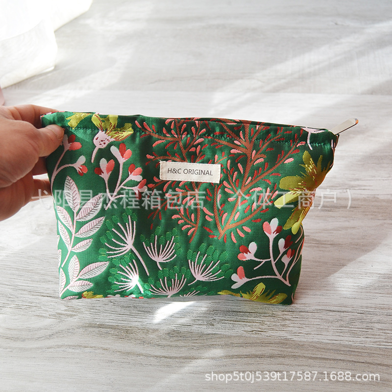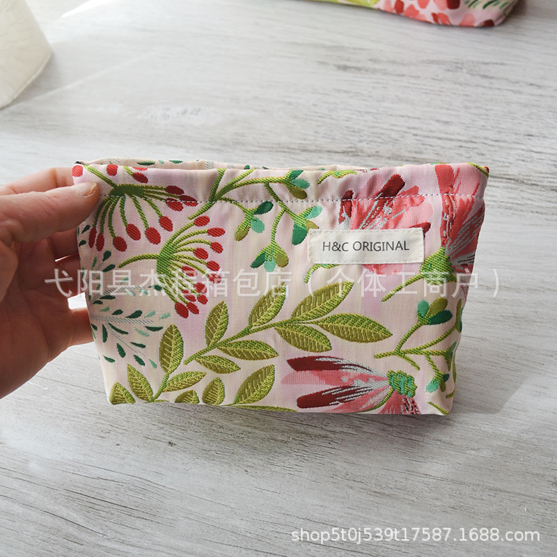 레트로 문예 스타일 무지 데님 캔버스 화장품 파우치, 독특한 디자인 여성용 핸드백, 이너백, 자수, 휴대용, 중국풍스토어 가기