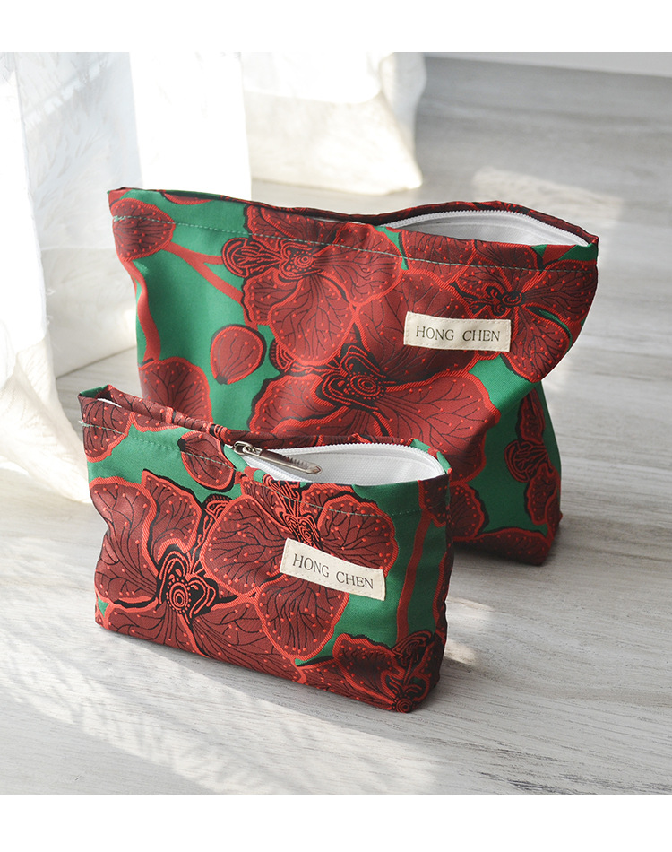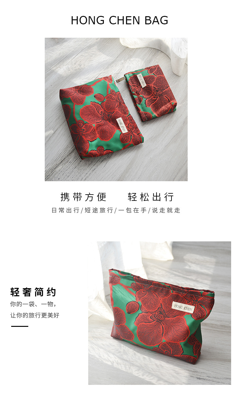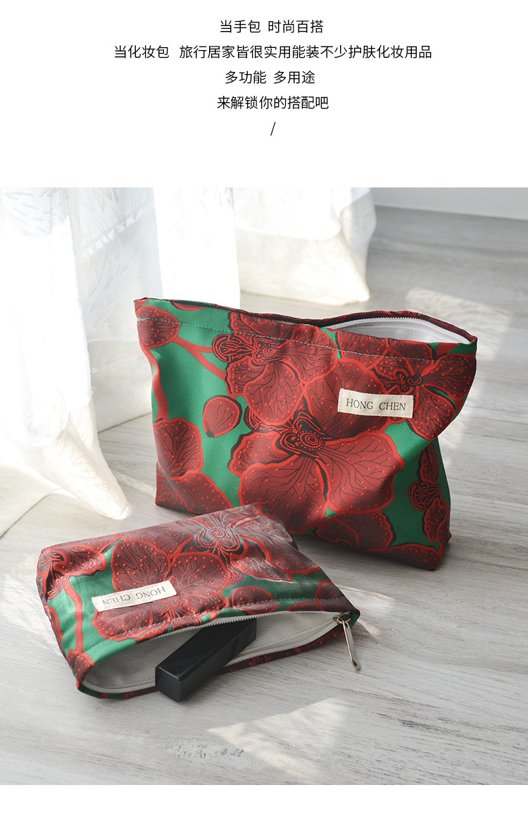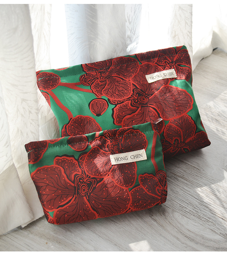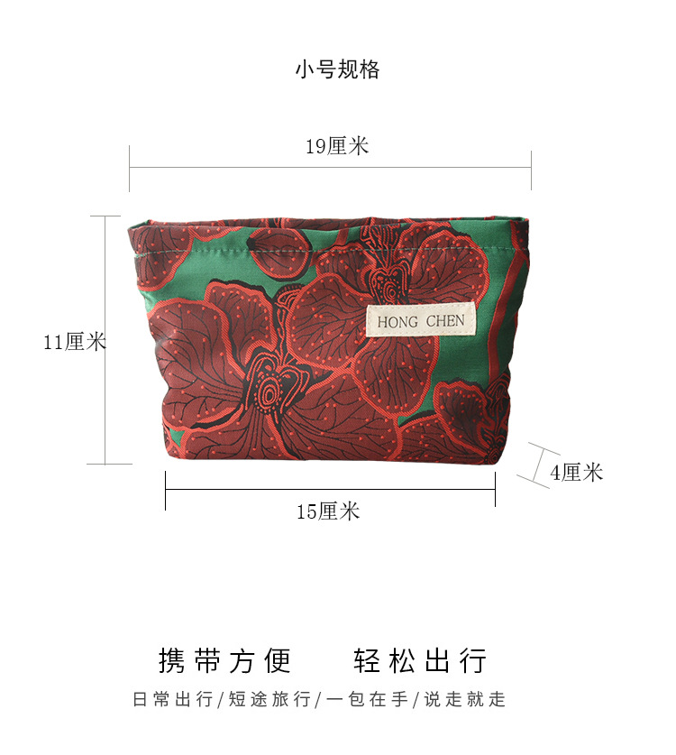 레트로 문예 스타일 무지 데님 캔버스 화장품 파우치, 독특한 디자인 여성용 핸드백, 이너백, 자수, 휴대용, 중국풍스토어 가기