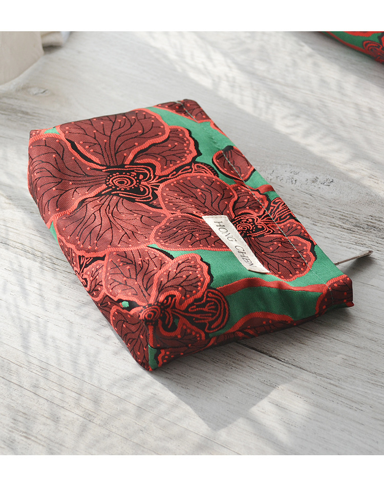레트로 문예 스타일 무지 데님 캔버스 화장품 파우치, 독특한 디자인 여성용 핸드백, 이너백, 자수, 휴대용, 중국풍