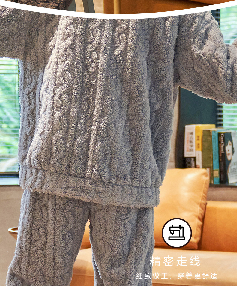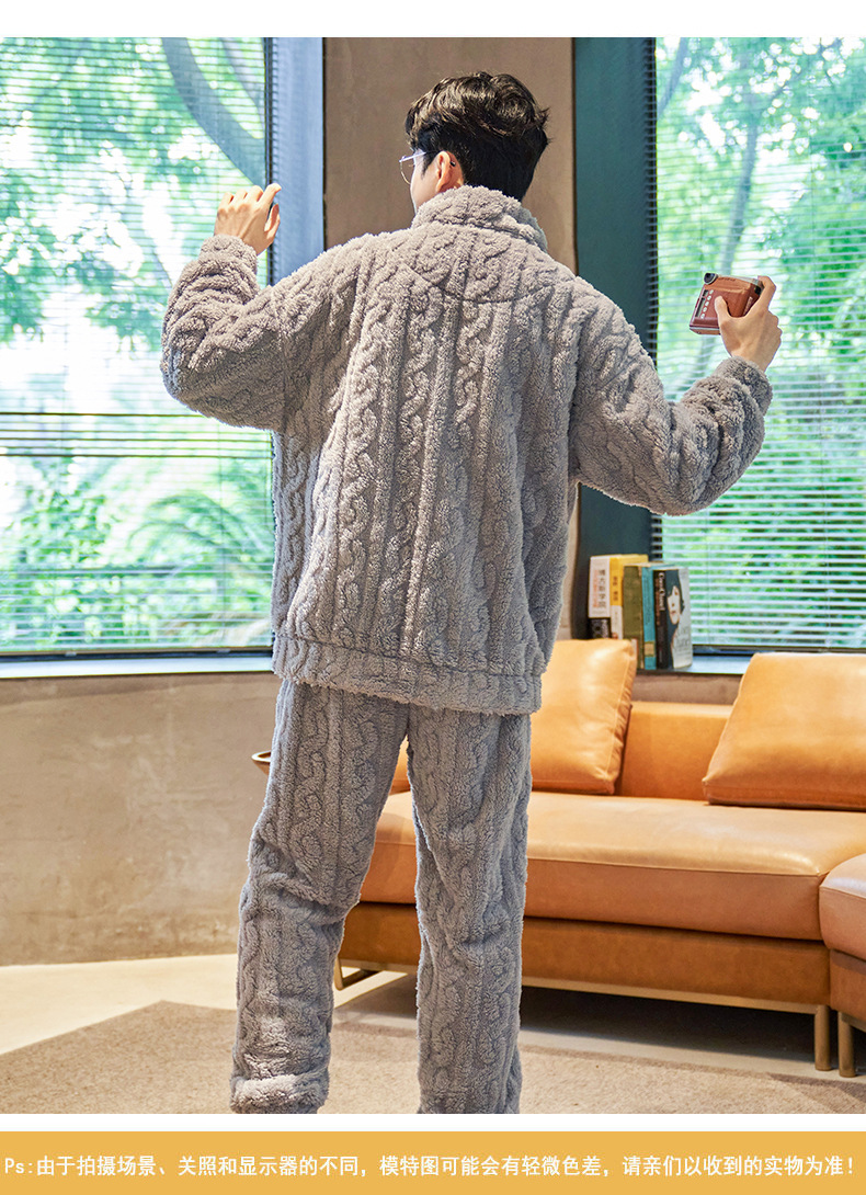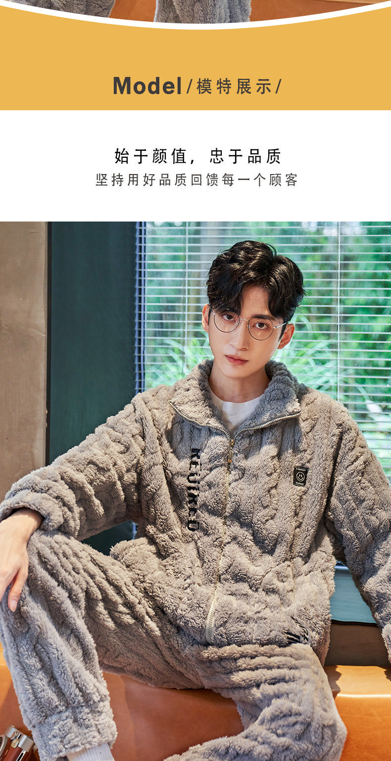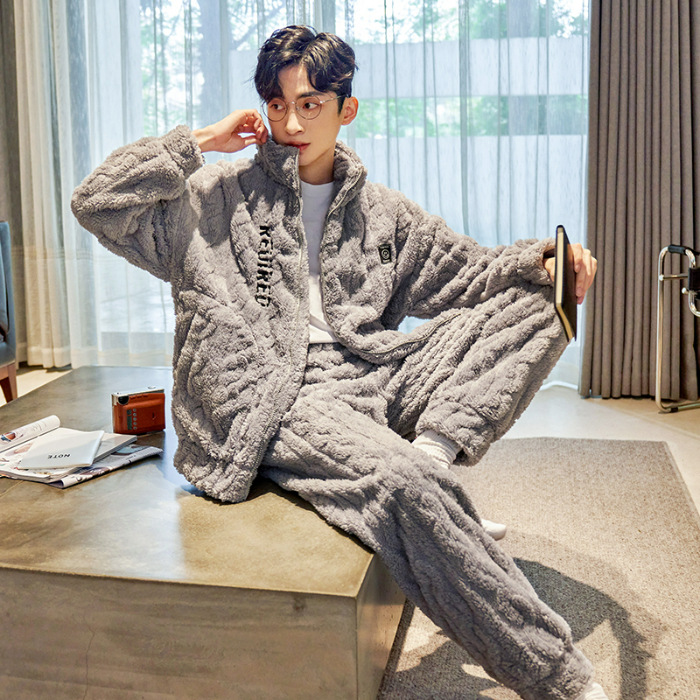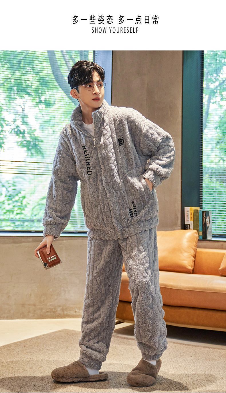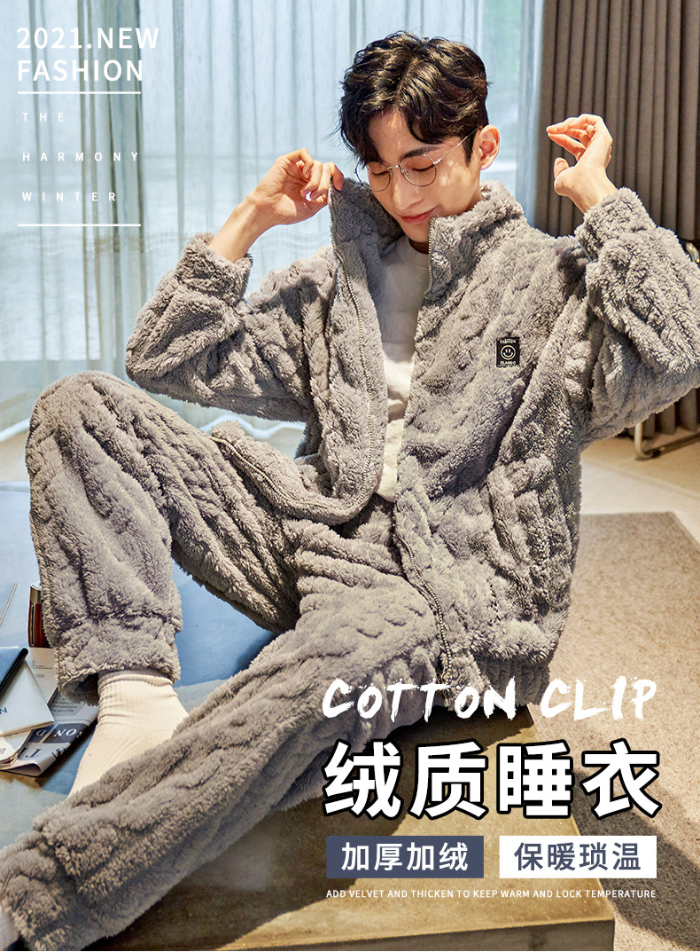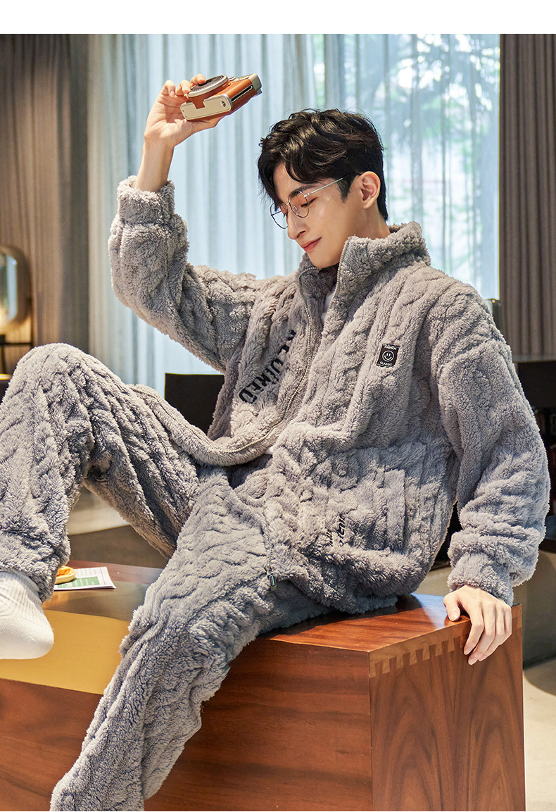 잠옷 남자의 겨울 두꺼운 기모 산호 양털 2024 새로운 도착 남자 십대 세트 입고스토어 가기