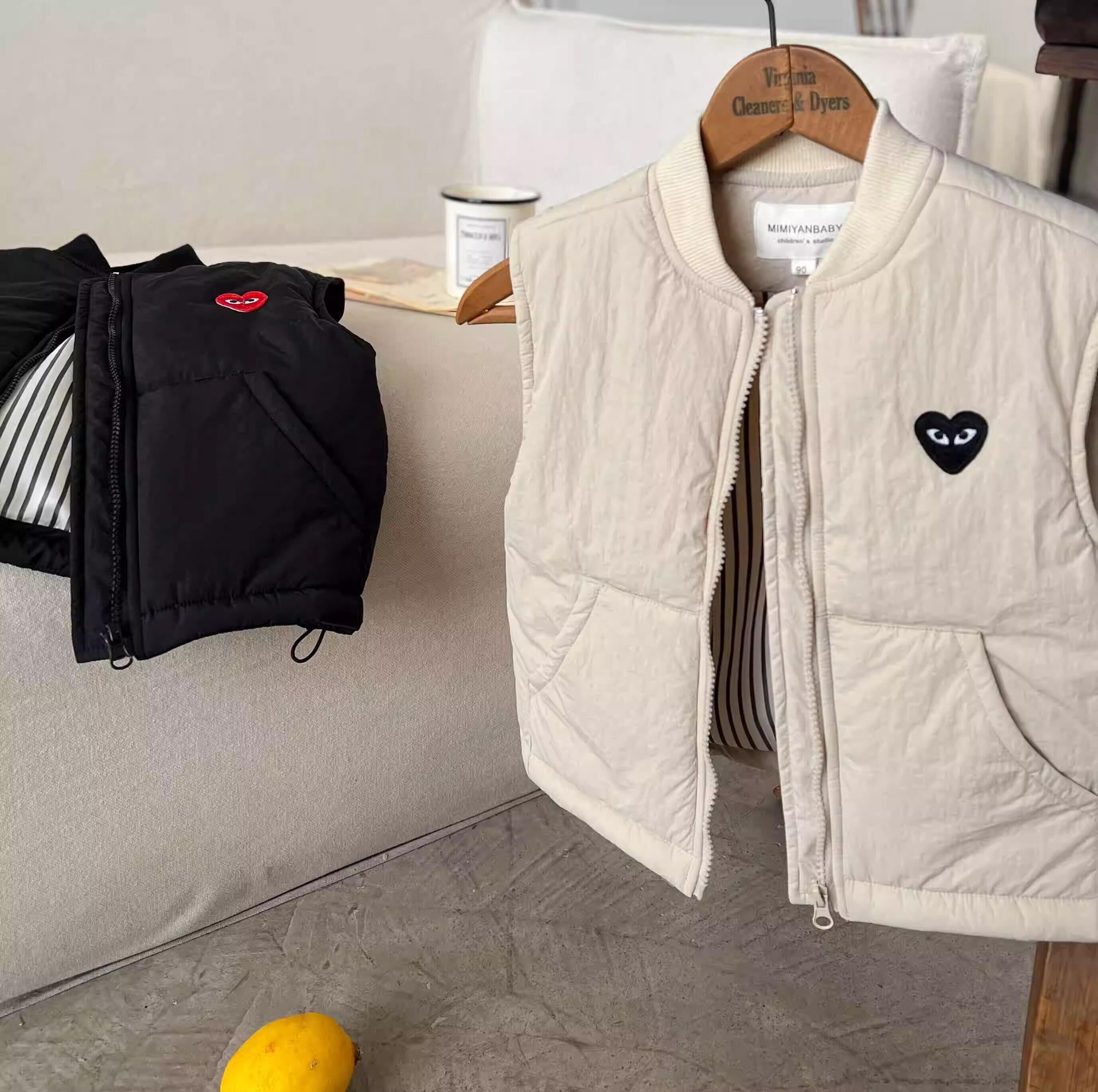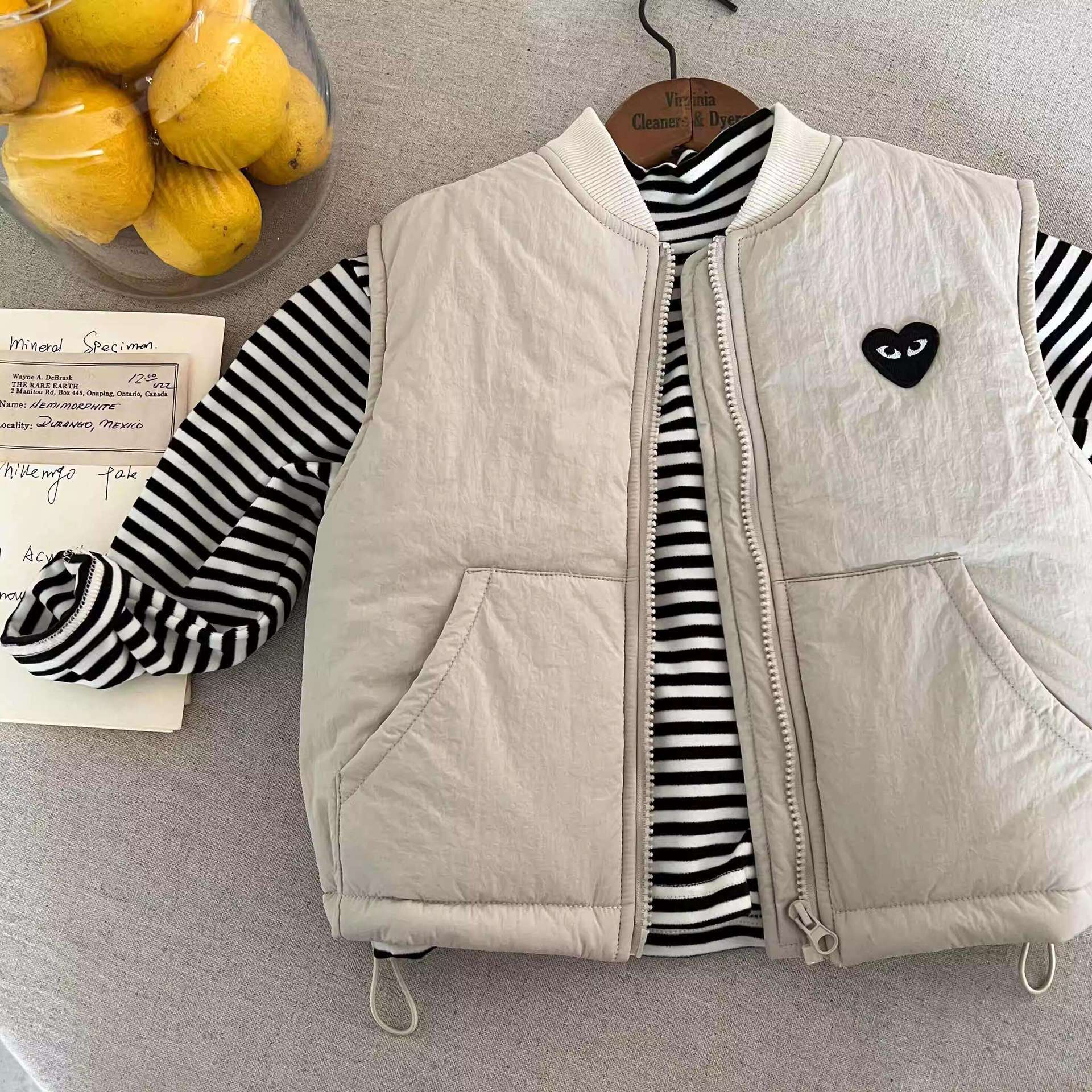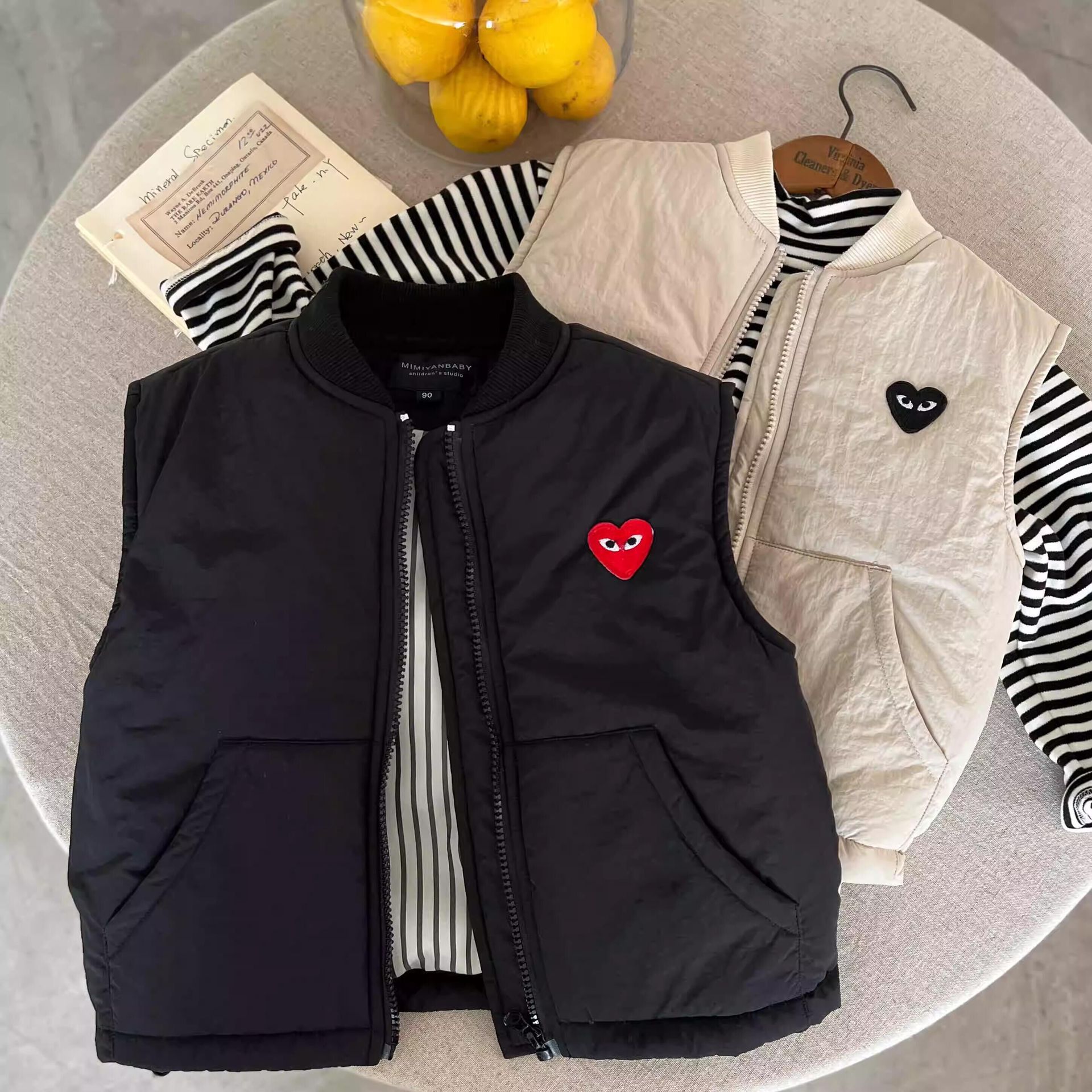 어린이 조끼 2024 가을 새 남녀 아동복 짜는 하트 코튼 조끼 아기 지퍼 민소매 코트 트렌디스토어 가기