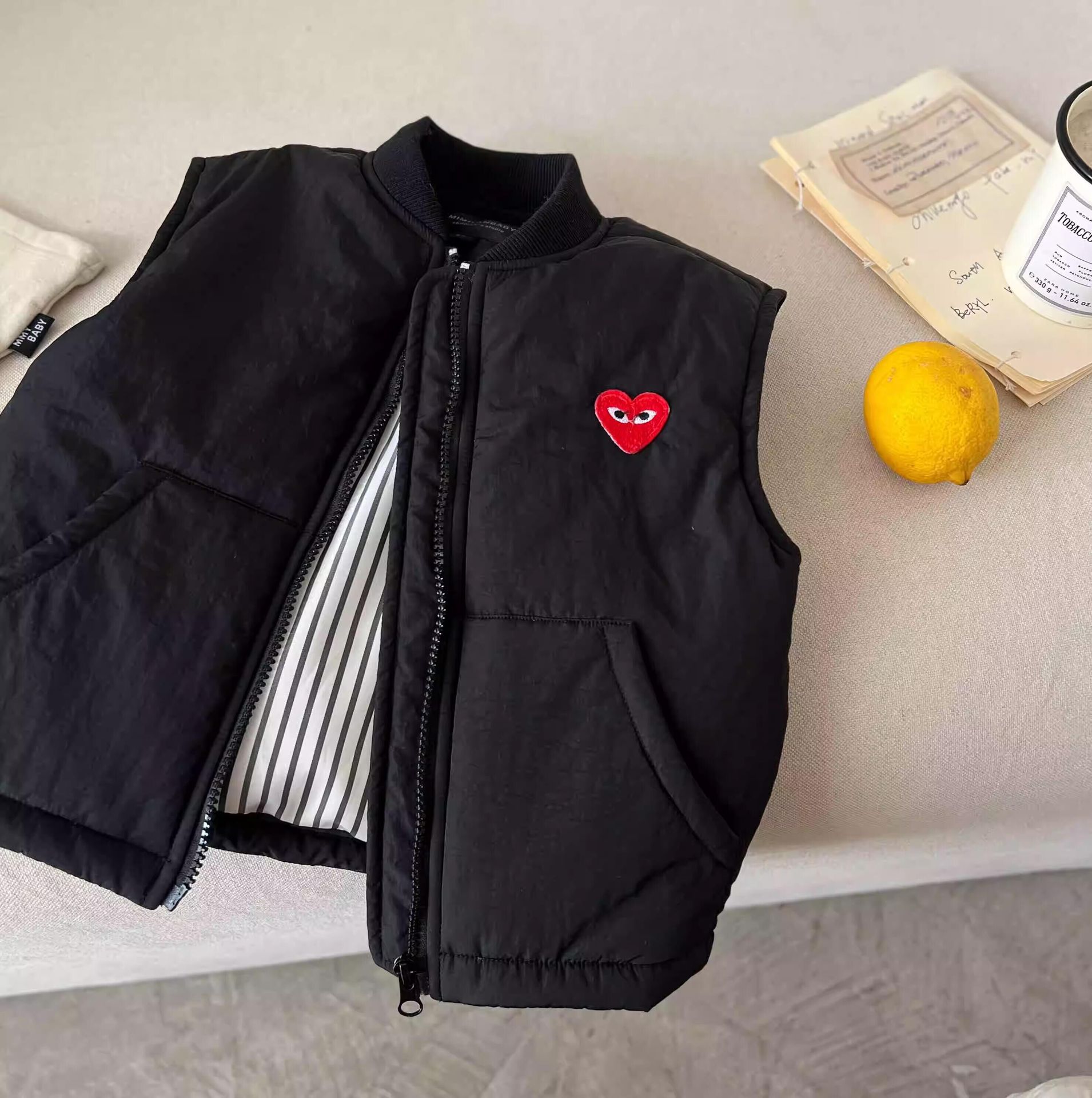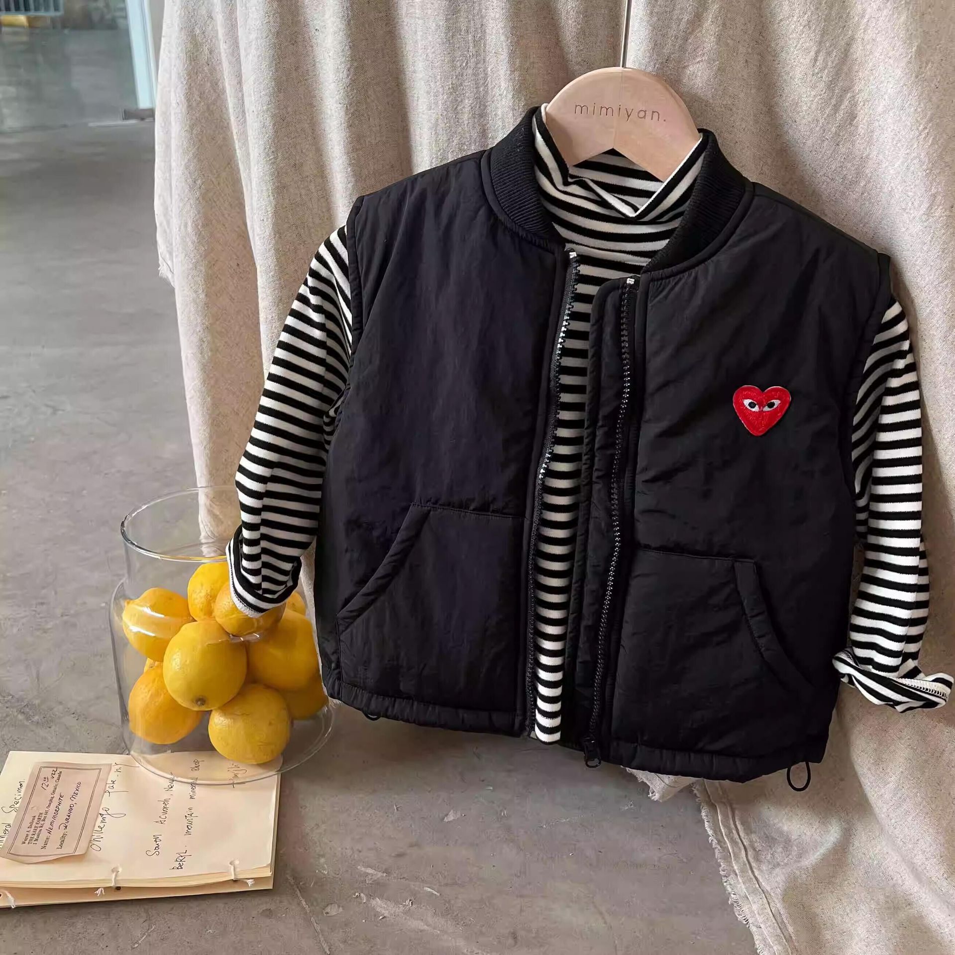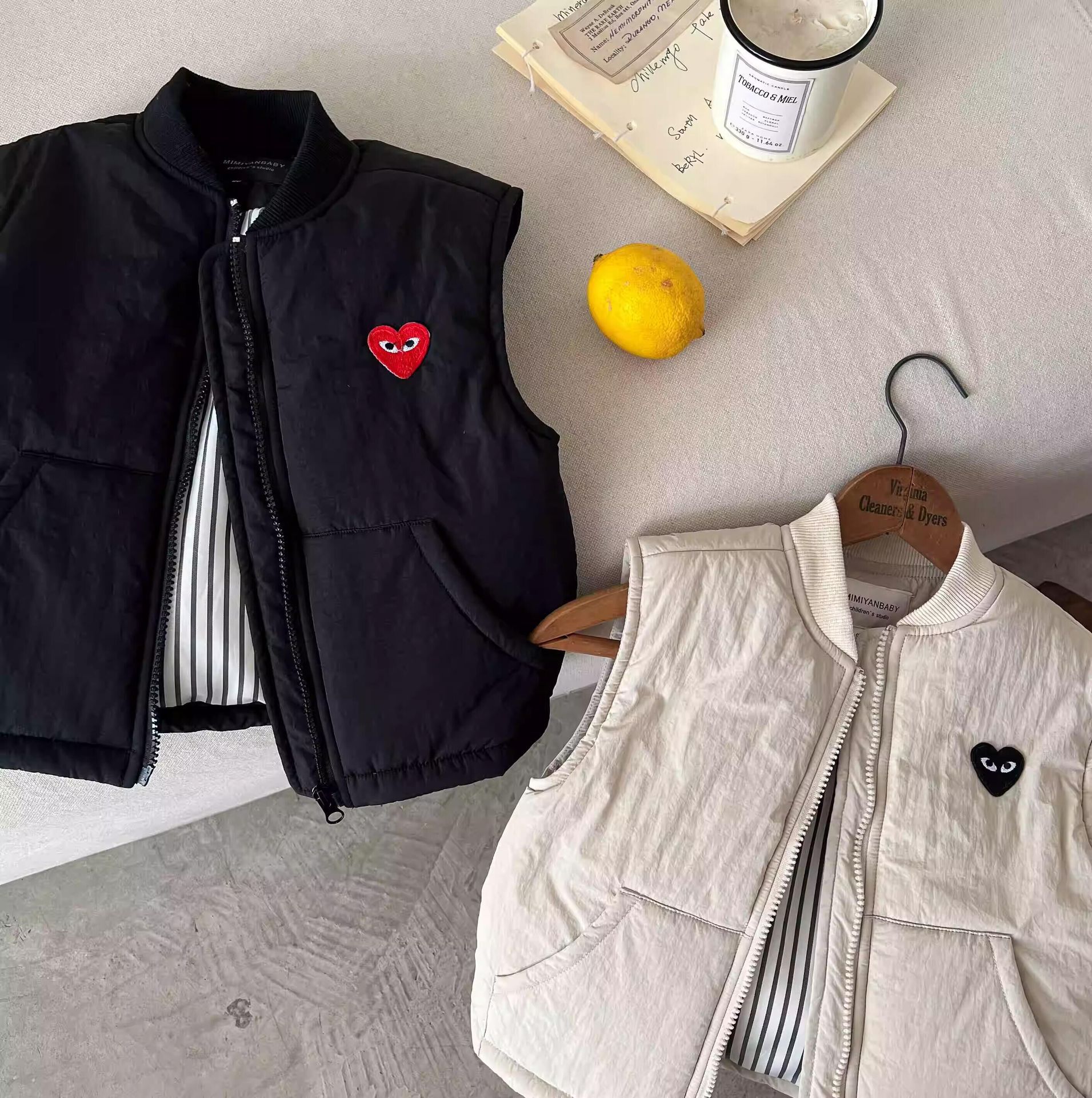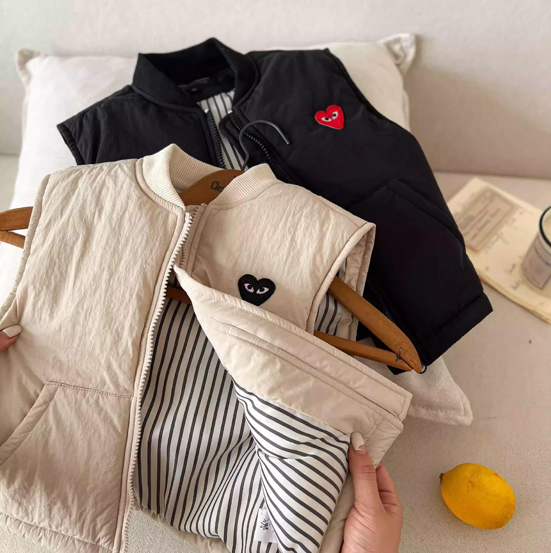 어린이 조끼 2024 가을 새 남녀 아동복 짜는 하트 코튼 조끼 아기 지퍼 민소매 코트 트렌디스토어 가기