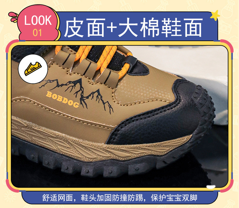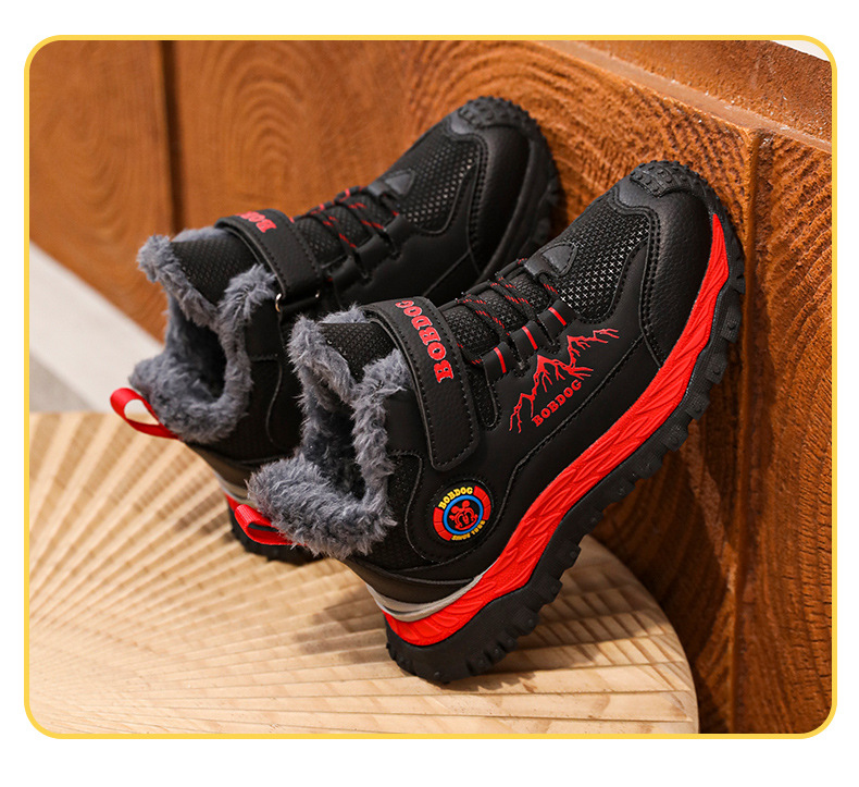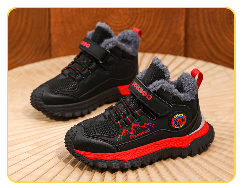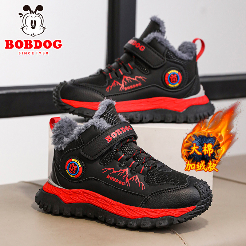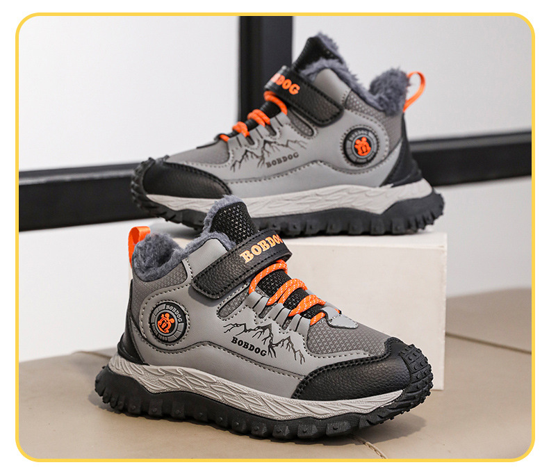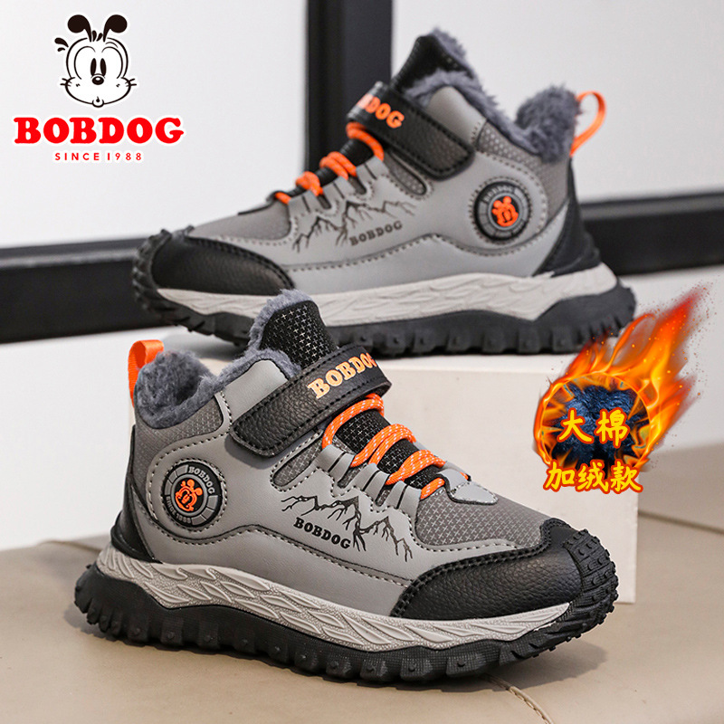 바부 콩 어린이 운동화 남자의 가을과 겨울 새로운 가죽 대형 코튼 신발 6-12 년 된 미끄럼 방지 야외 캐주얼 신발스토어 가기