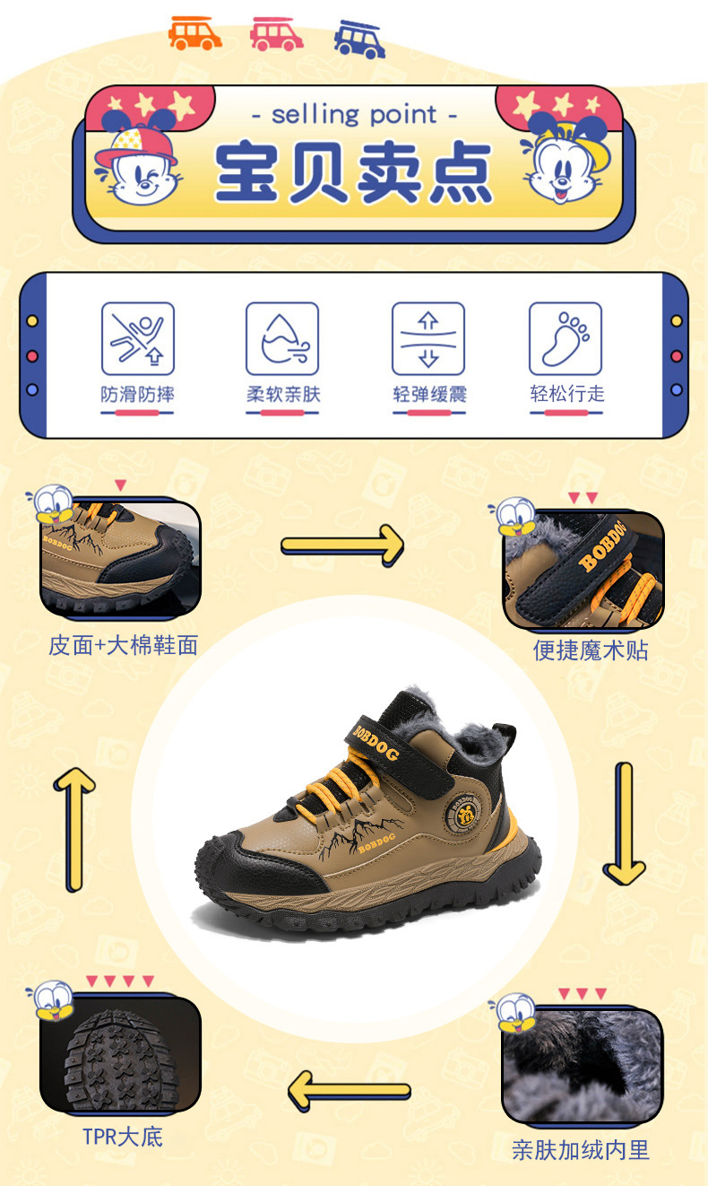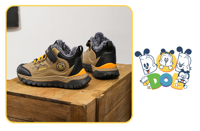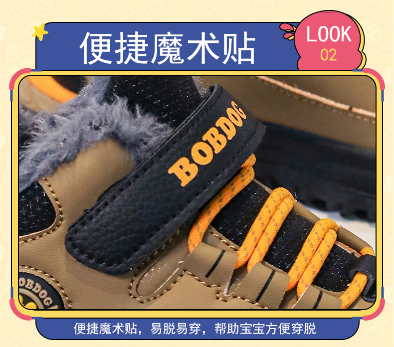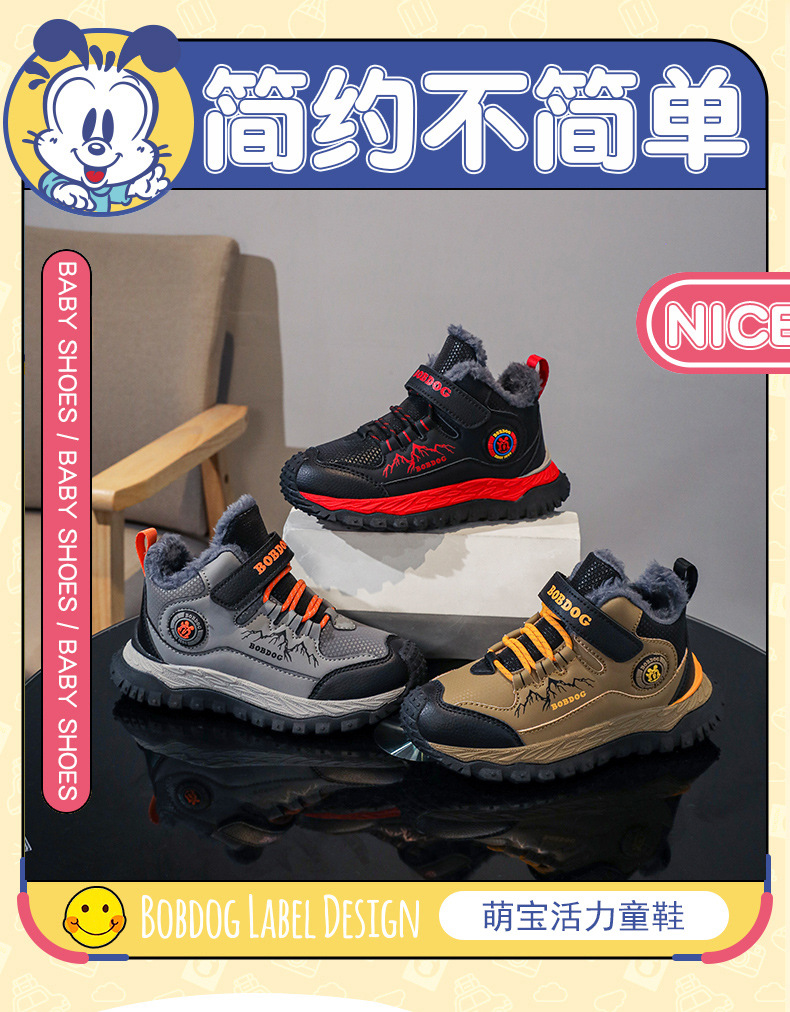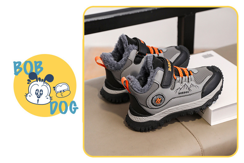 바부 콩 어린이 운동화 남자의 가을과 겨울 새로운 가죽 대형 코튼 신발 6-12 년 된 미끄럼 방지 야외 캐주얼 신발스토어 가기