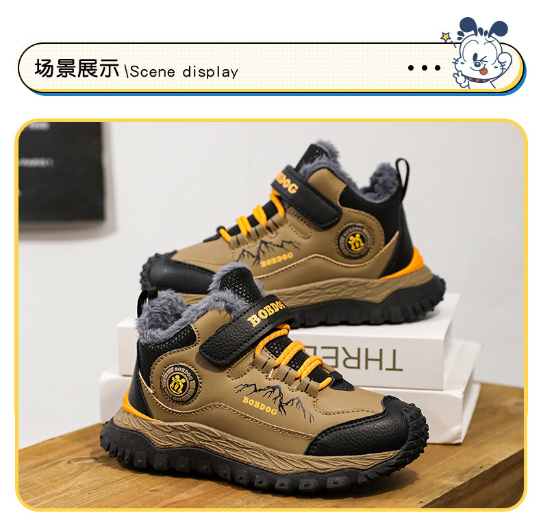 바부 콩 어린이 운동화 남자의 가을과 겨울 새로운 가죽 대형 코튼 신발 6-12 년 된 미끄럼 방지 야외 캐주얼 신발