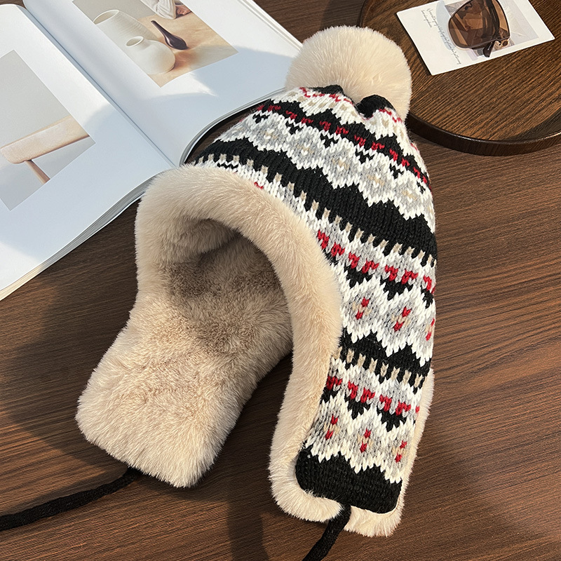 추계 여행용 플러시 니트 모자 여성용 2025년 가을 겨울 방한 귀 보호 레이펑 모자 배색스토어 가기