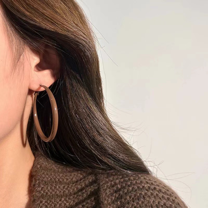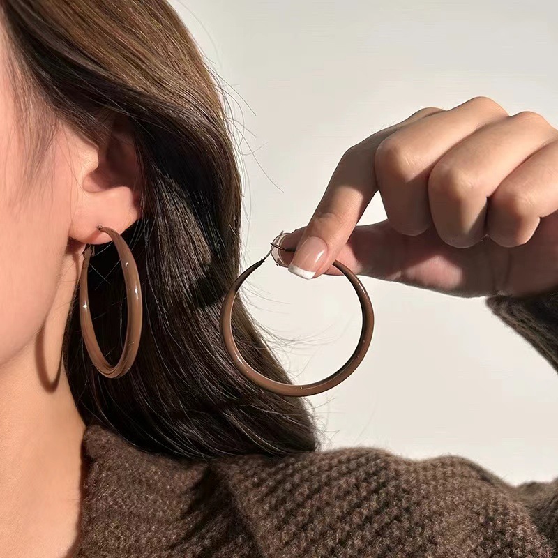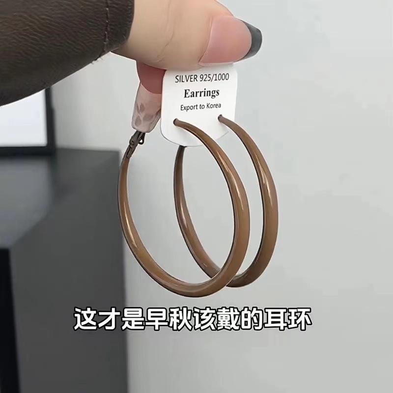 가을/겨울 Maillard 다크 브라운 큰 반지 귀걸이 여성 2024 새로운 폭발 하이 엔드 느낌 귀 반지 정사각형 얼굴 일반 반지 귀걸이스토어 가기